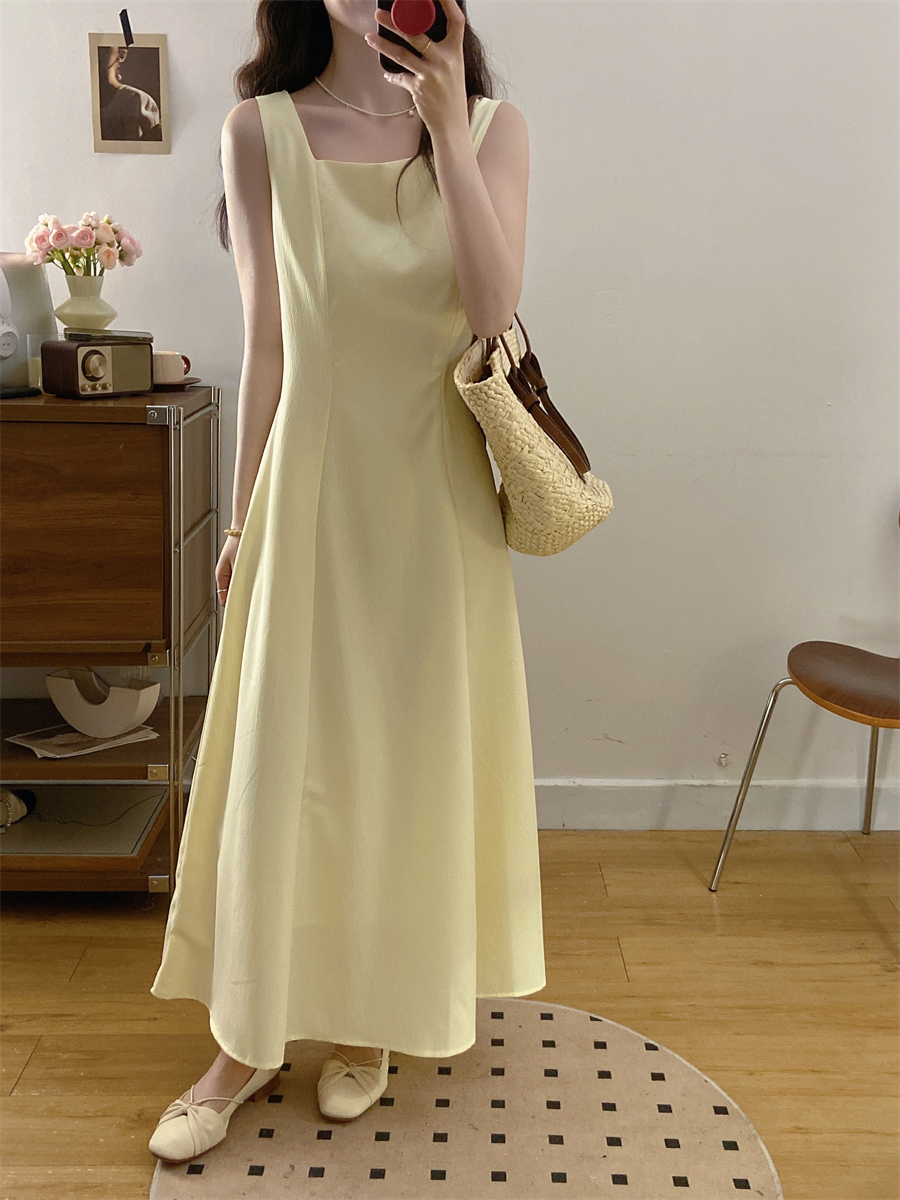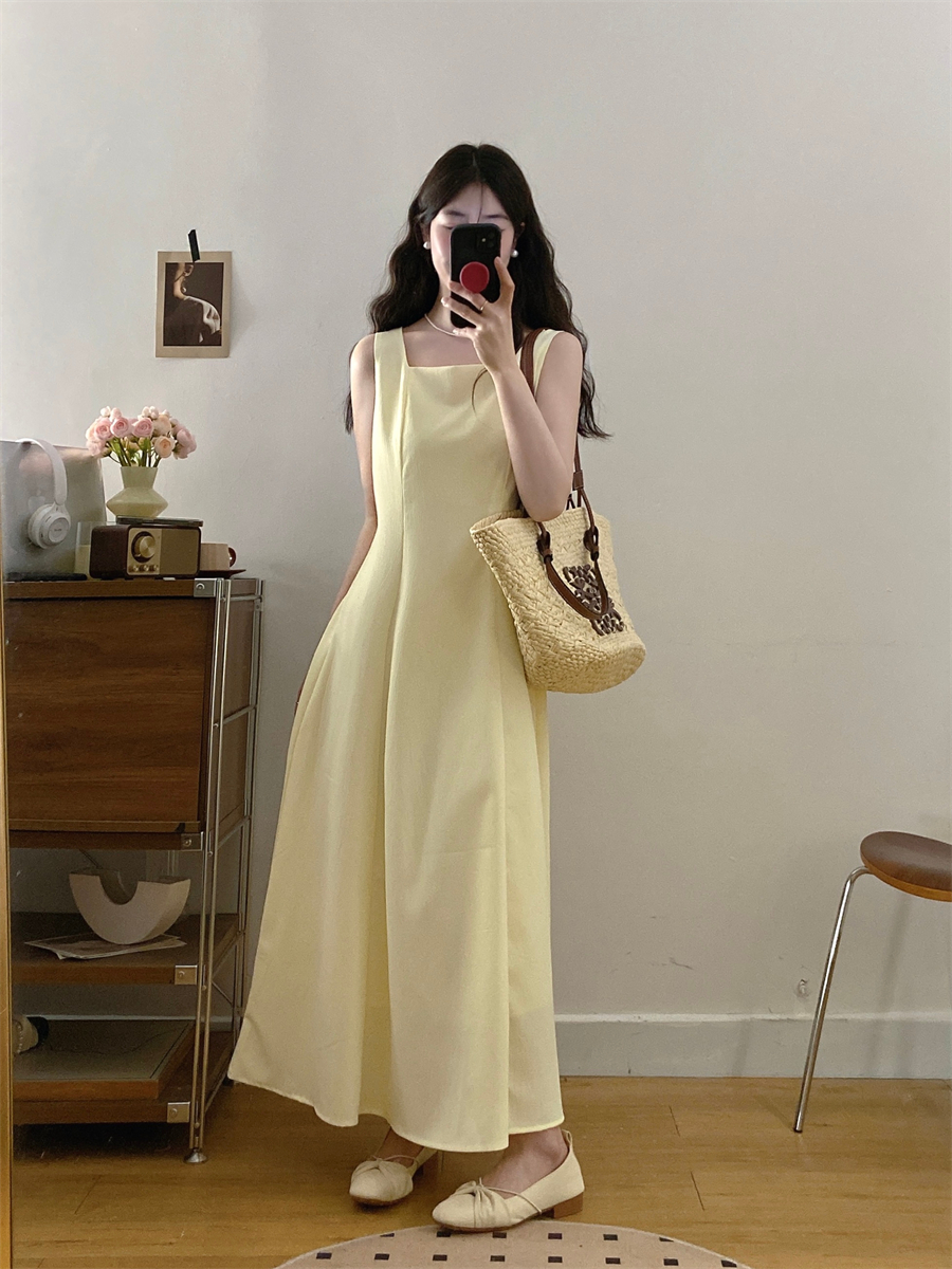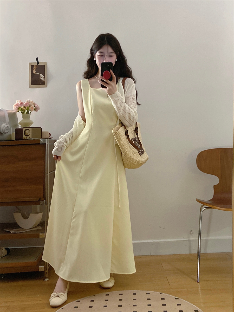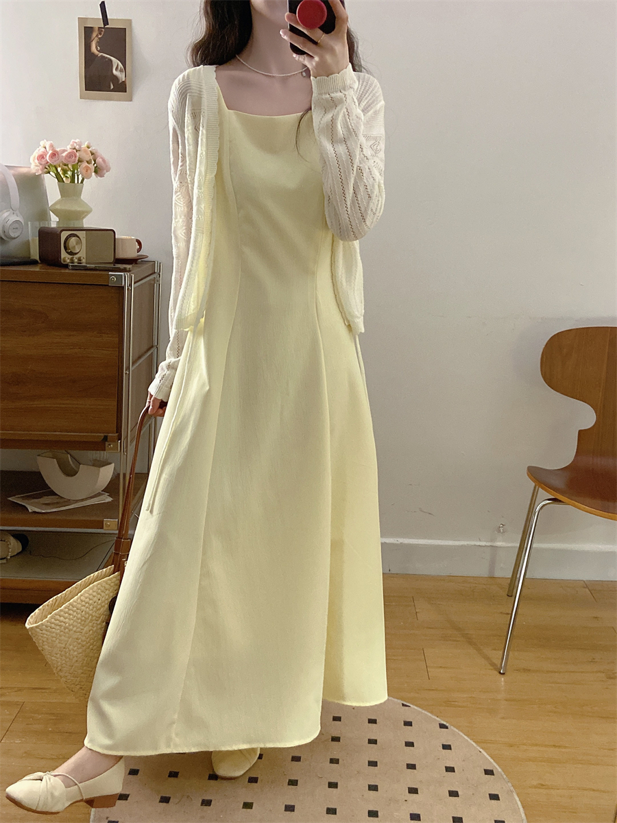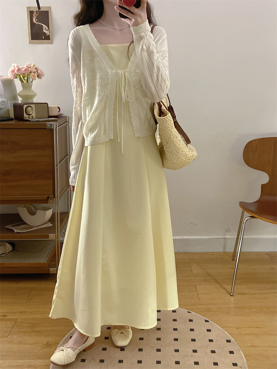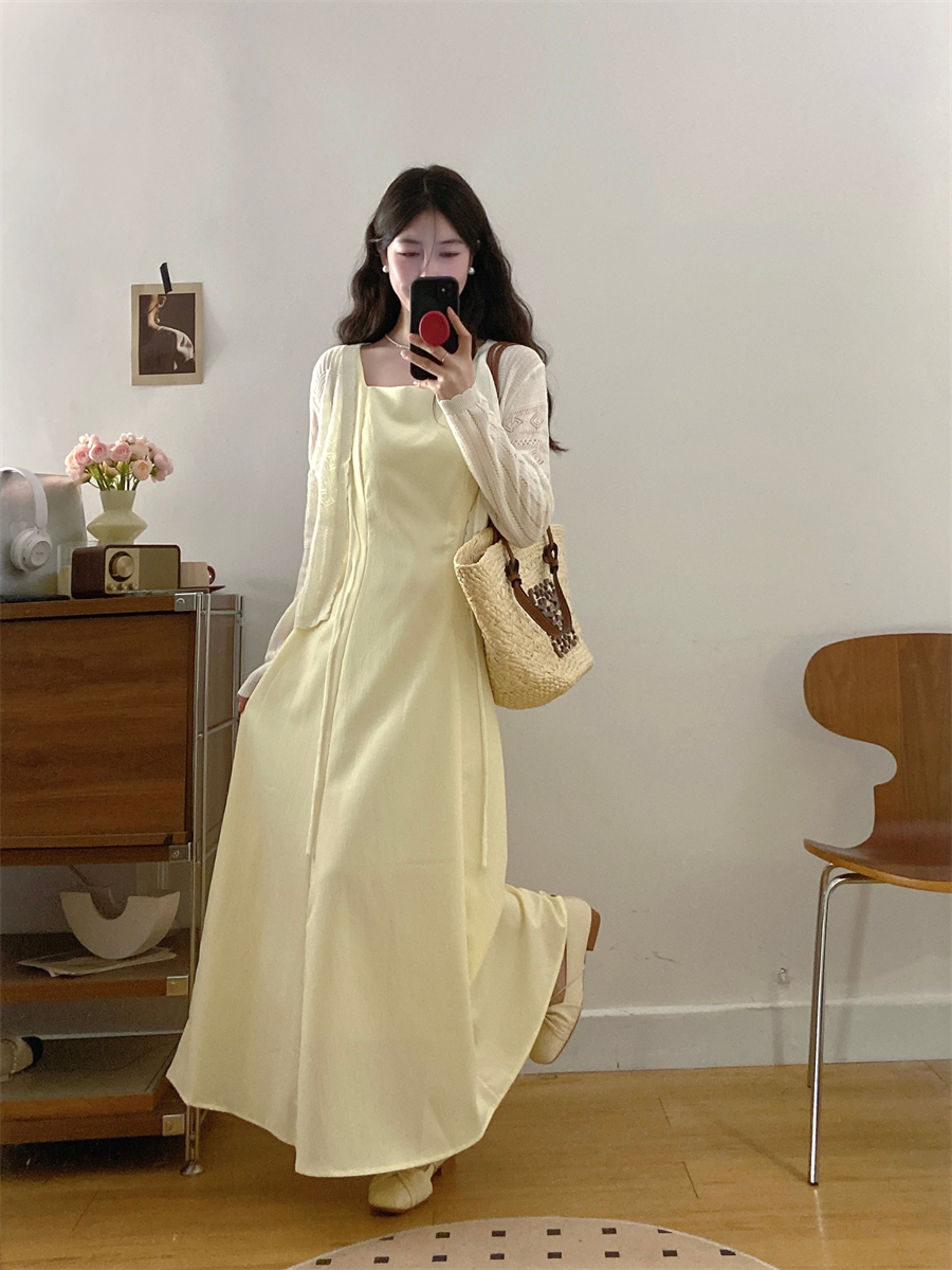 French gentle style yellow suspender dress women's summer wear 2025 new temperament two-piece suit