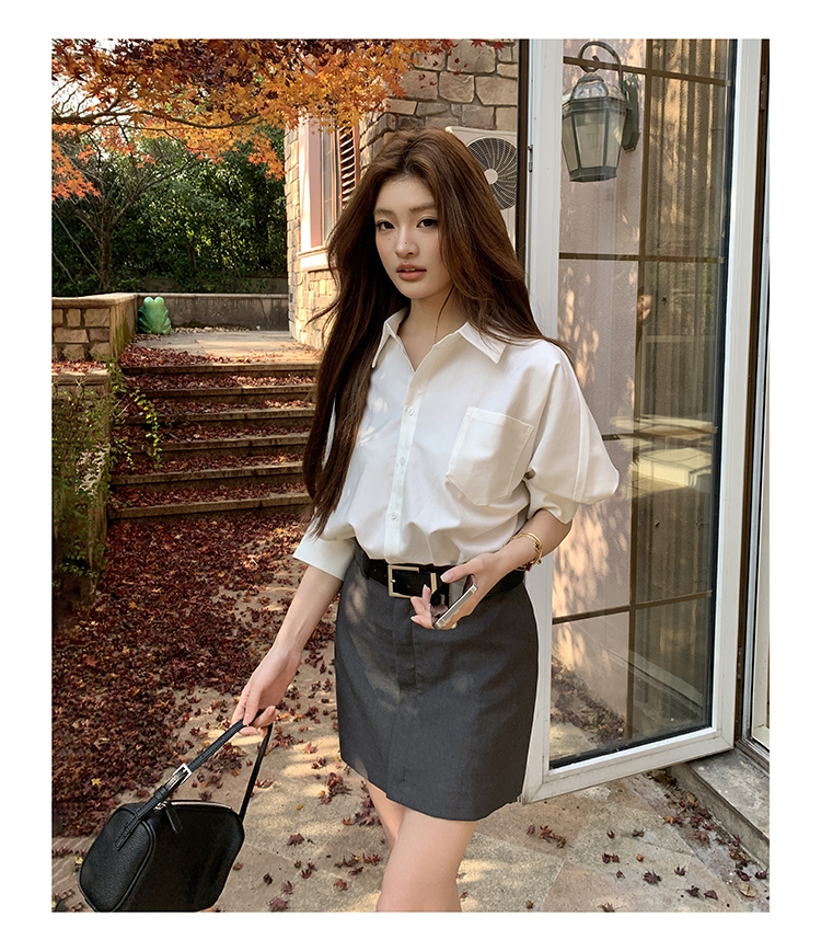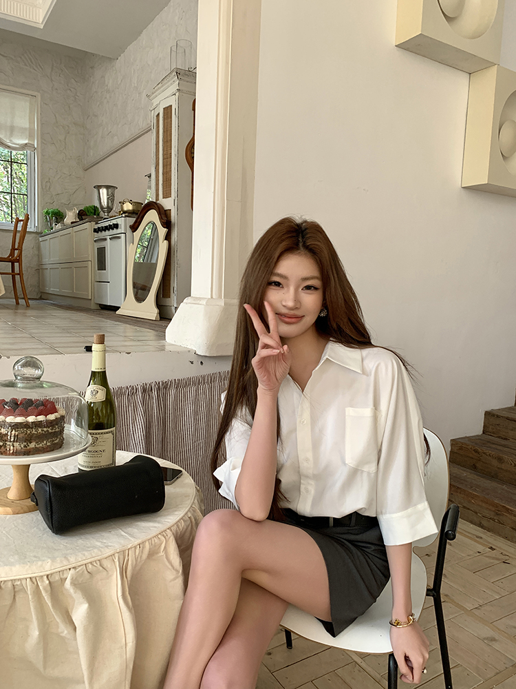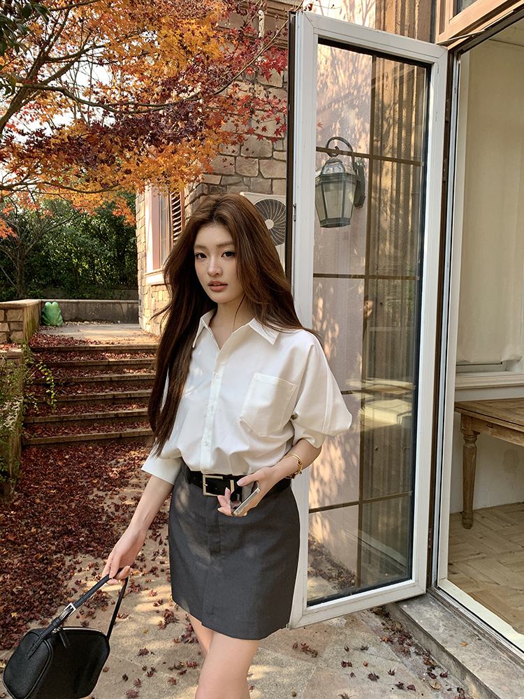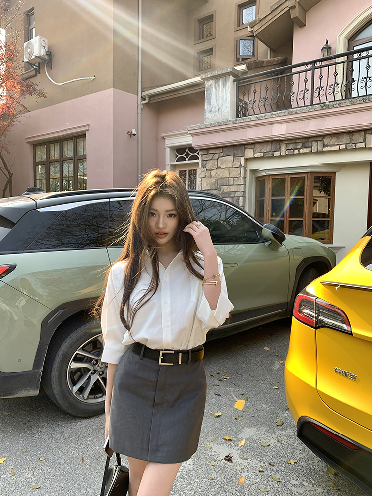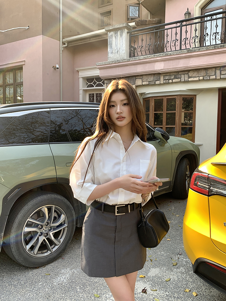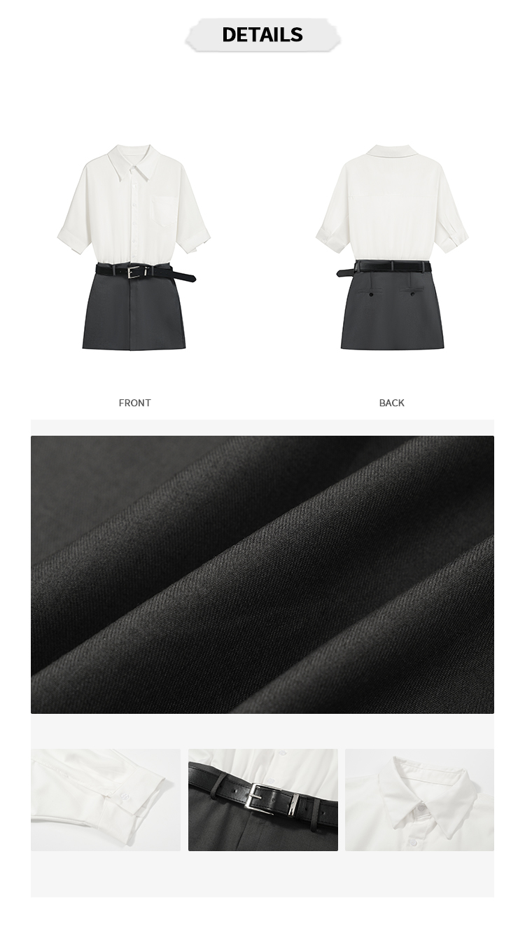 Real shot of the new 2025 spring and summer design sense contrast color stitching temperament fashion shirt dress women's waist short skirt