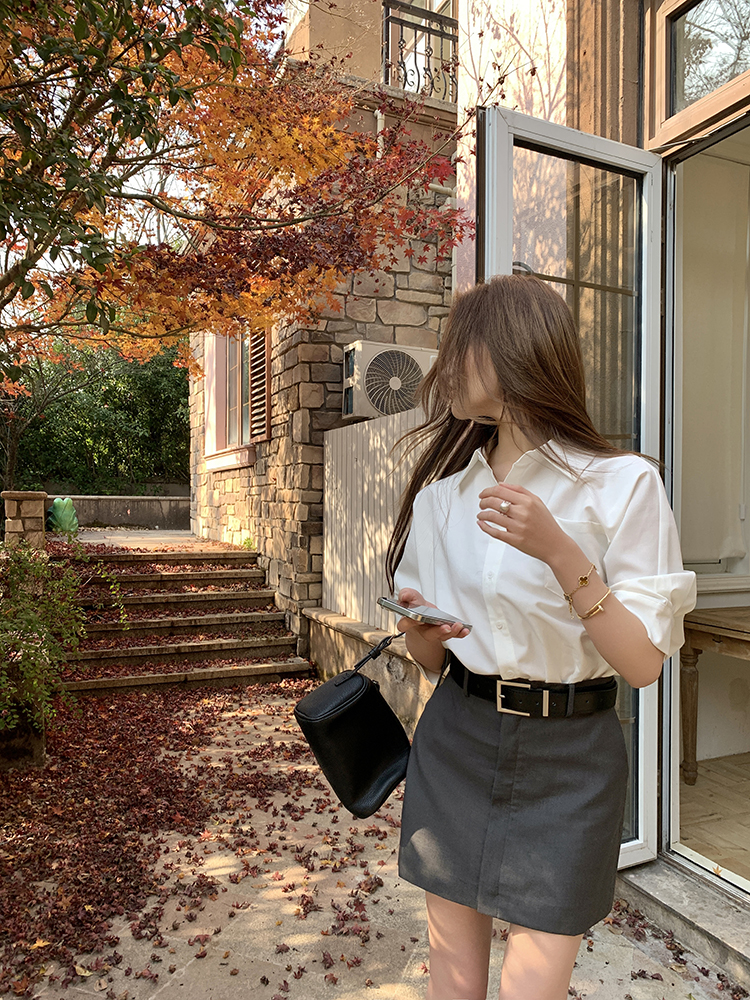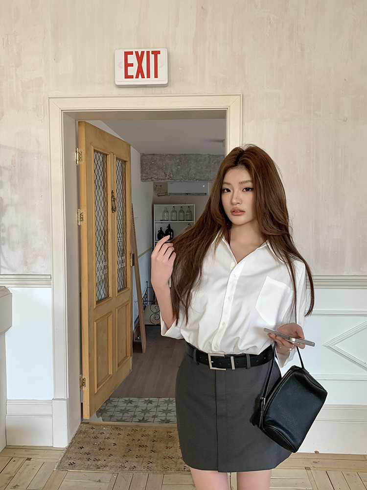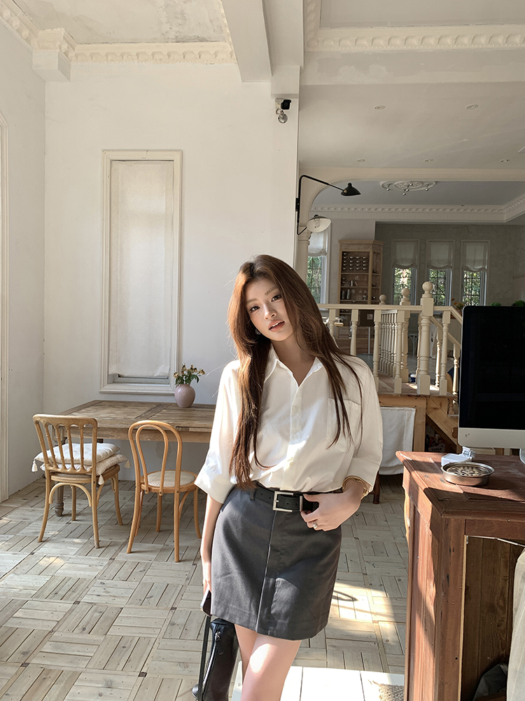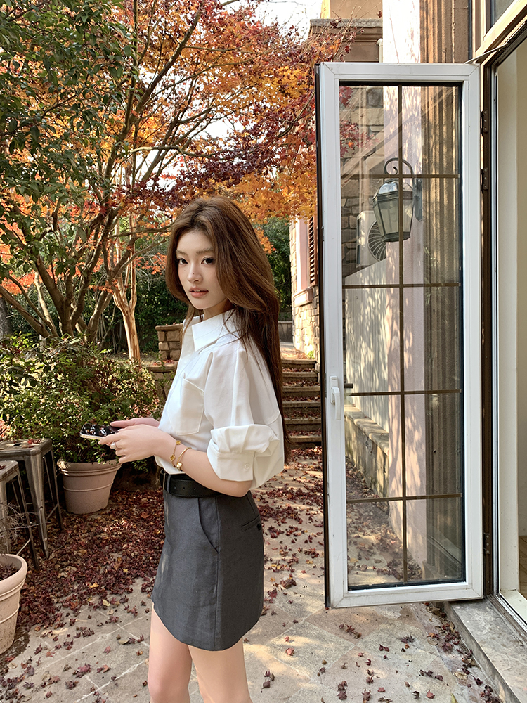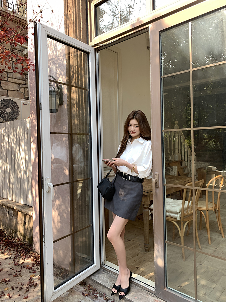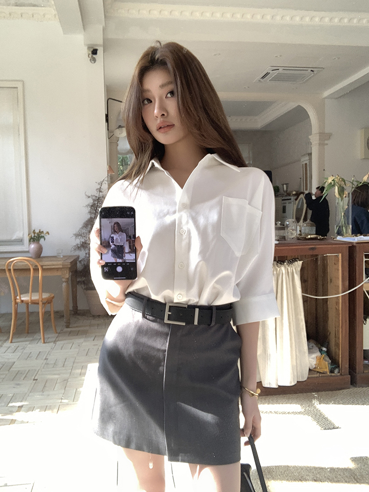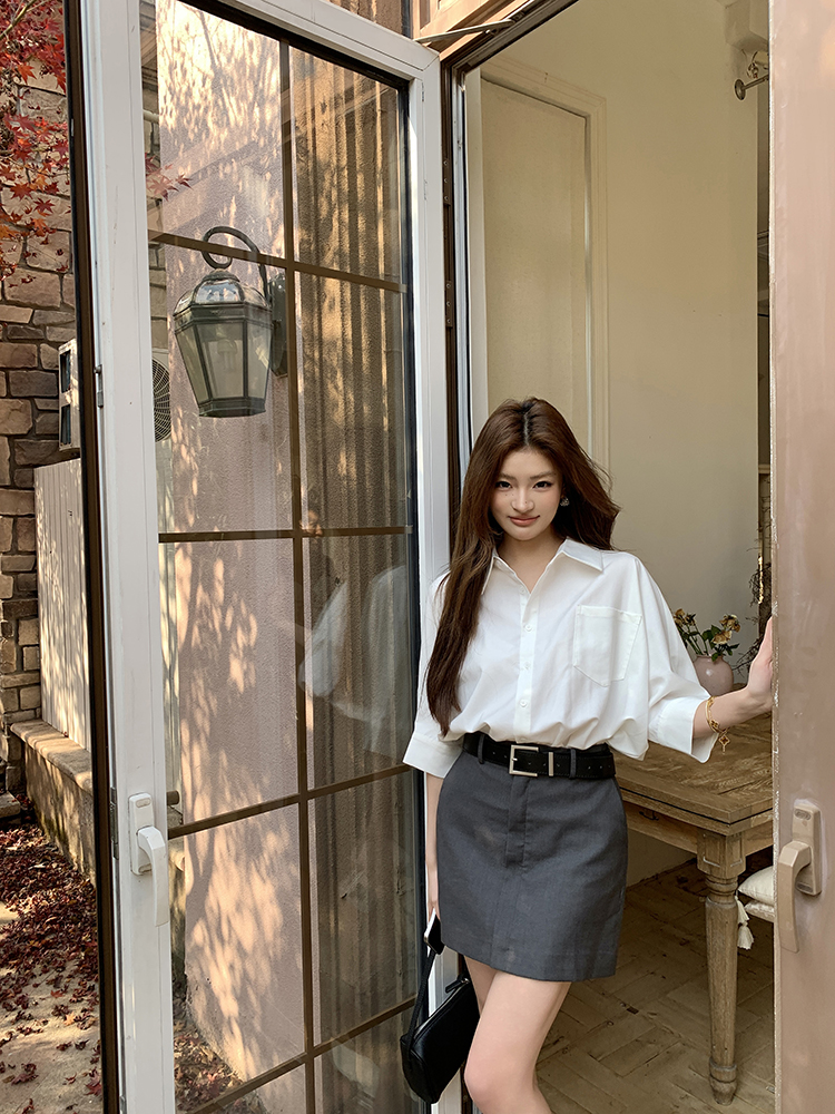 Real shot of the new 2025 spring and summer design sense contrast color stitching temperament fashion shirt dress women's waist short skirt