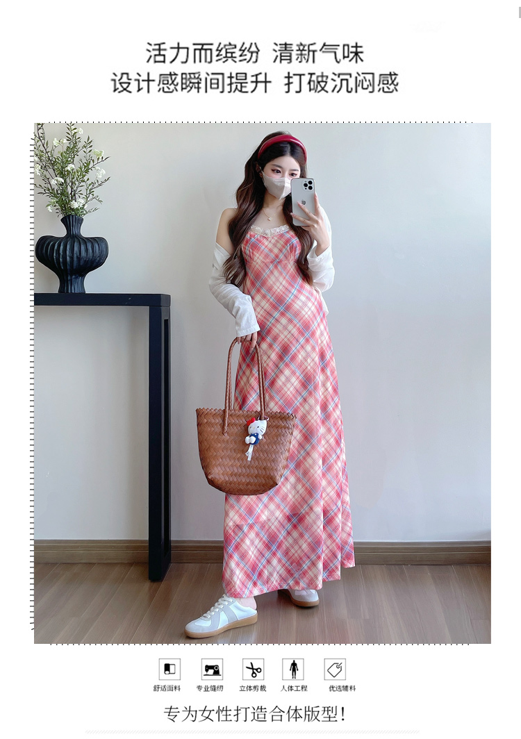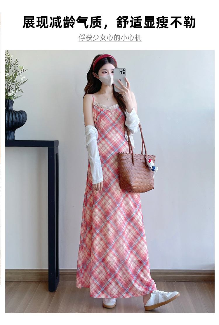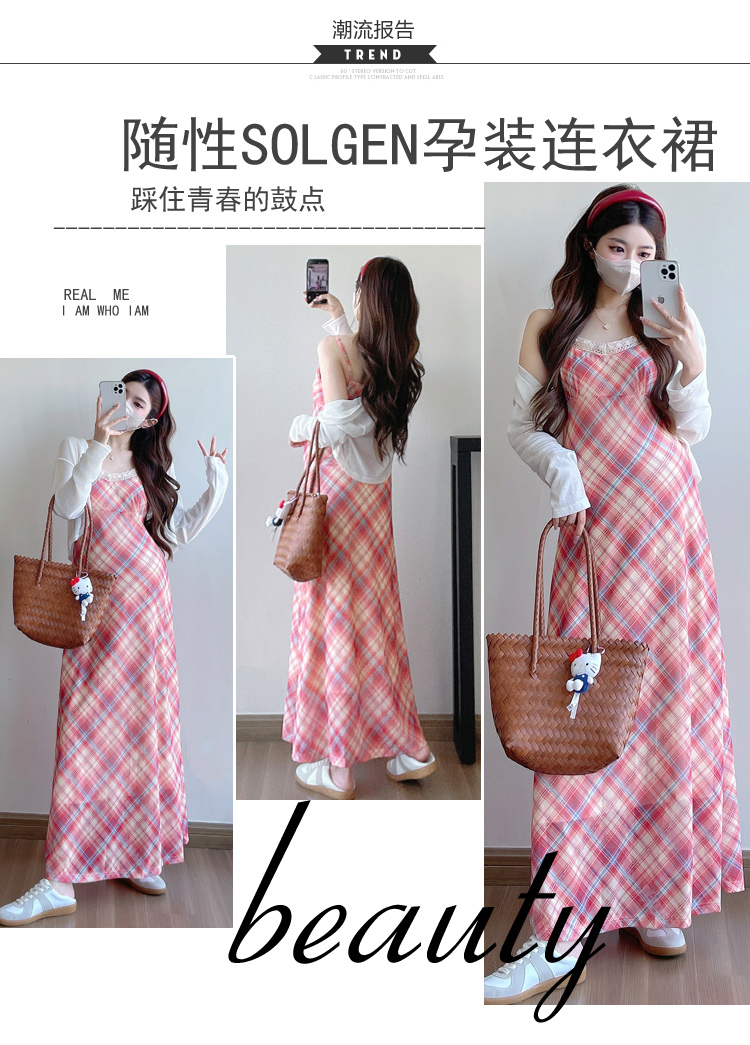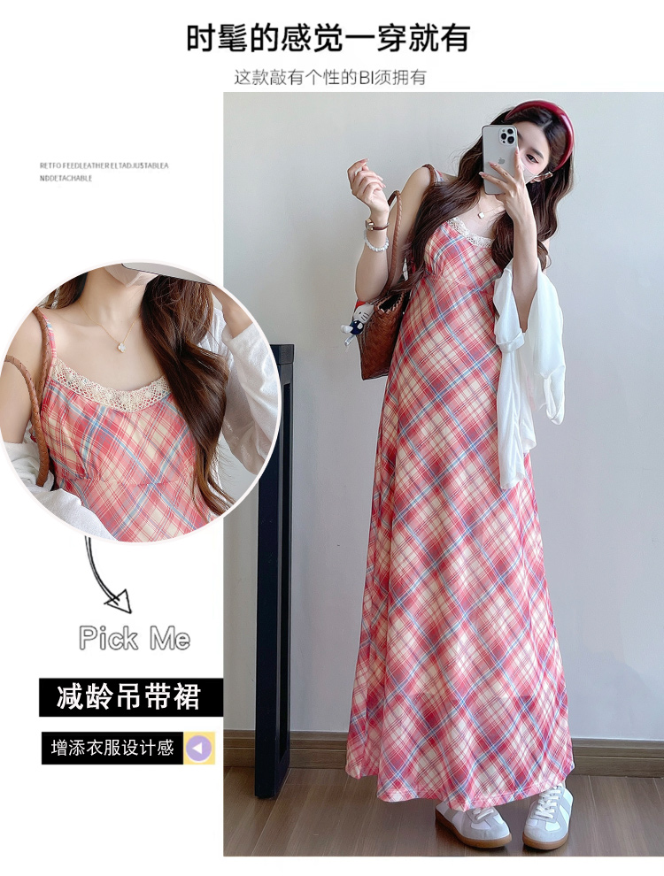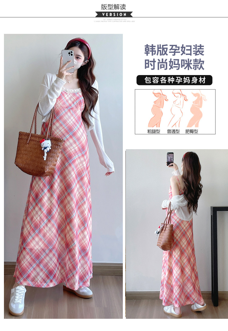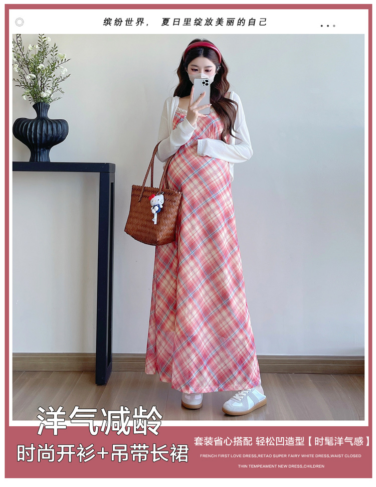 Real shot in stock~ Summer new 2025 French retro red plaid large size pregnant woman temperament belly cover dress