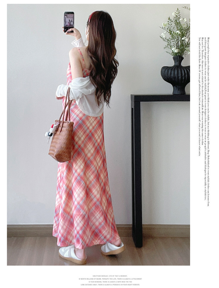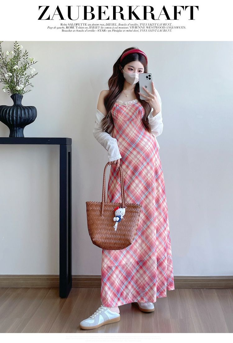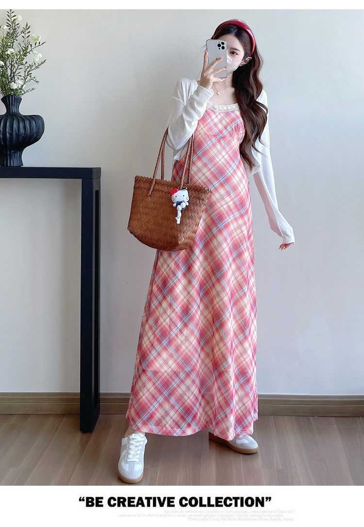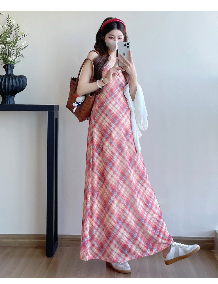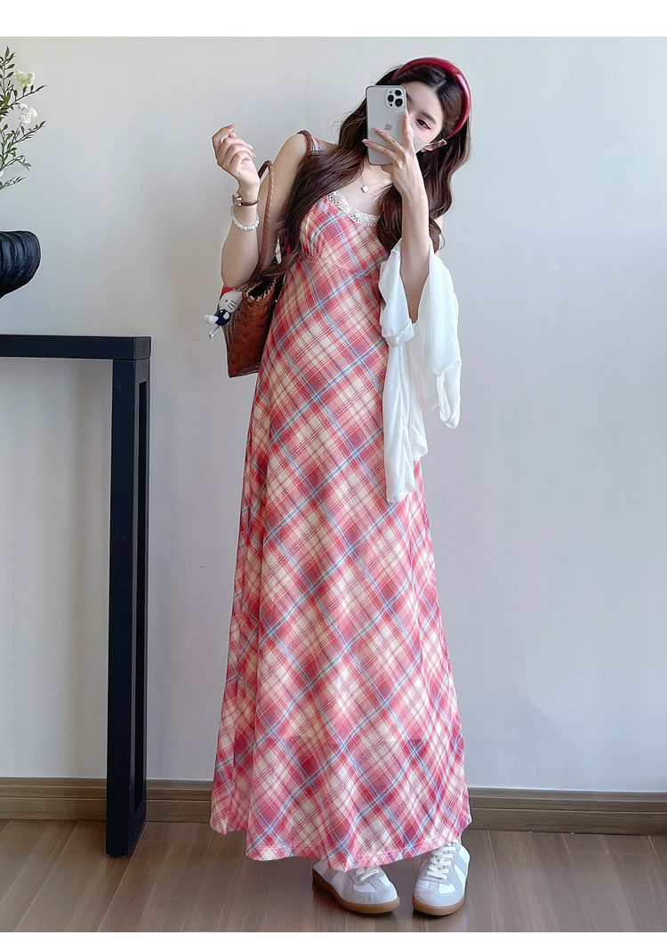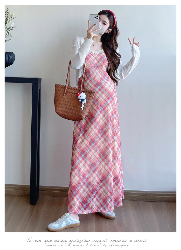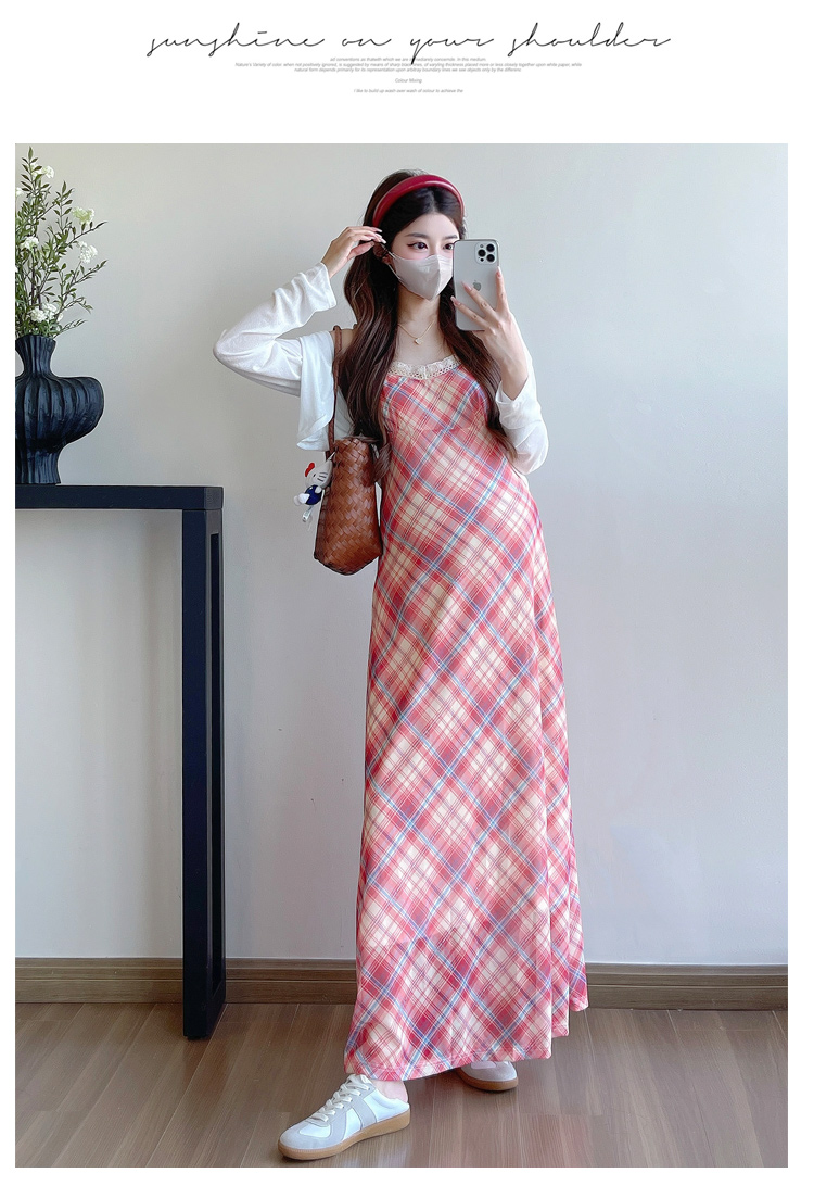Real shot in stock~ Summer new 2025 French retro red plaid large size pregnant woman temperament belly cover dress