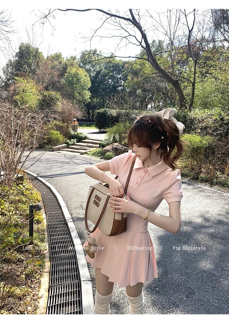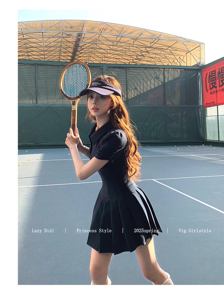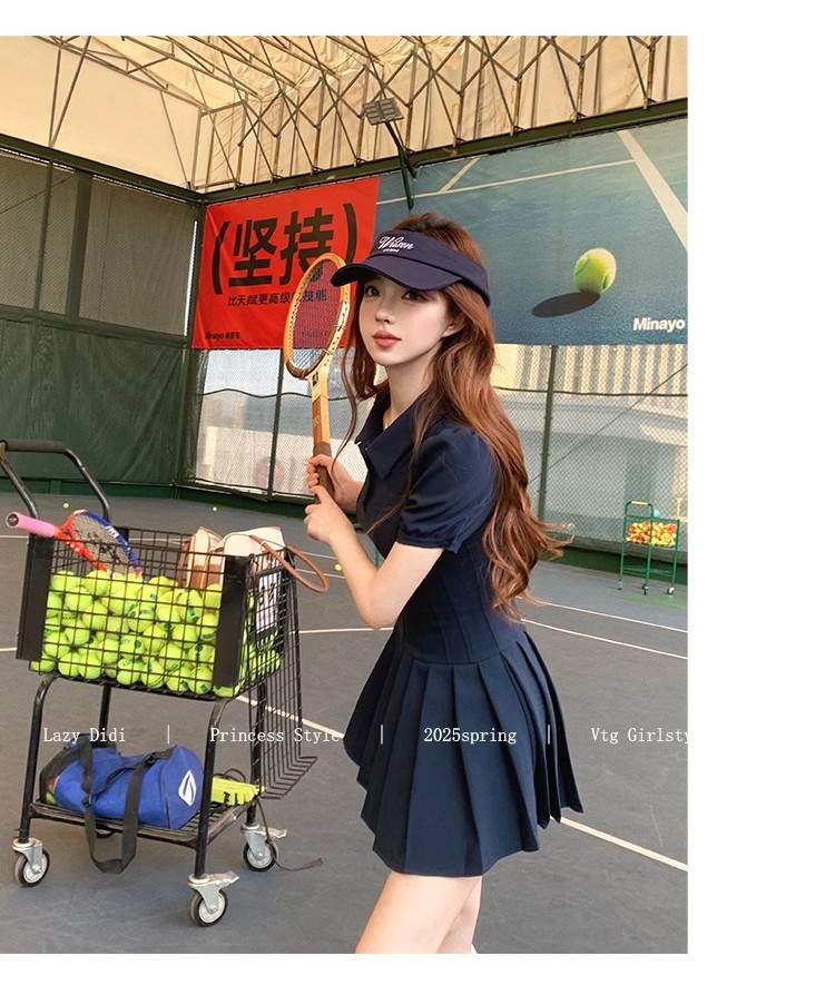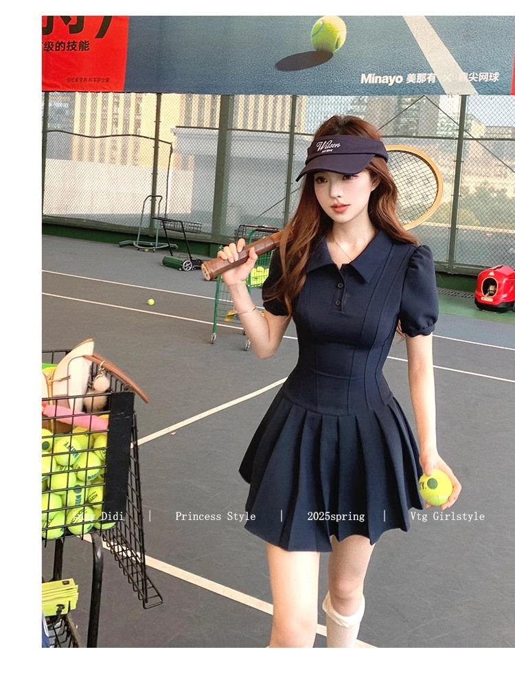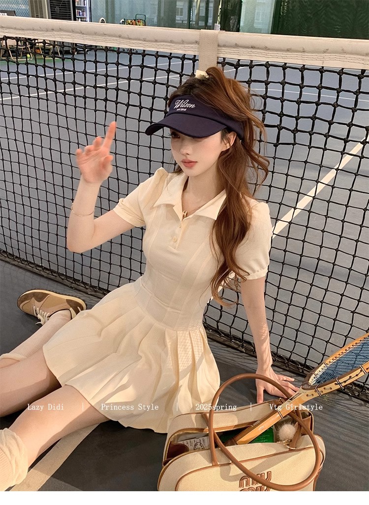 Lazy Didi tennis girl princess waistline classic polo skirt sporty waist a-line lapel dress