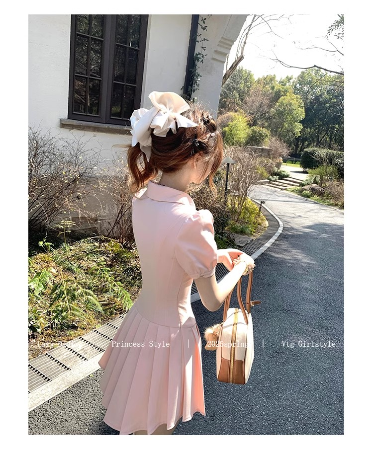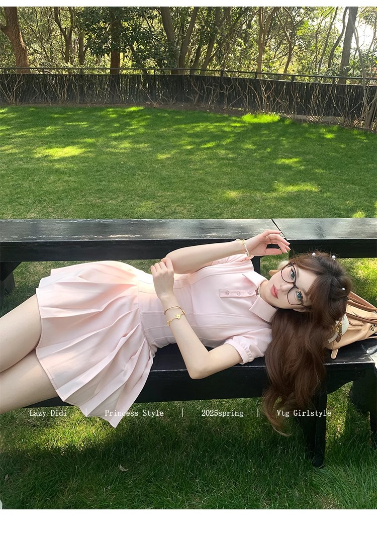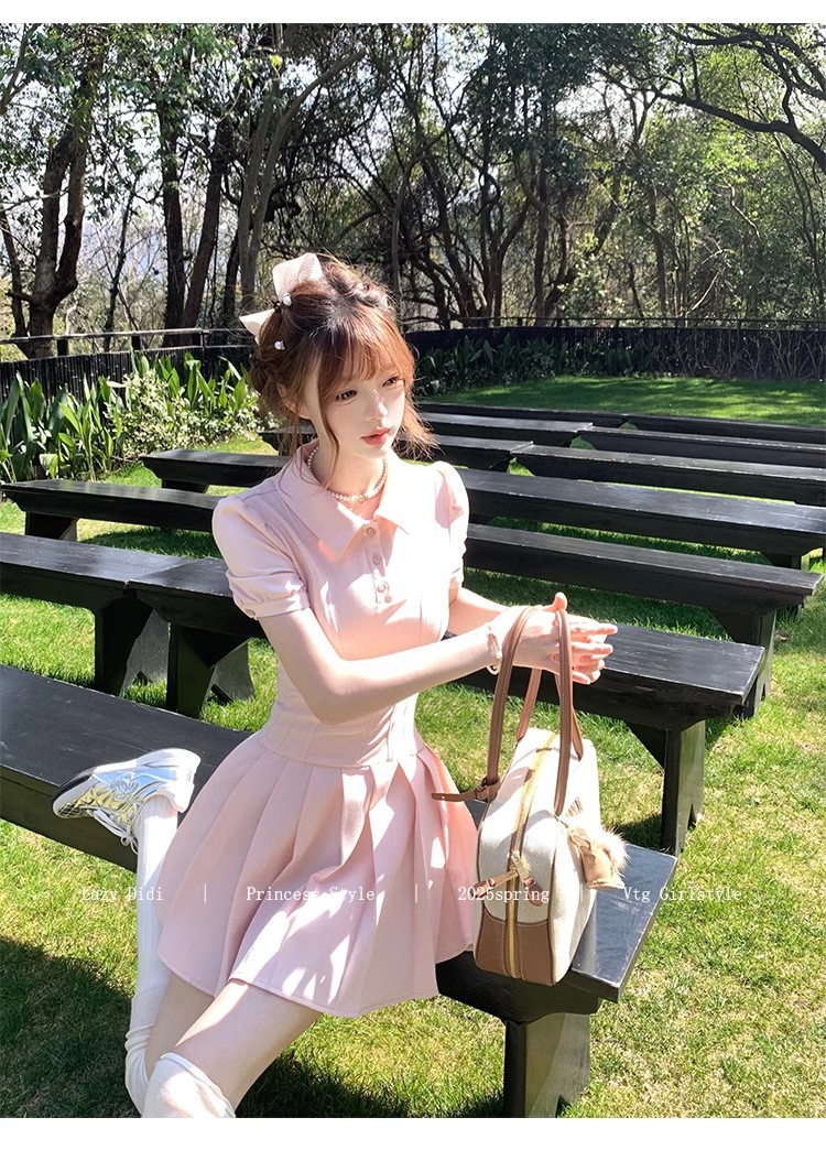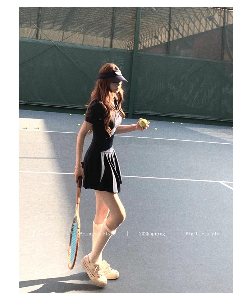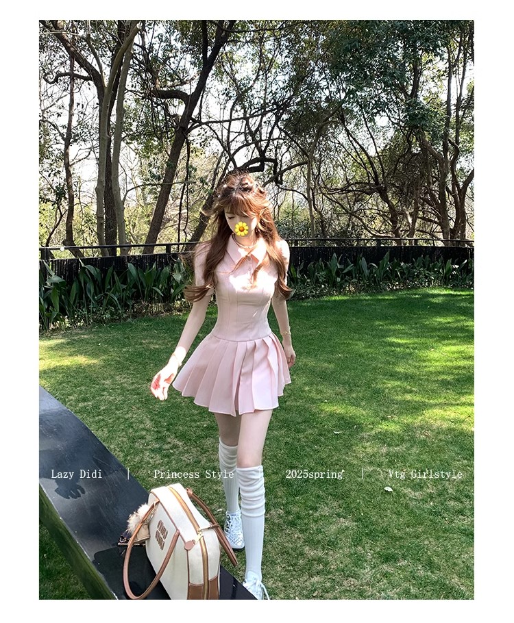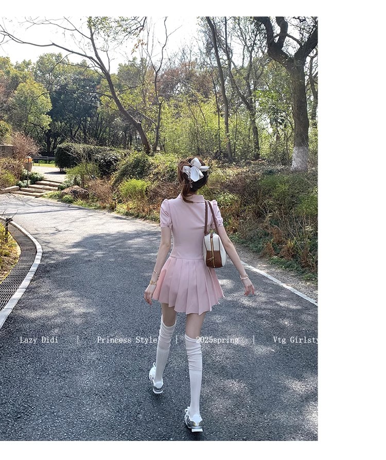 Lazy Didi tennis girl princess waistline classic polo skirt sporty waist a-line lapel dress