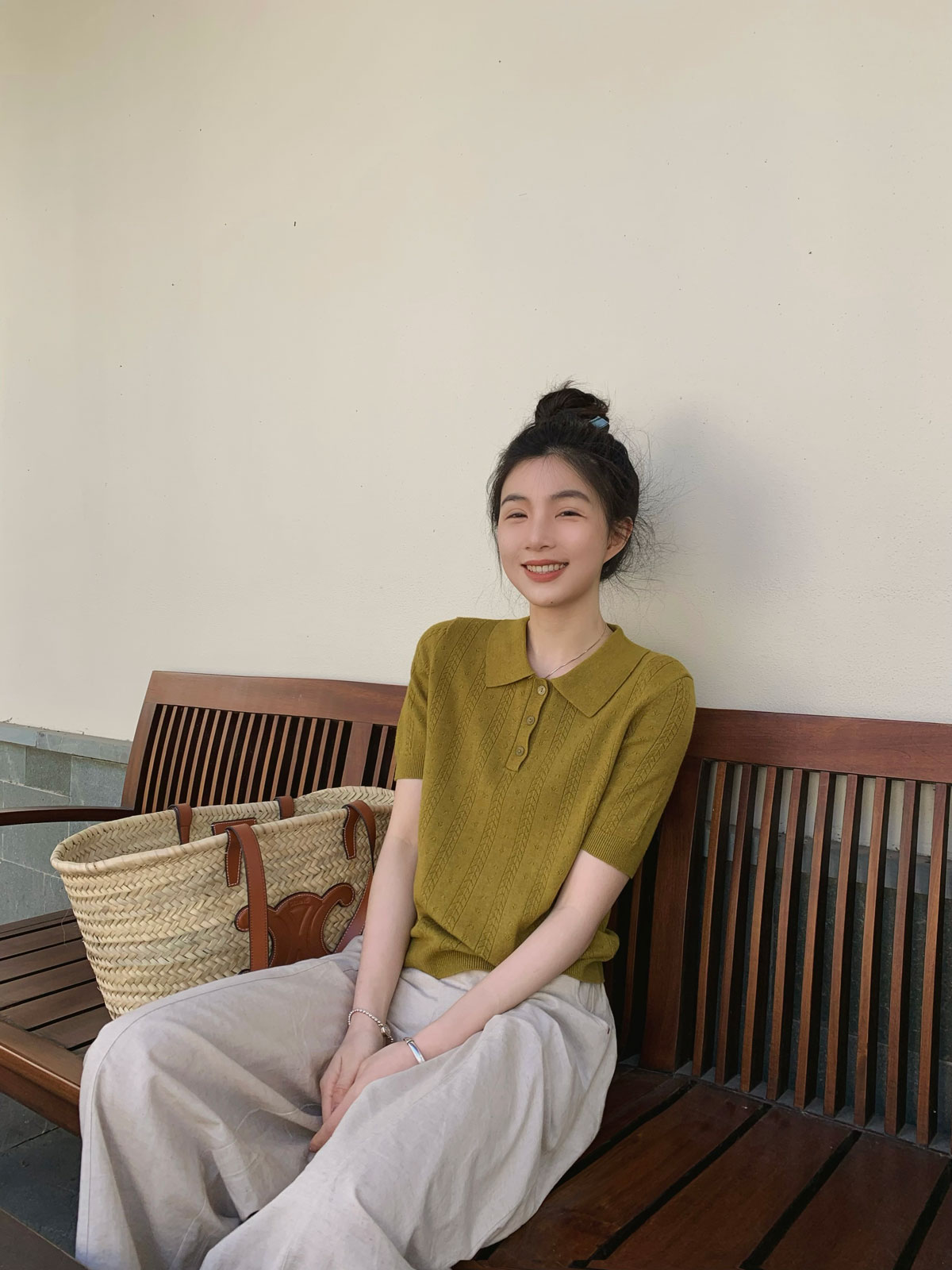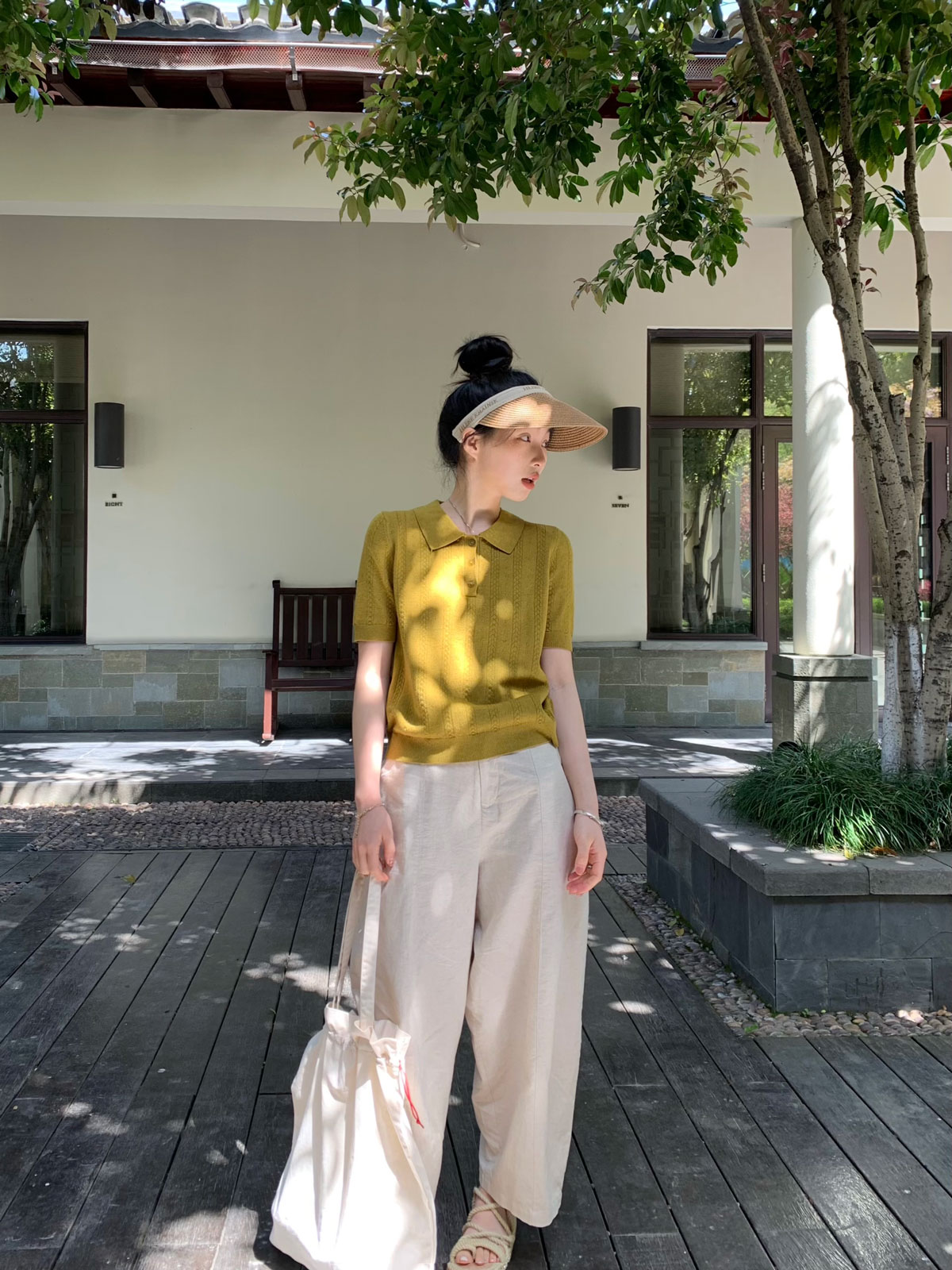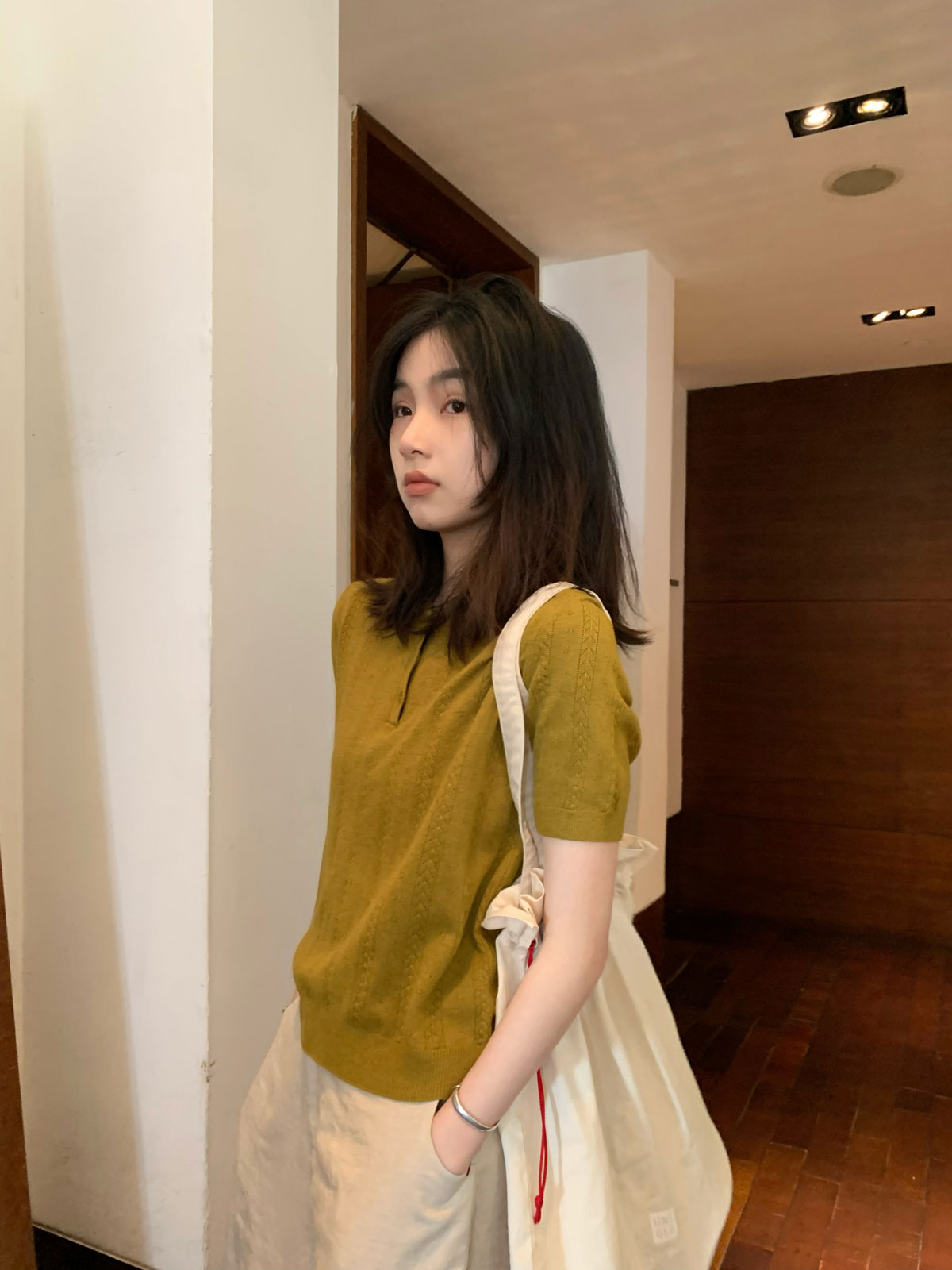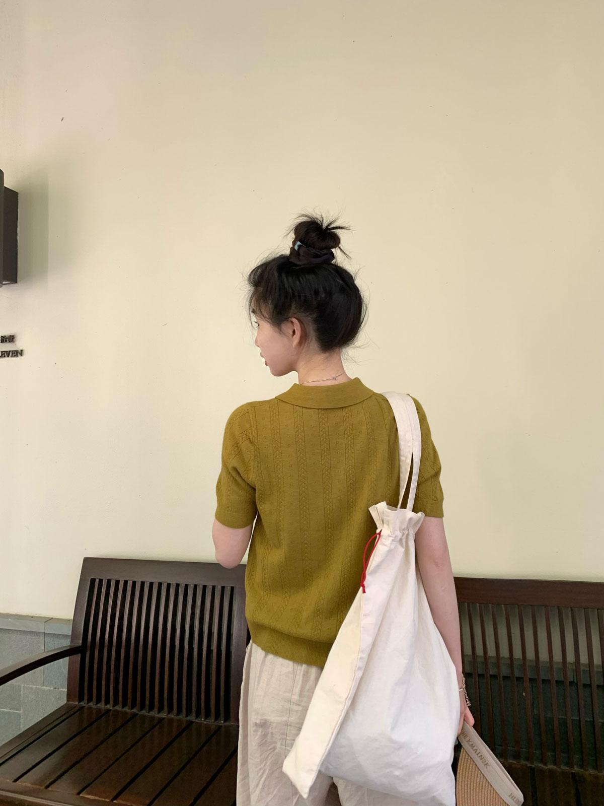 by1171 hook flower blouse retro hollow polo niche design slim exquisite knitted short sleeve t new women
