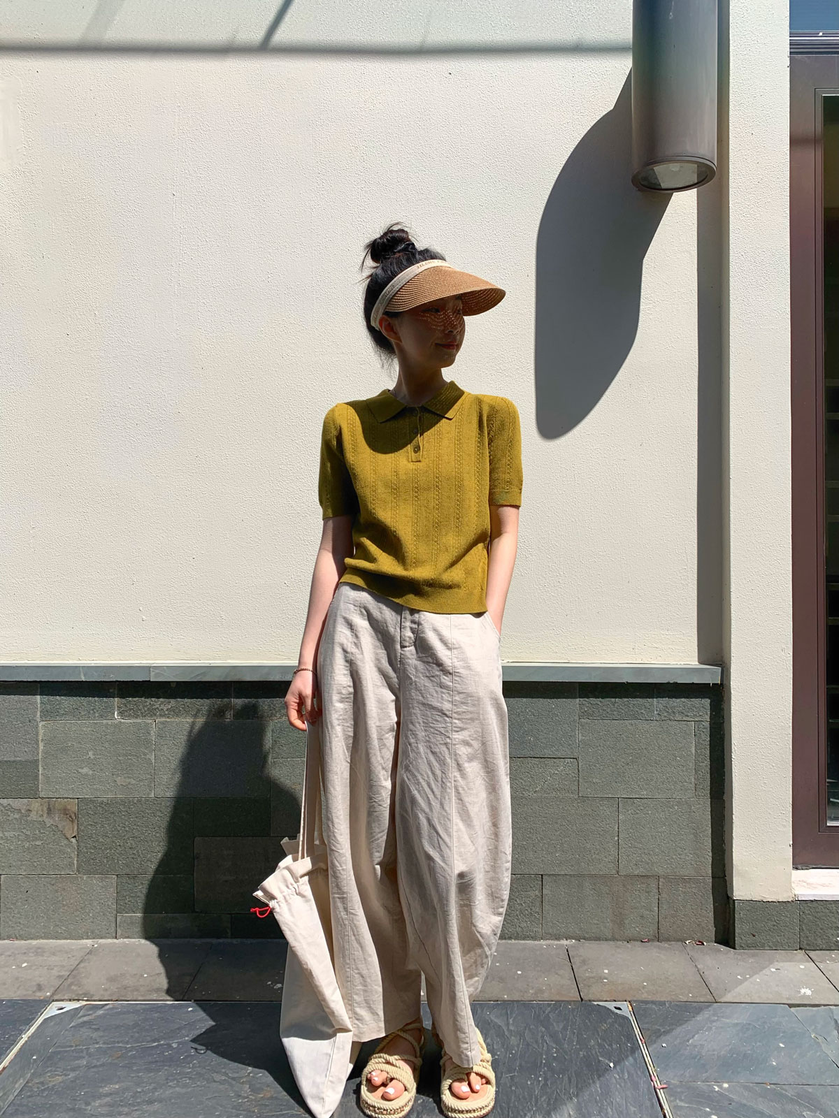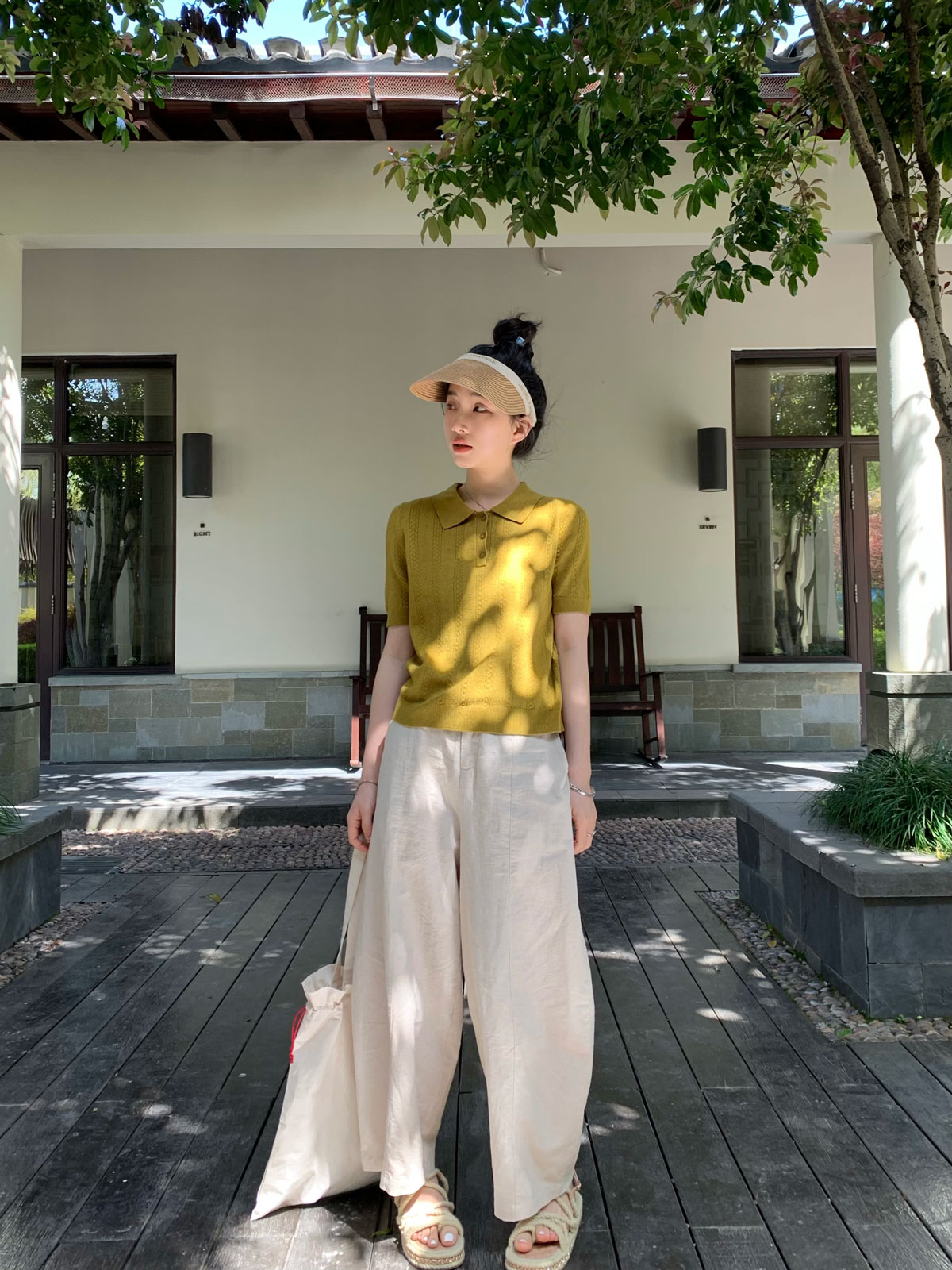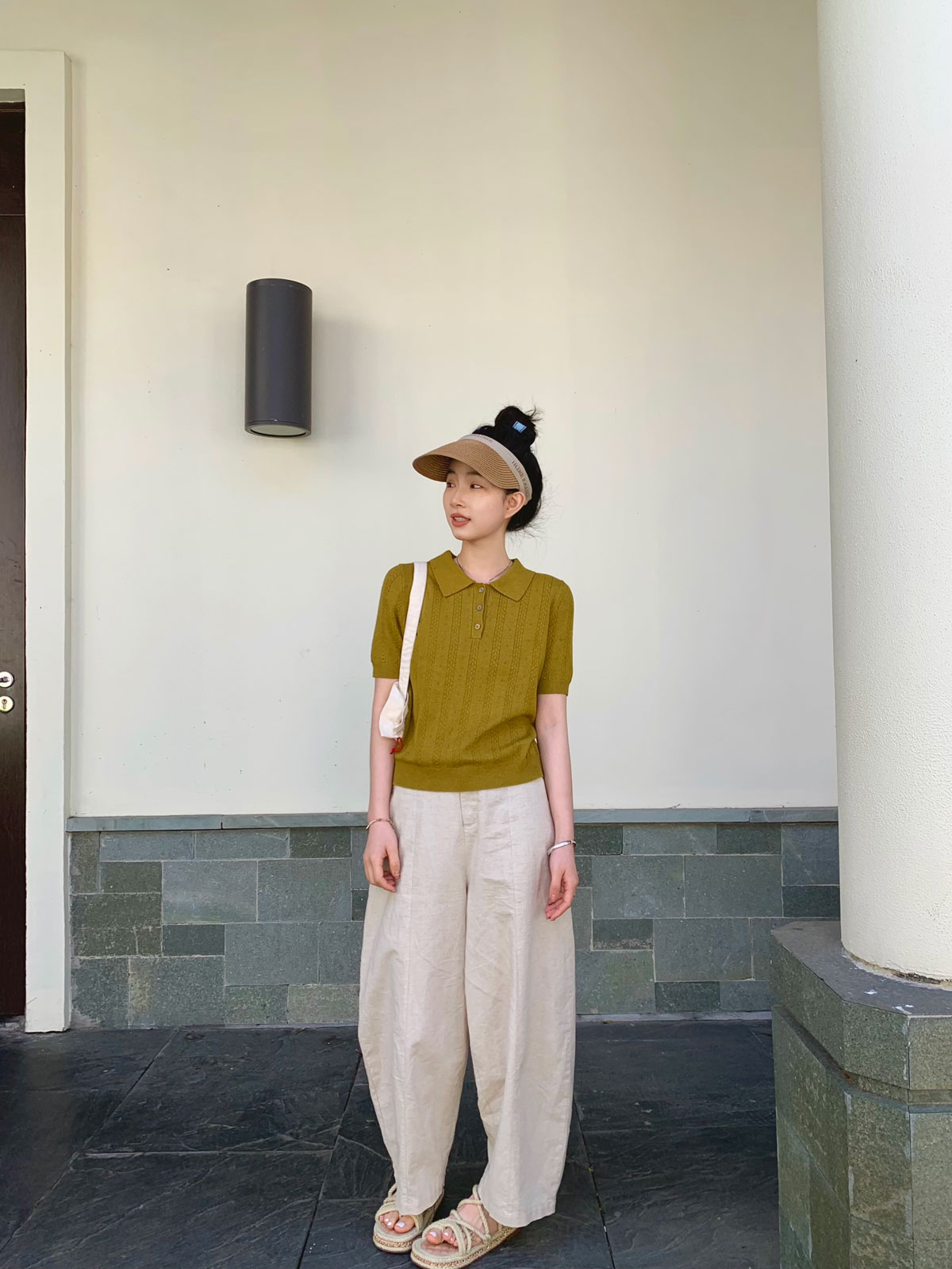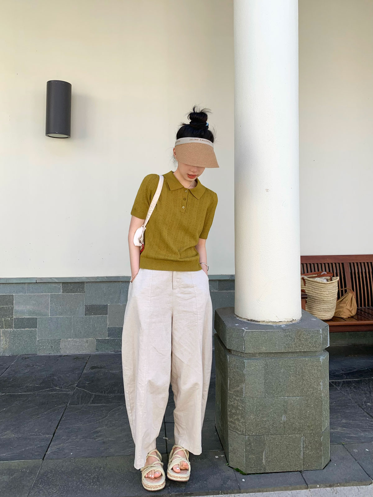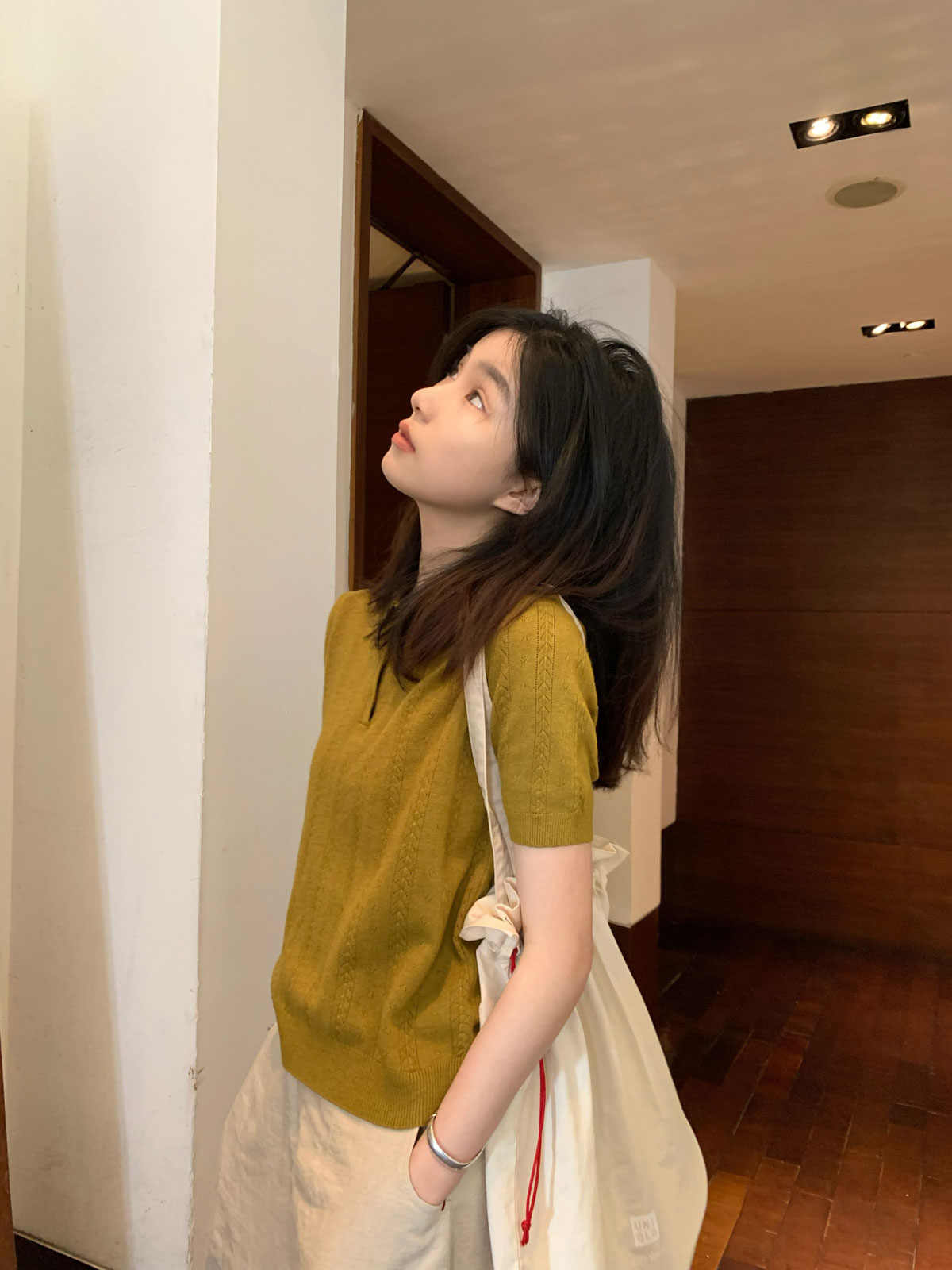 by1171 hook flower blouse retro hollow polo niche design slim exquisite knitted short sleeve t new women