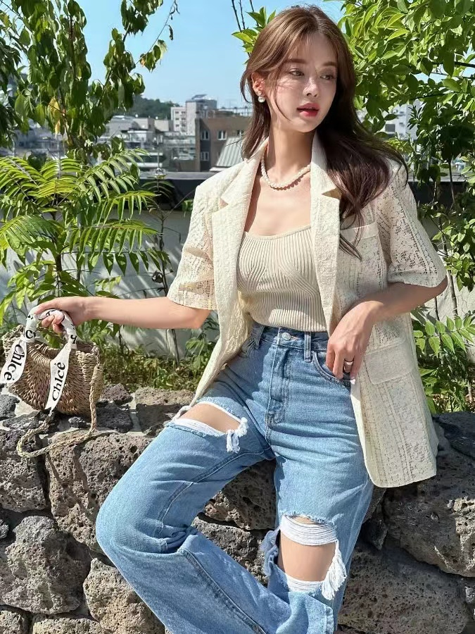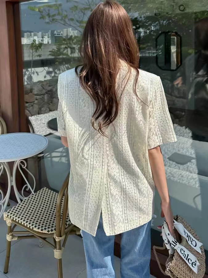 Korean style new style casual mesh flower single-breasted short-sleeved suit