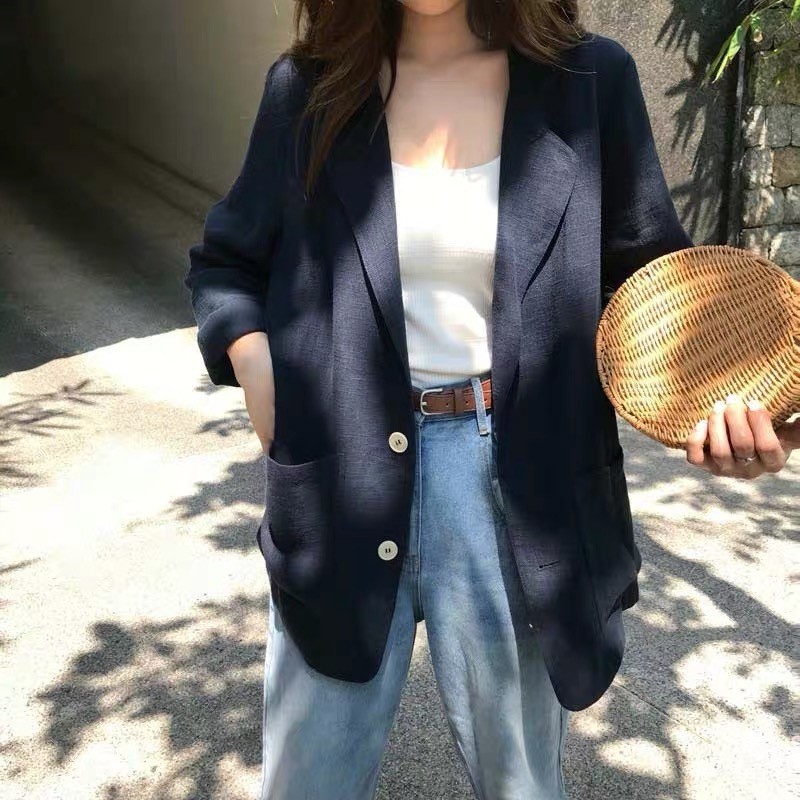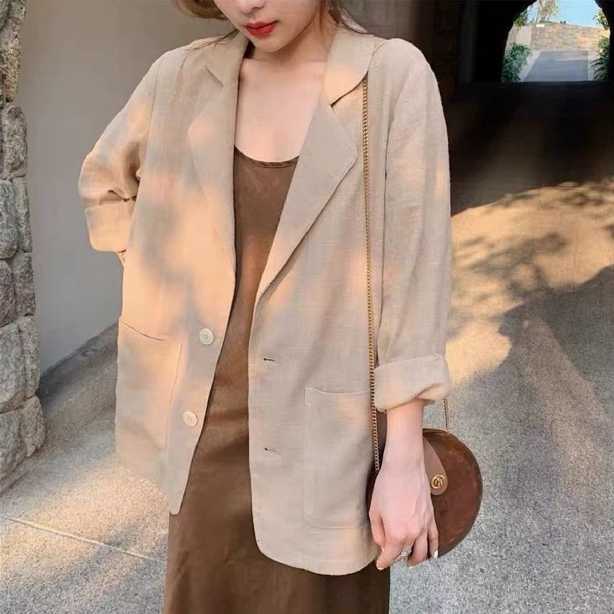 大码棉麻西装外套女胖mm薄款防晒新款宽松休闲小西服夏200斤