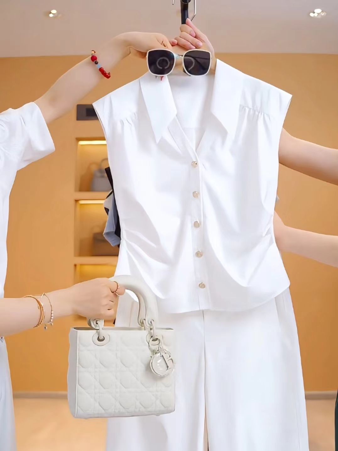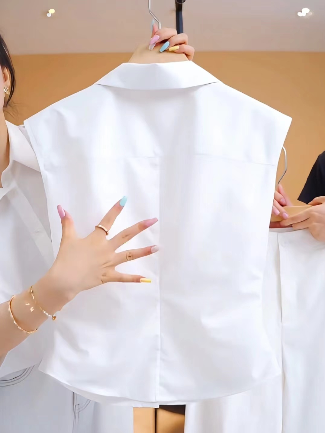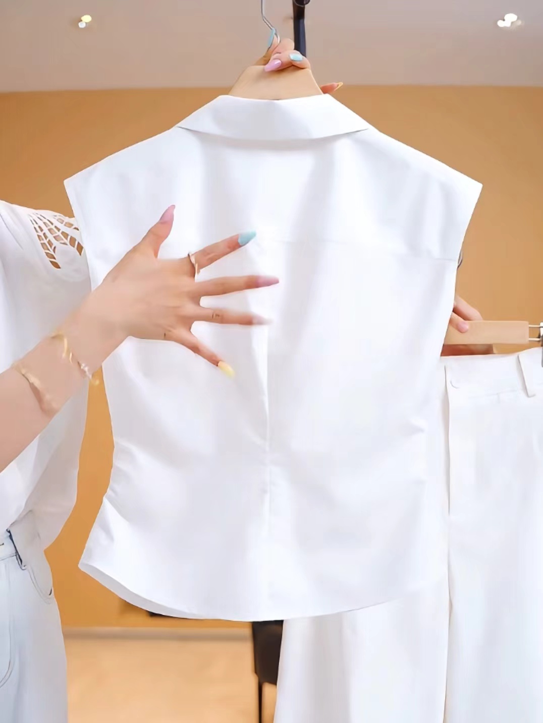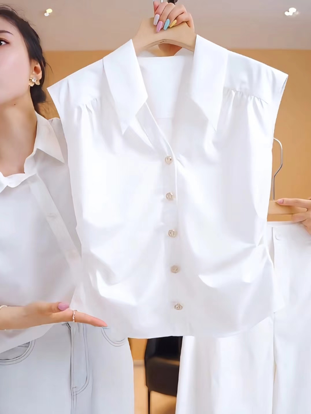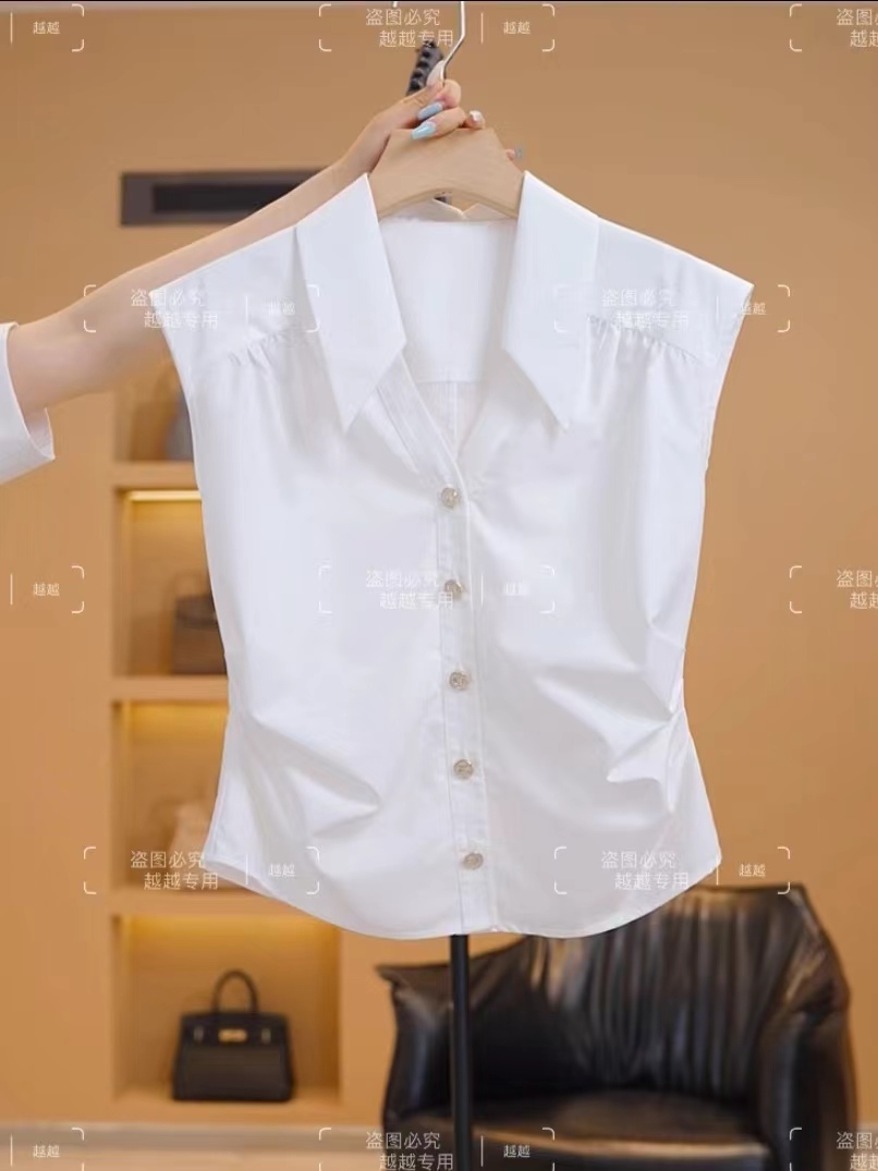 Sleeveless pure white shirt vest for women 2025 summer new style fashionable waist slimming simple all-match tops for women