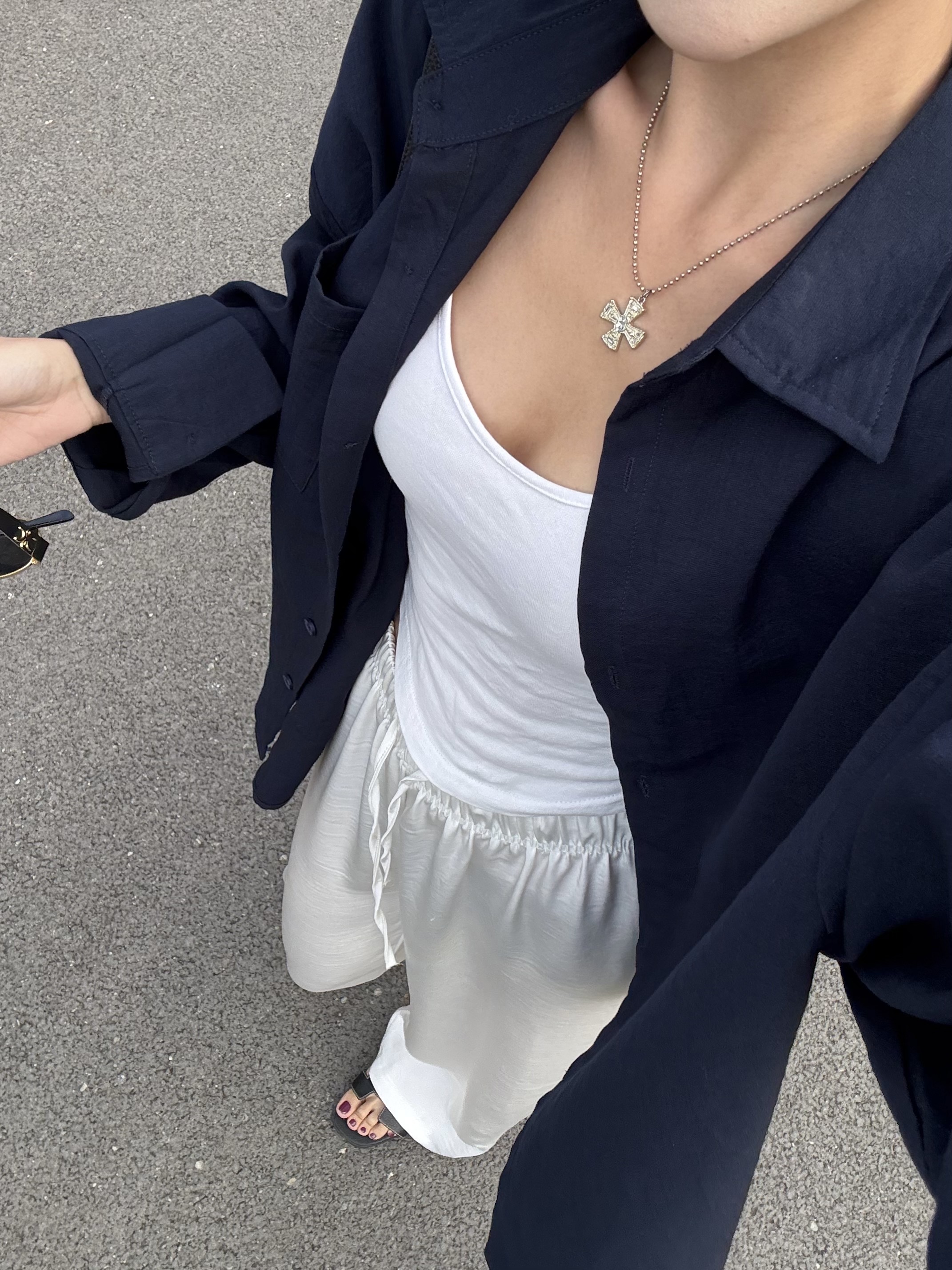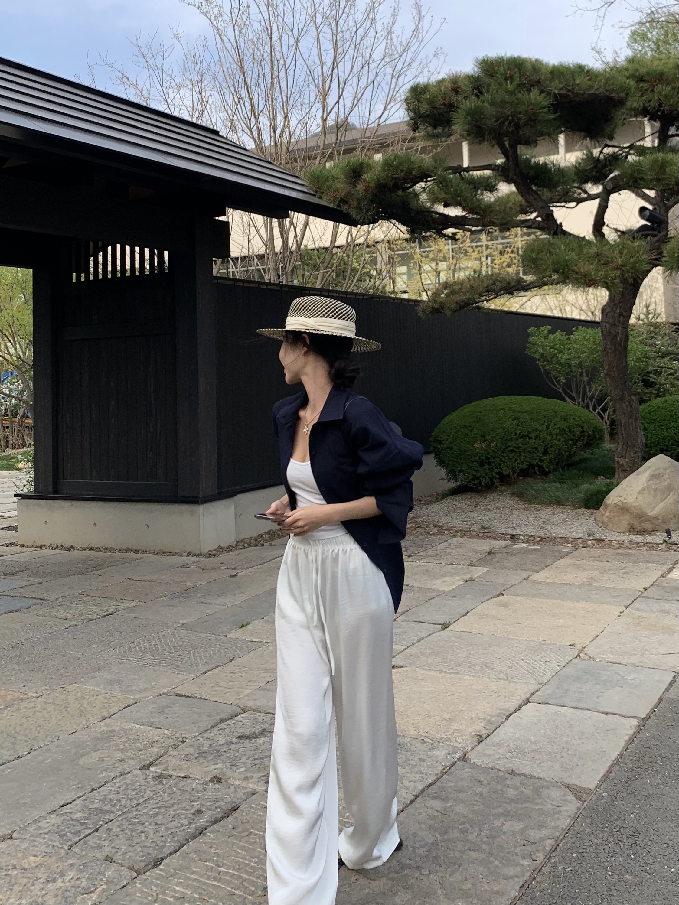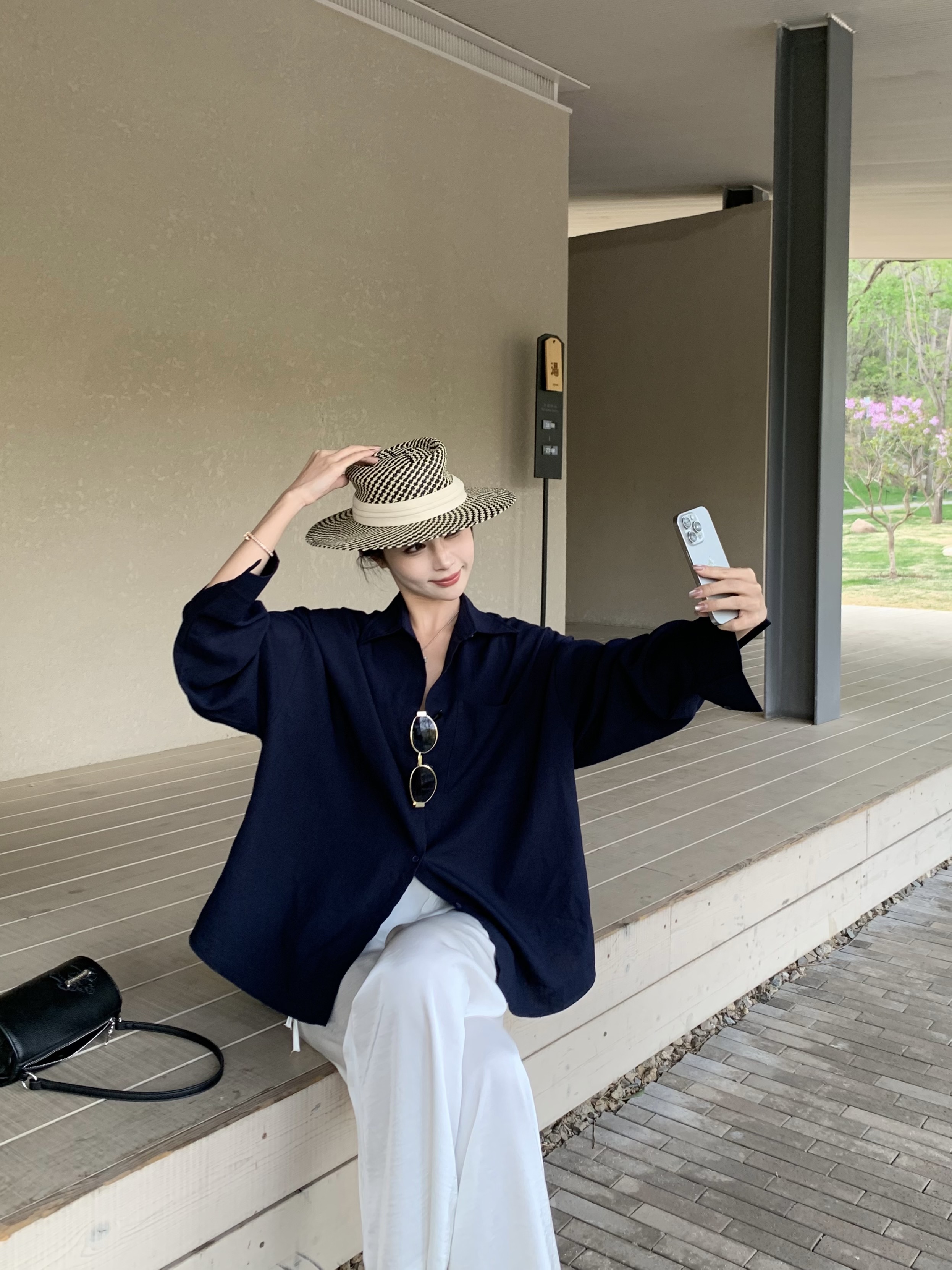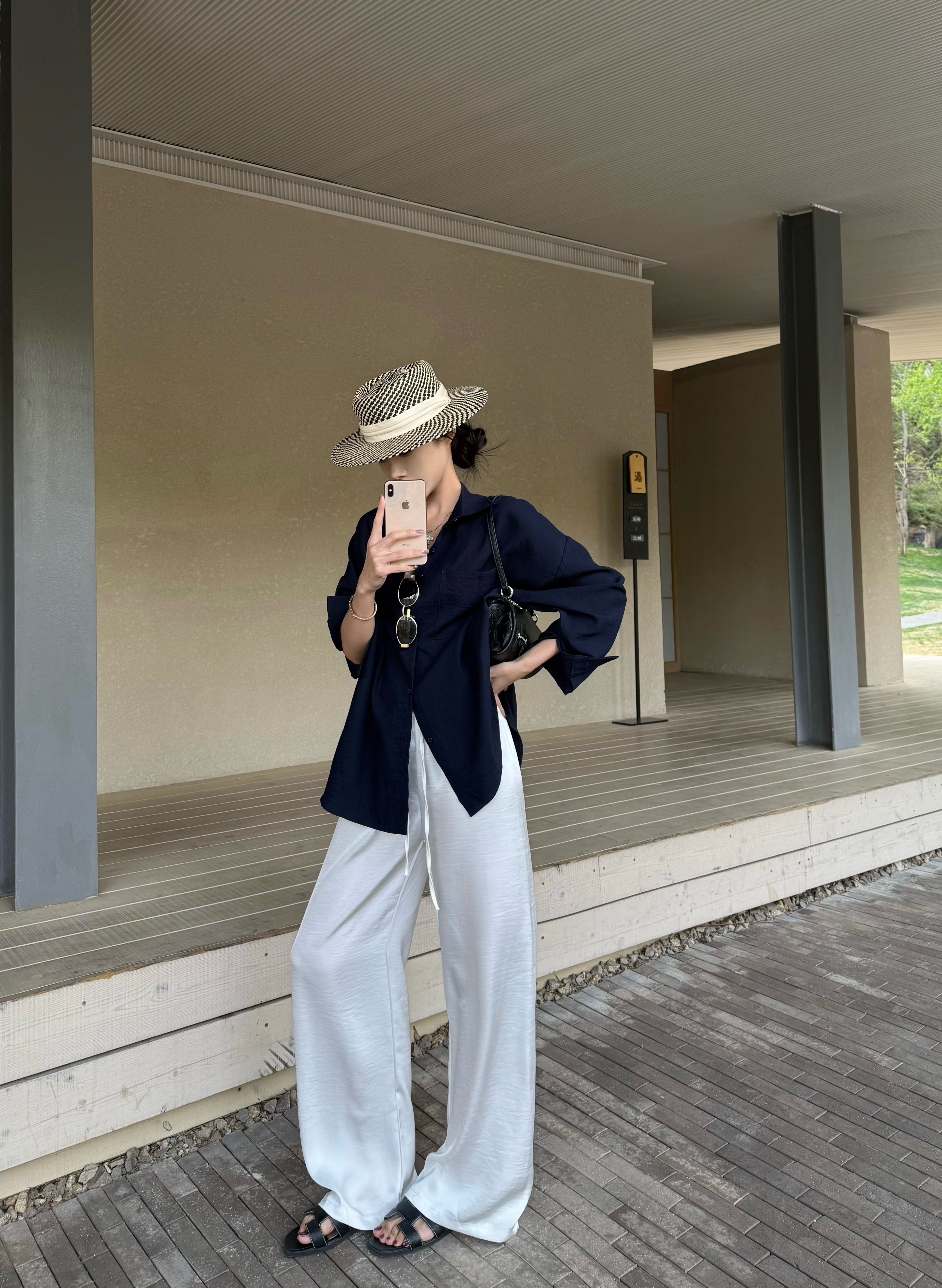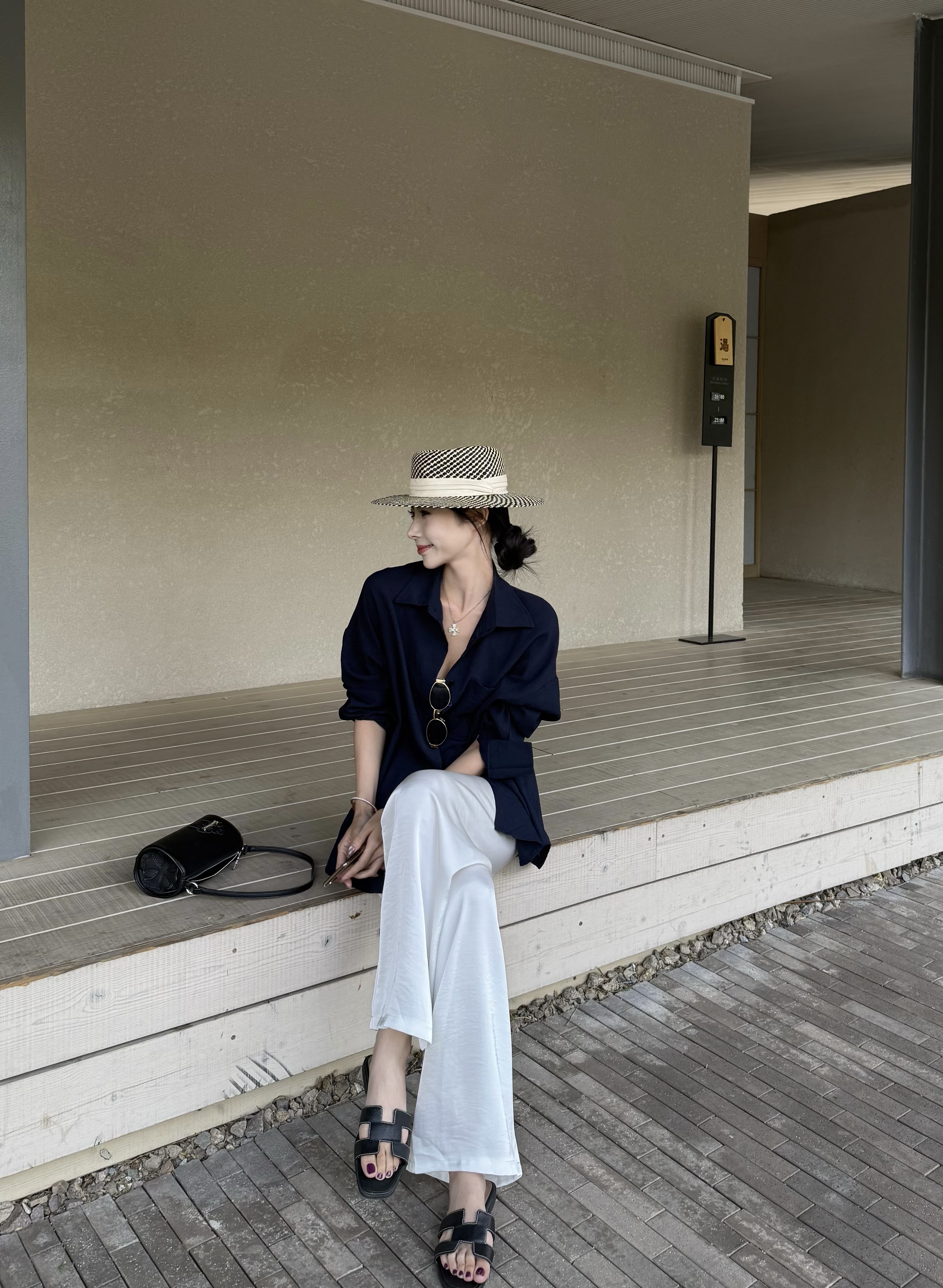 实拍实价 宽松慵懒休闲衬衫开衫缎面凉凉休闲裤