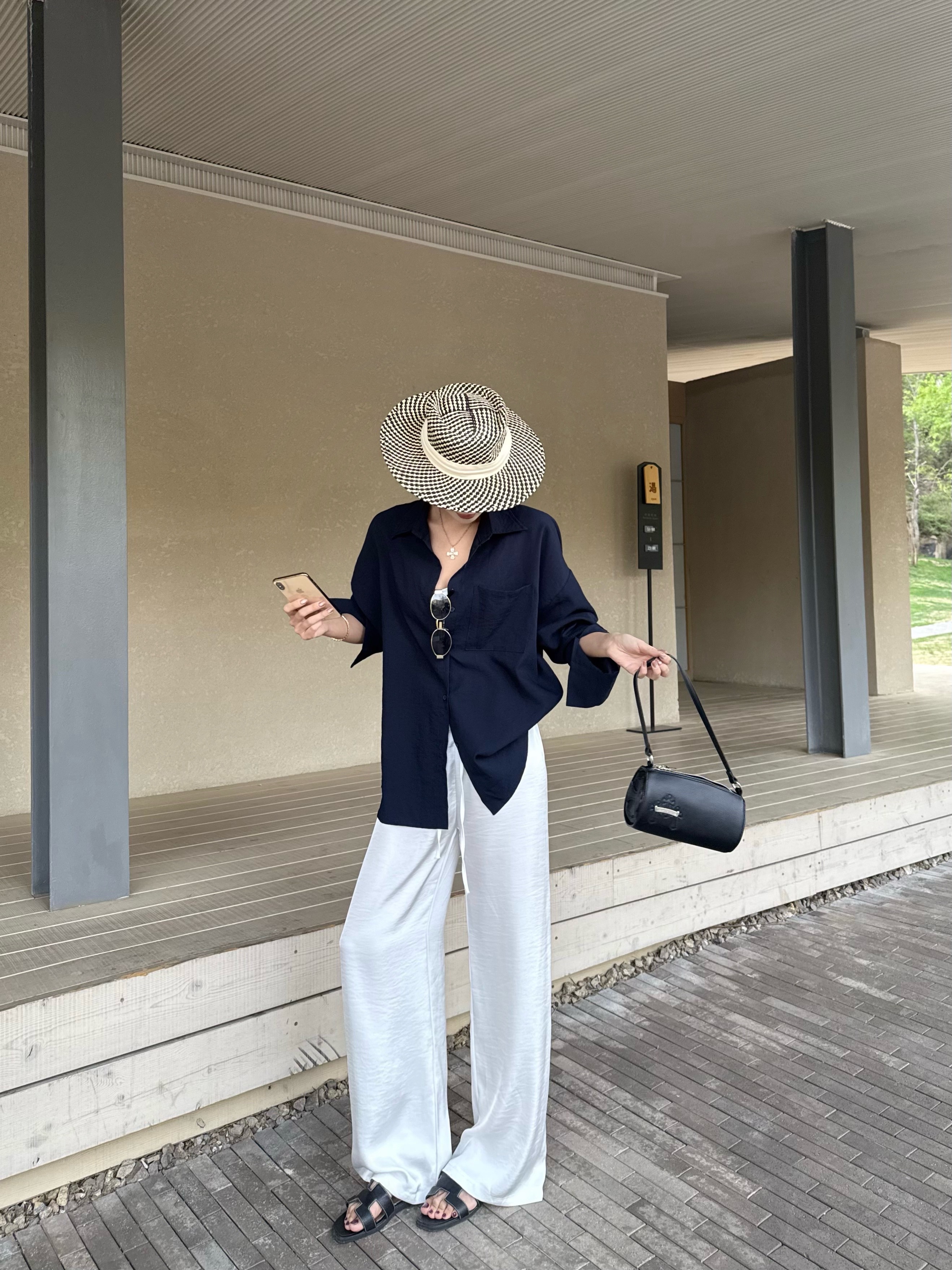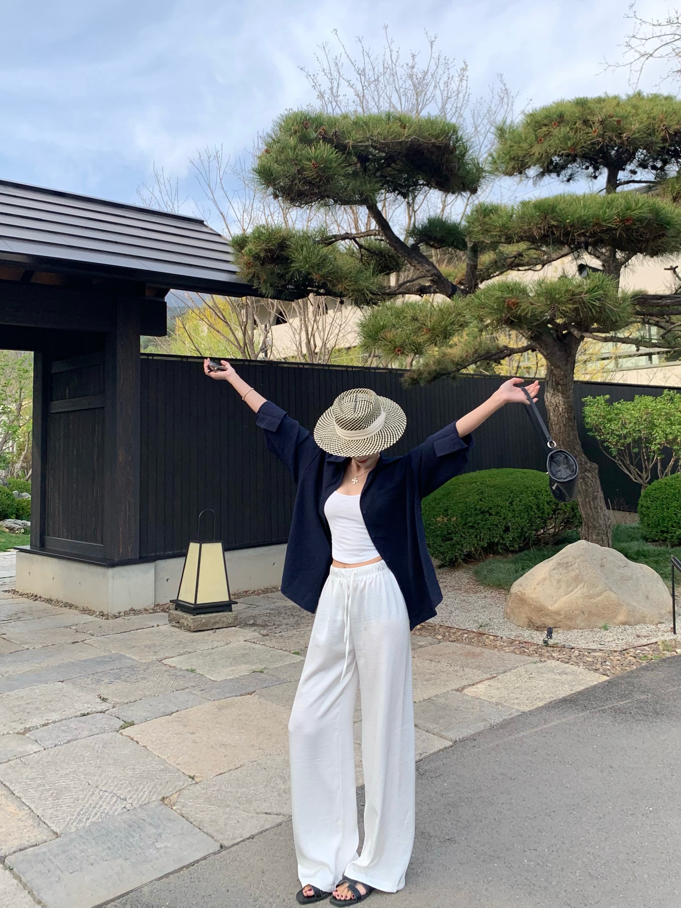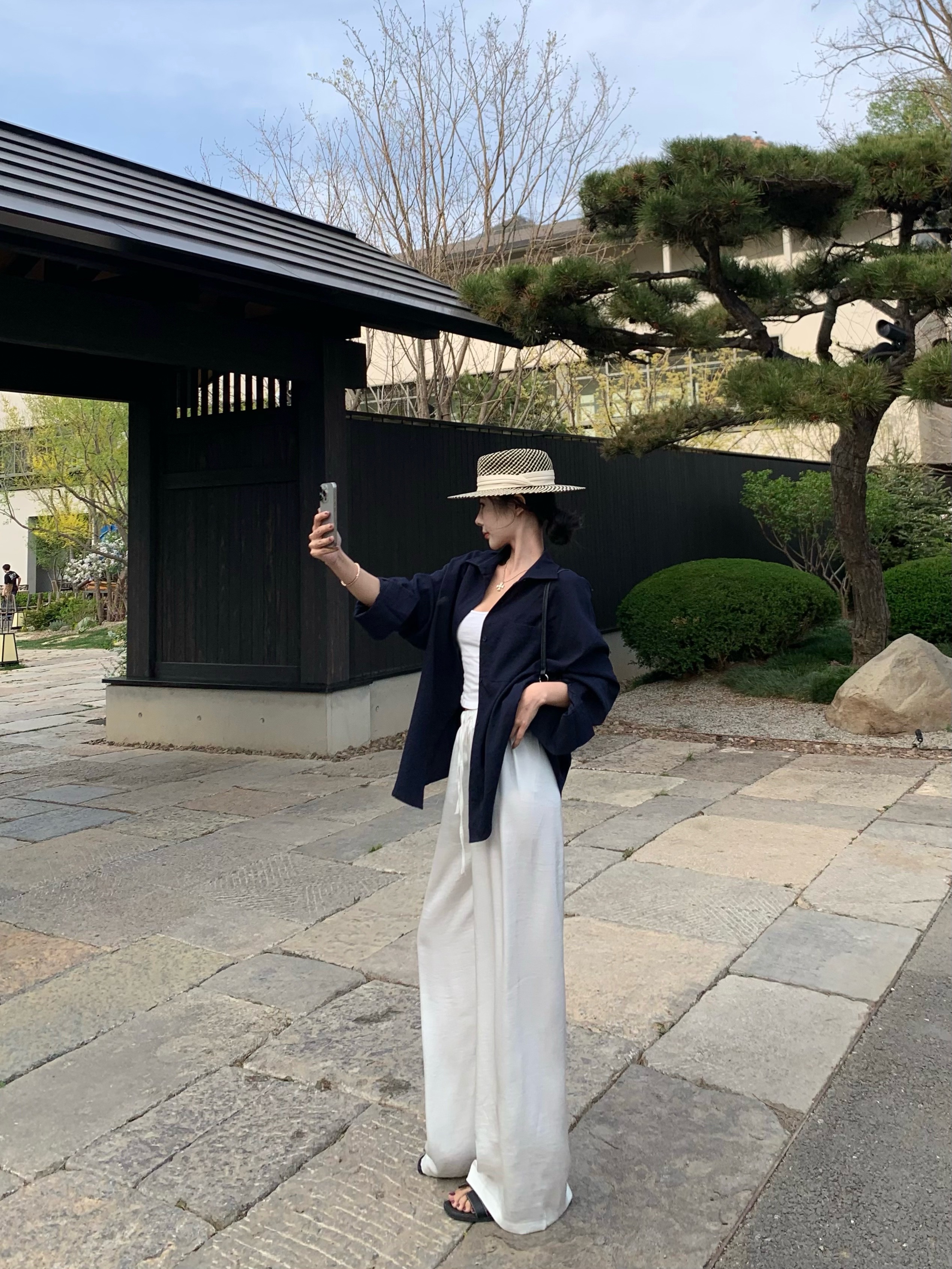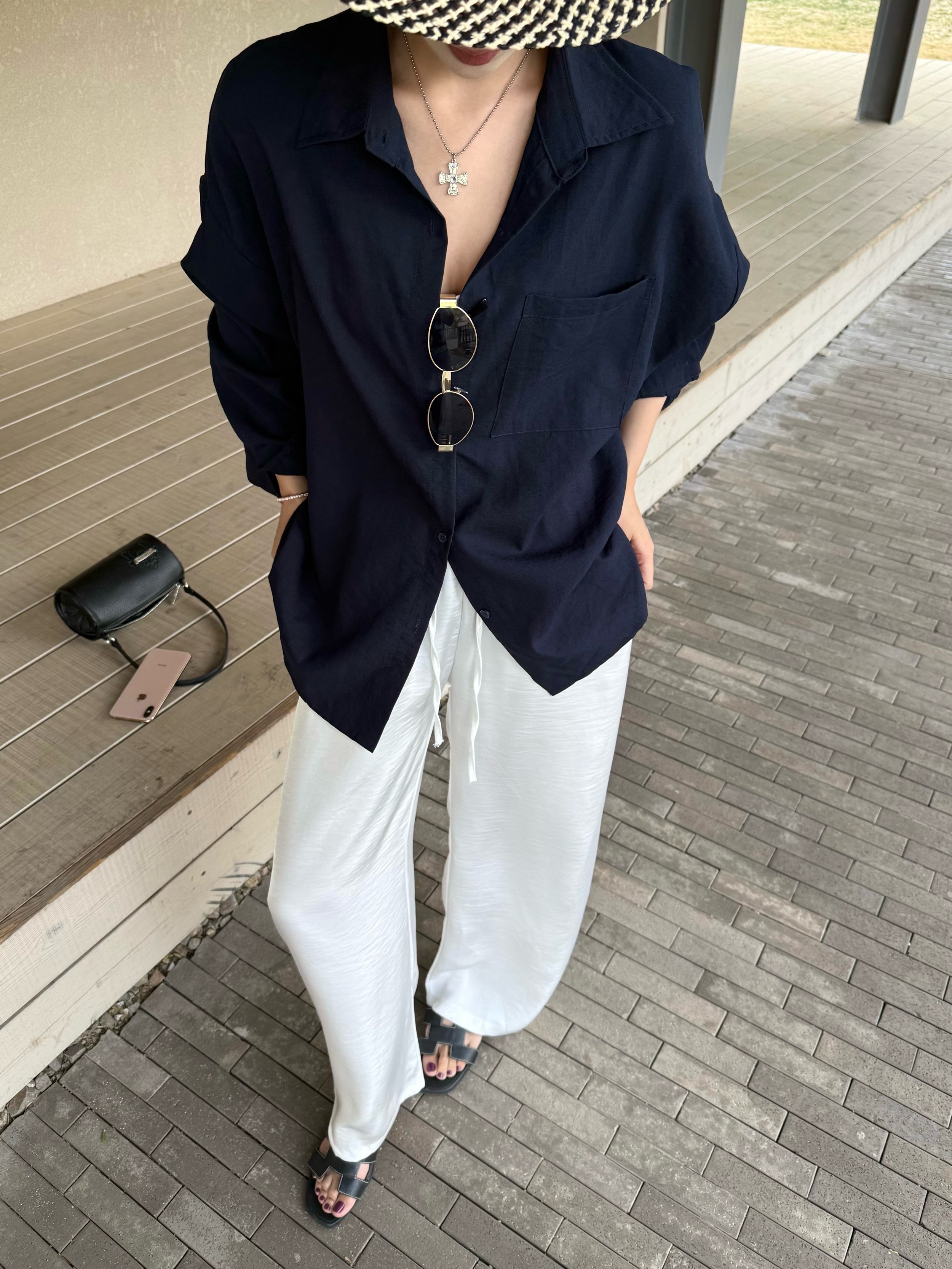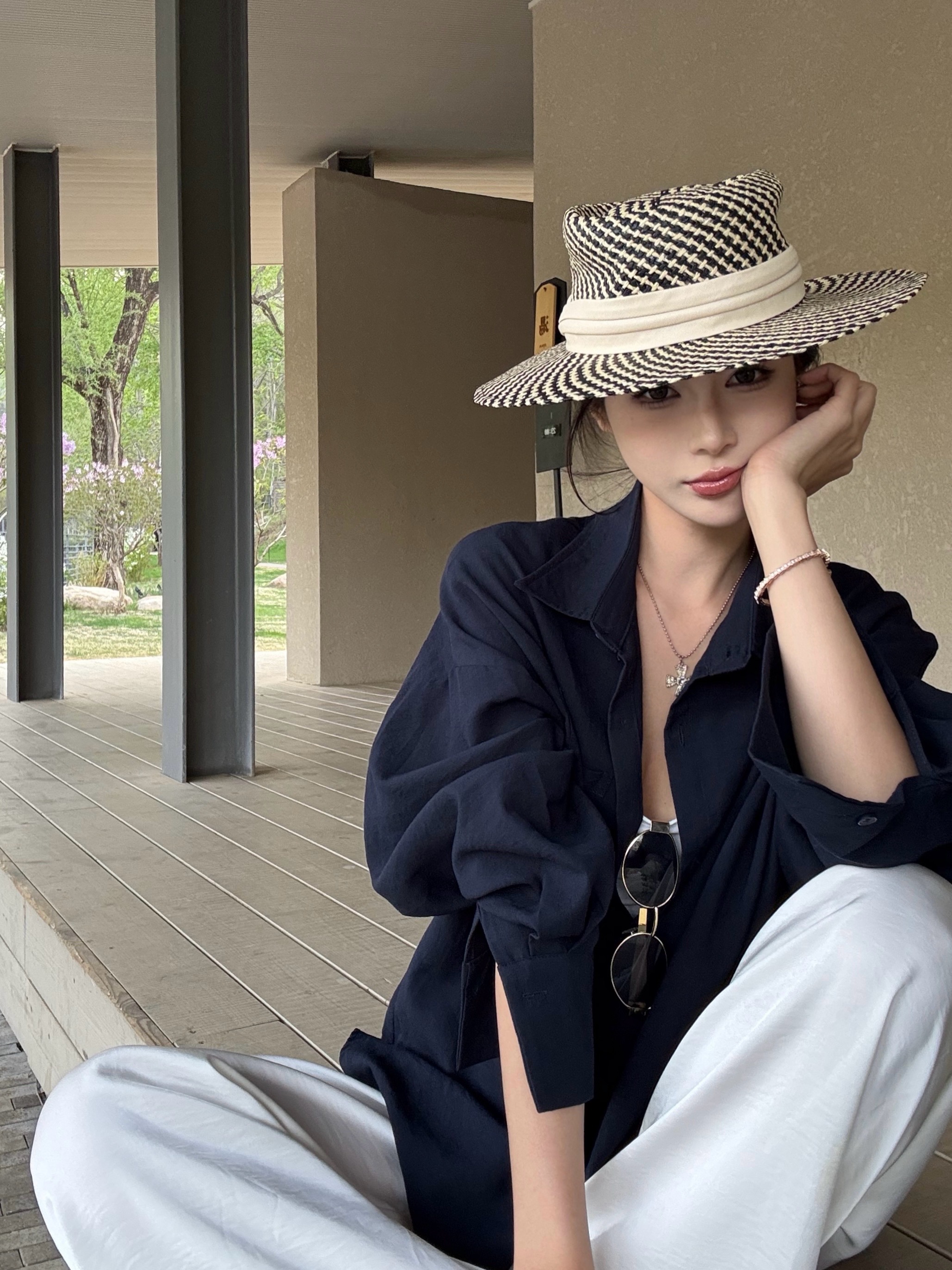 实拍实价 宽松慵懒休闲衬衫开衫缎面凉凉休闲裤