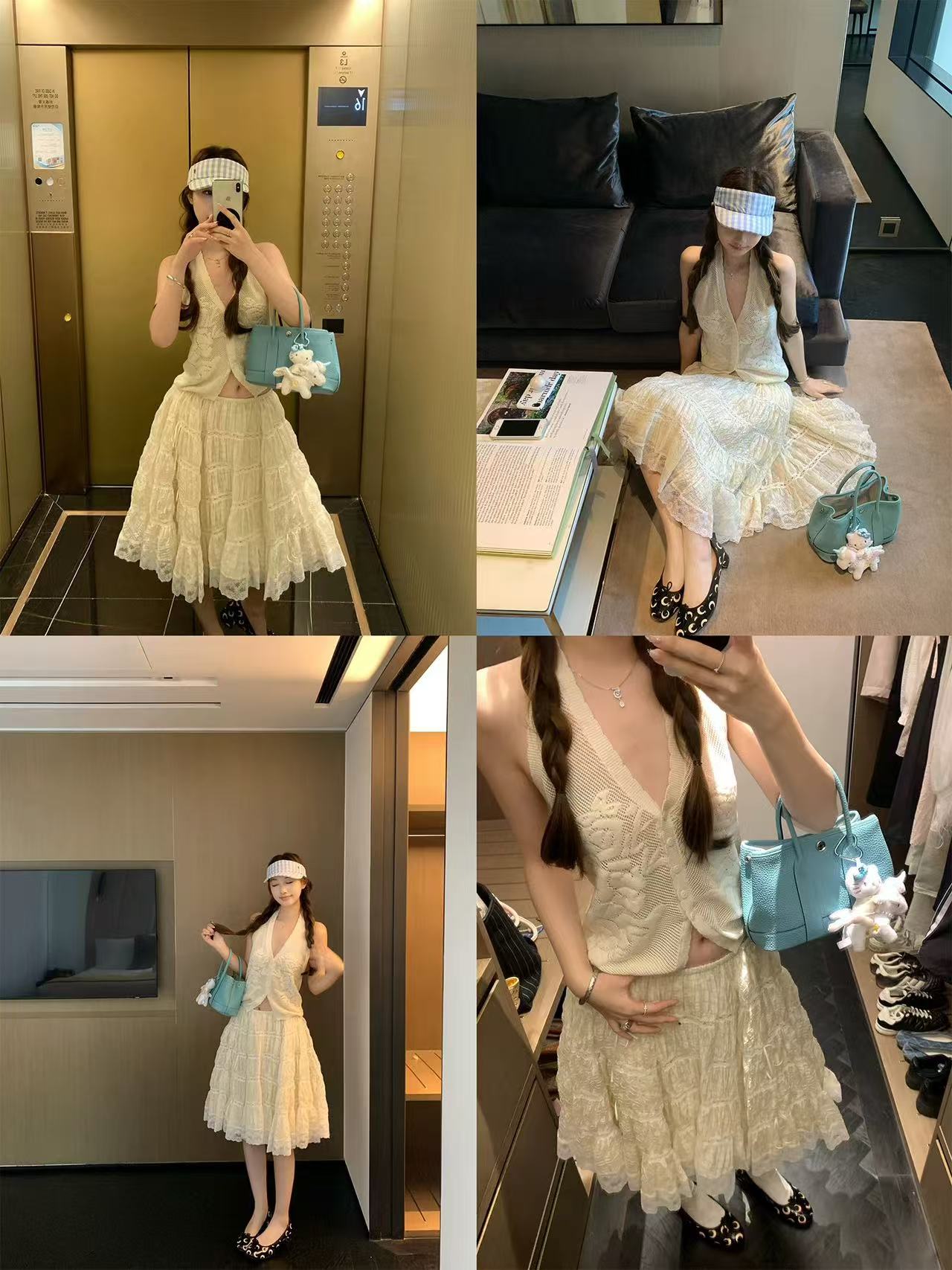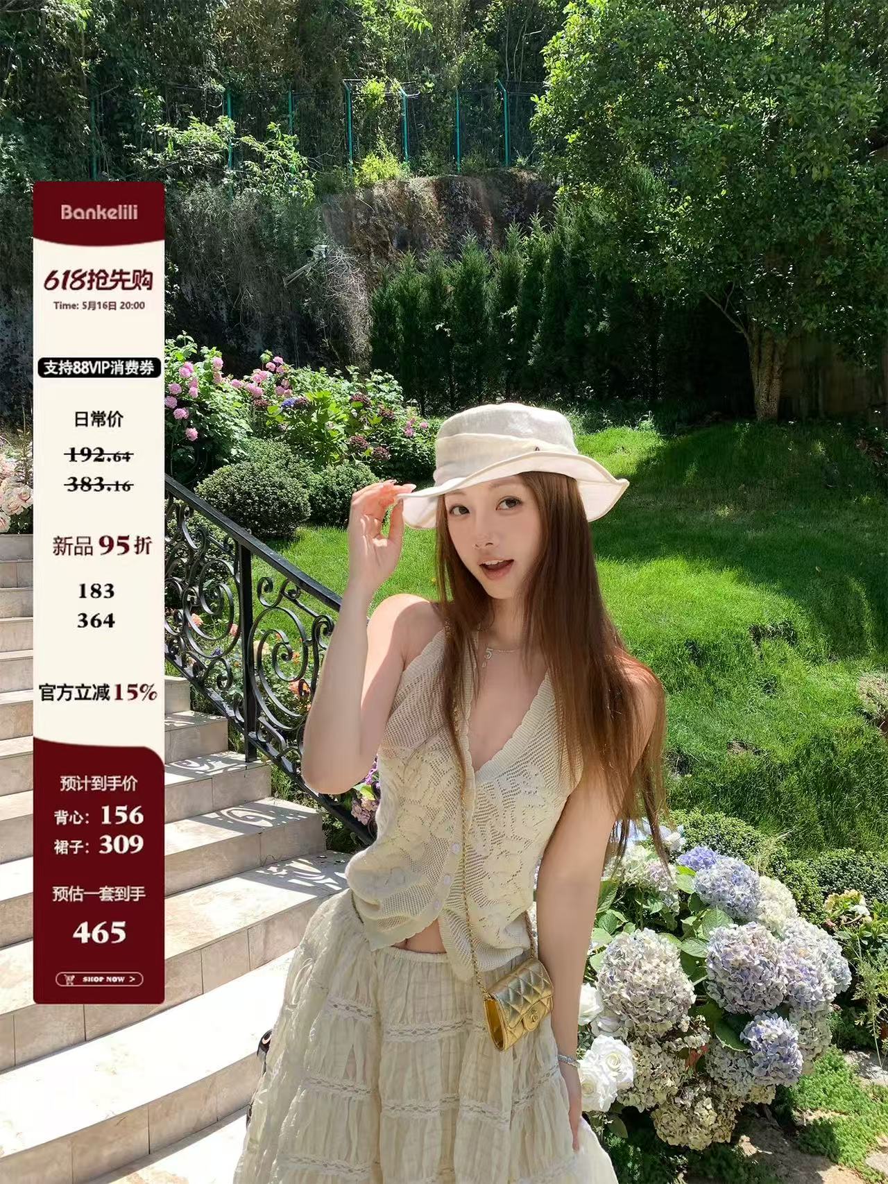 Chestnut Coco Bankelili 'Ghostly Fashionista' jacquard hollow knitted halter neck