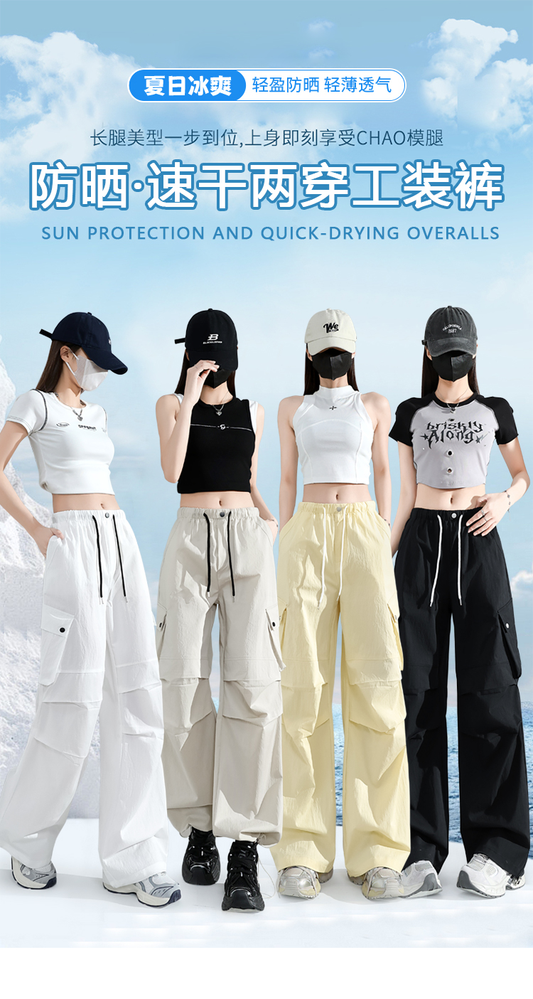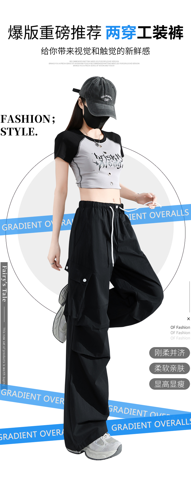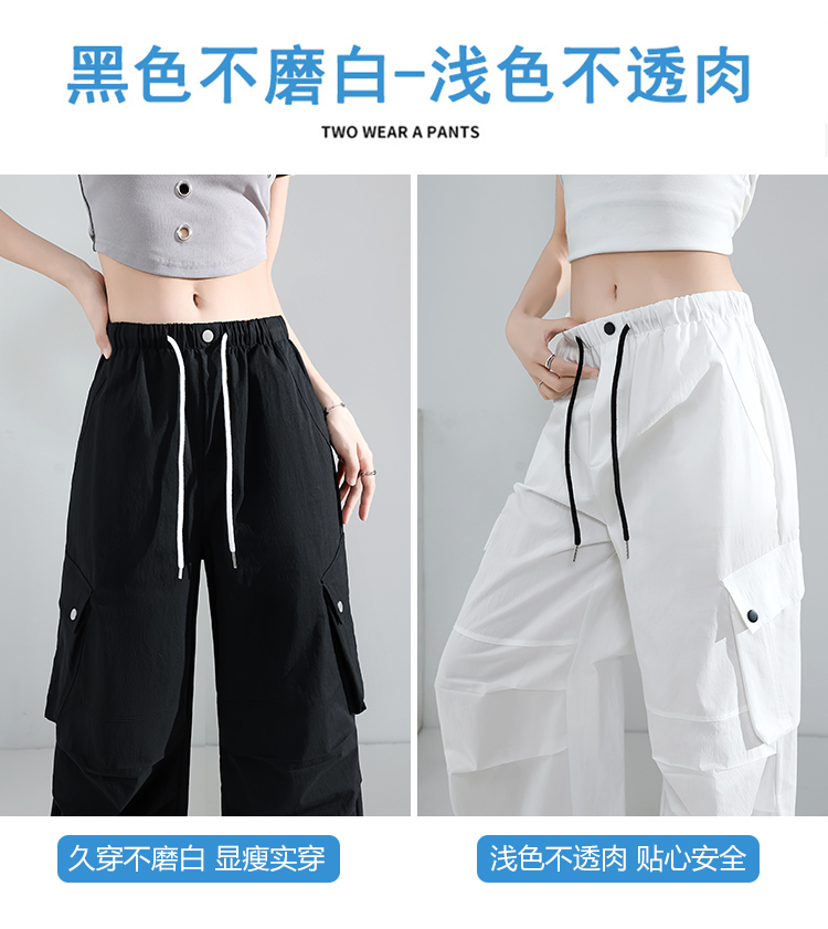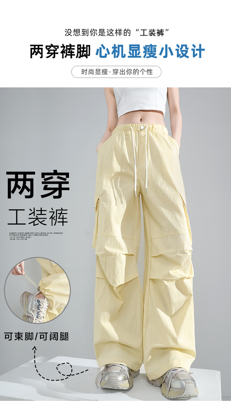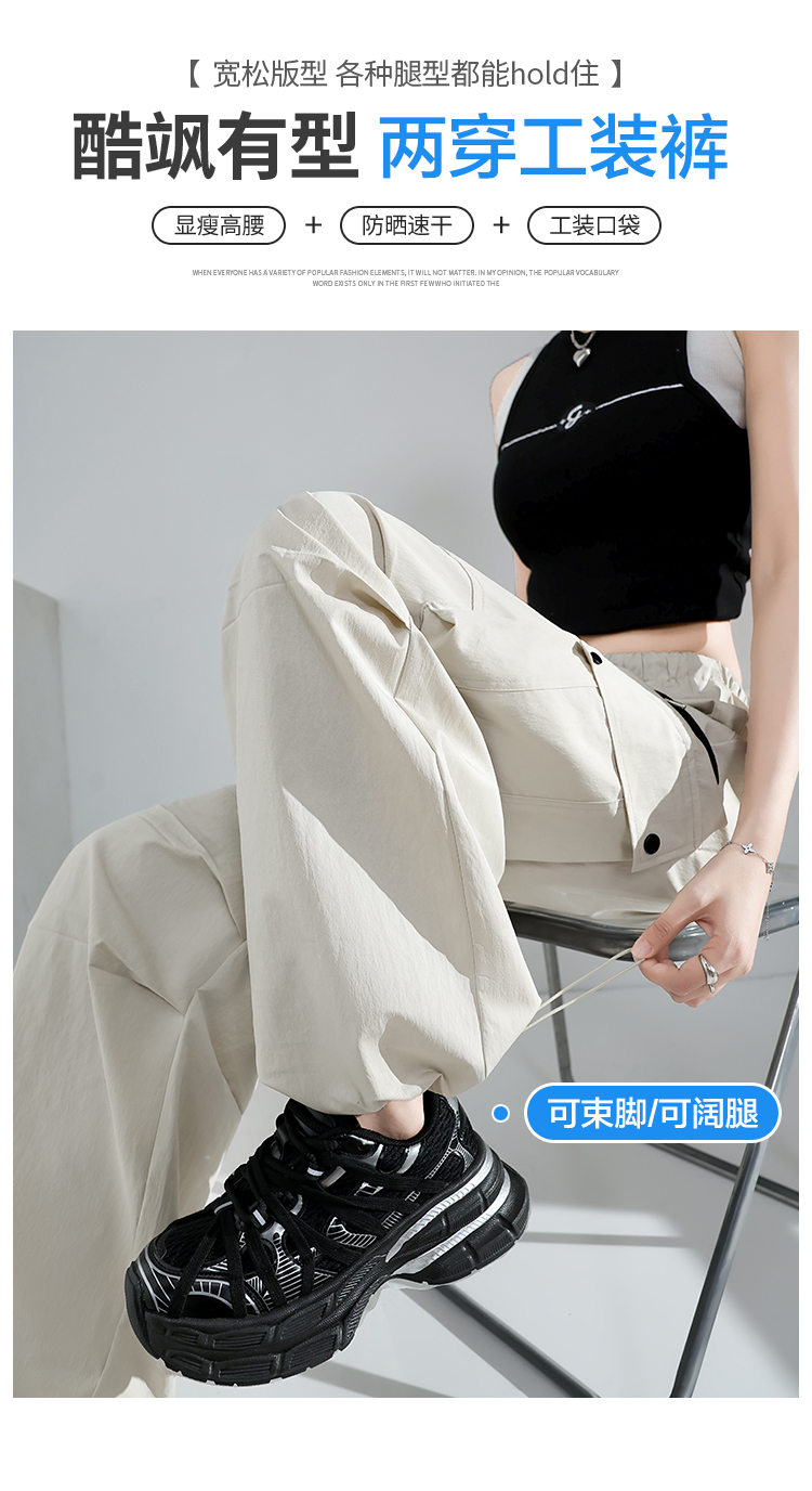 Real shot of spot quick-drying pants overalls for women 2025 summer thin high waist wide leg two-wear harem sports pants