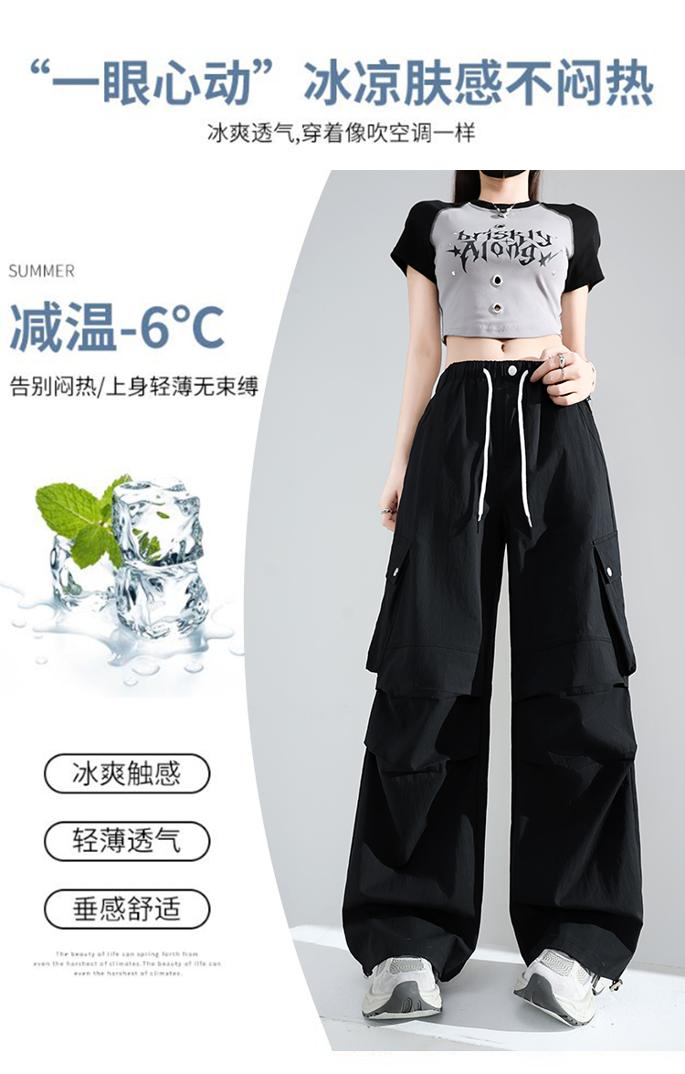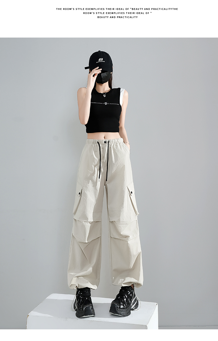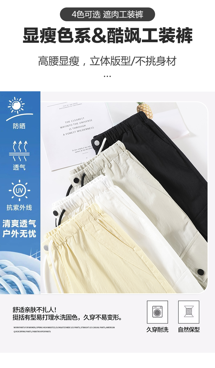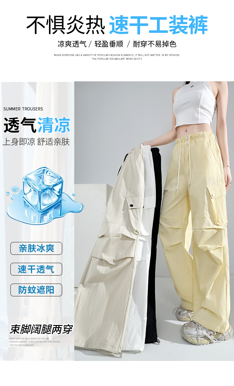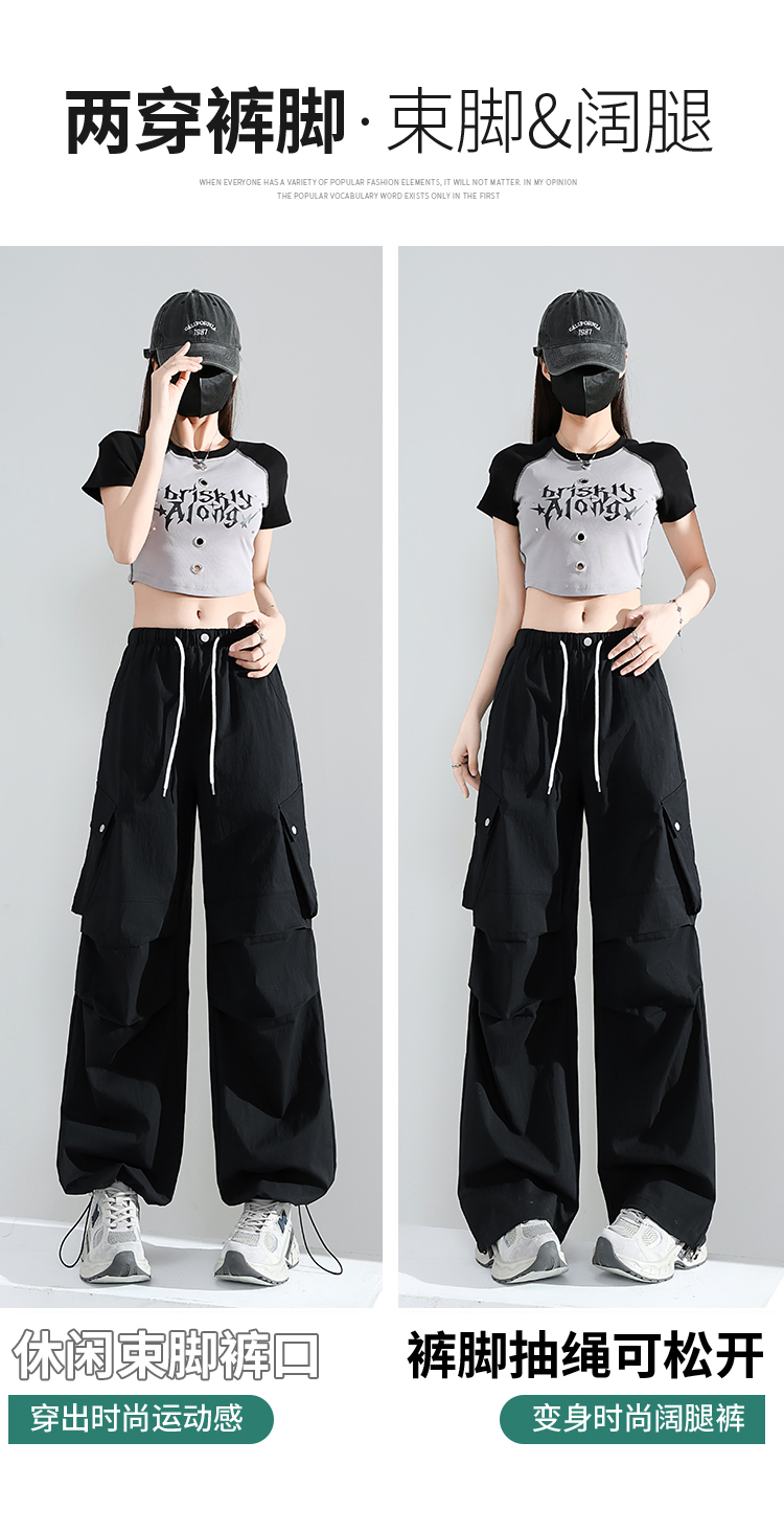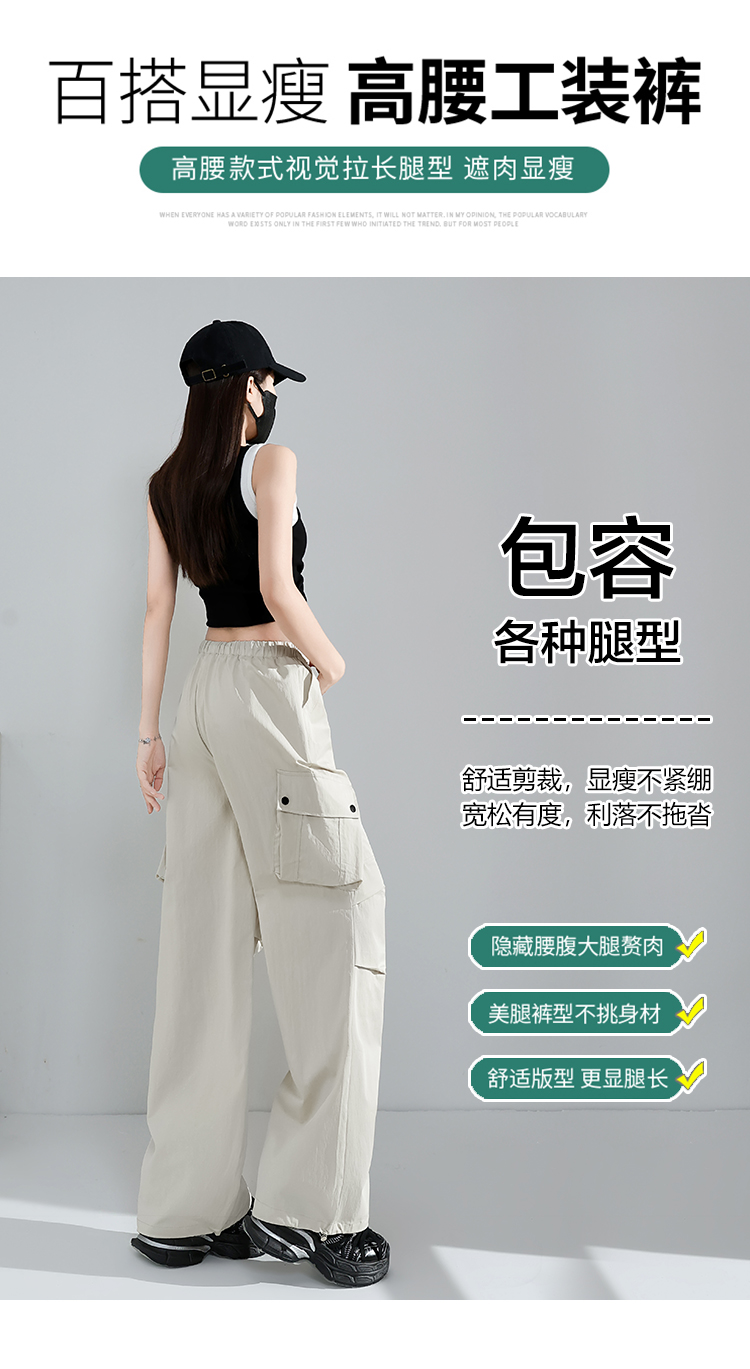 Real shot of spot quick-drying pants overalls for women 2025 summer thin high waist wide leg two-wear harem sports pants