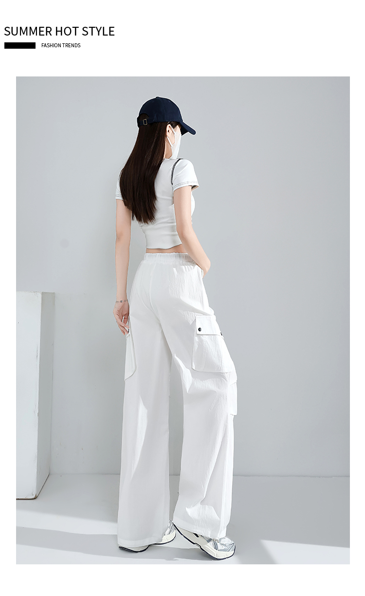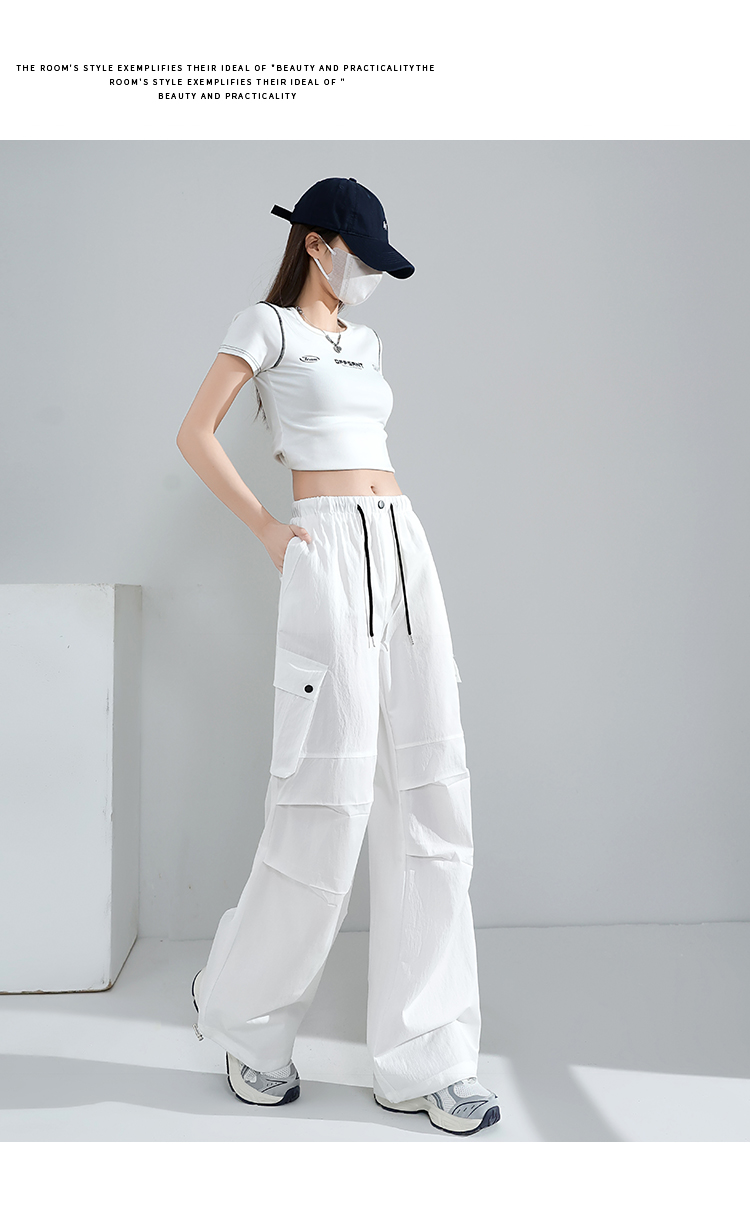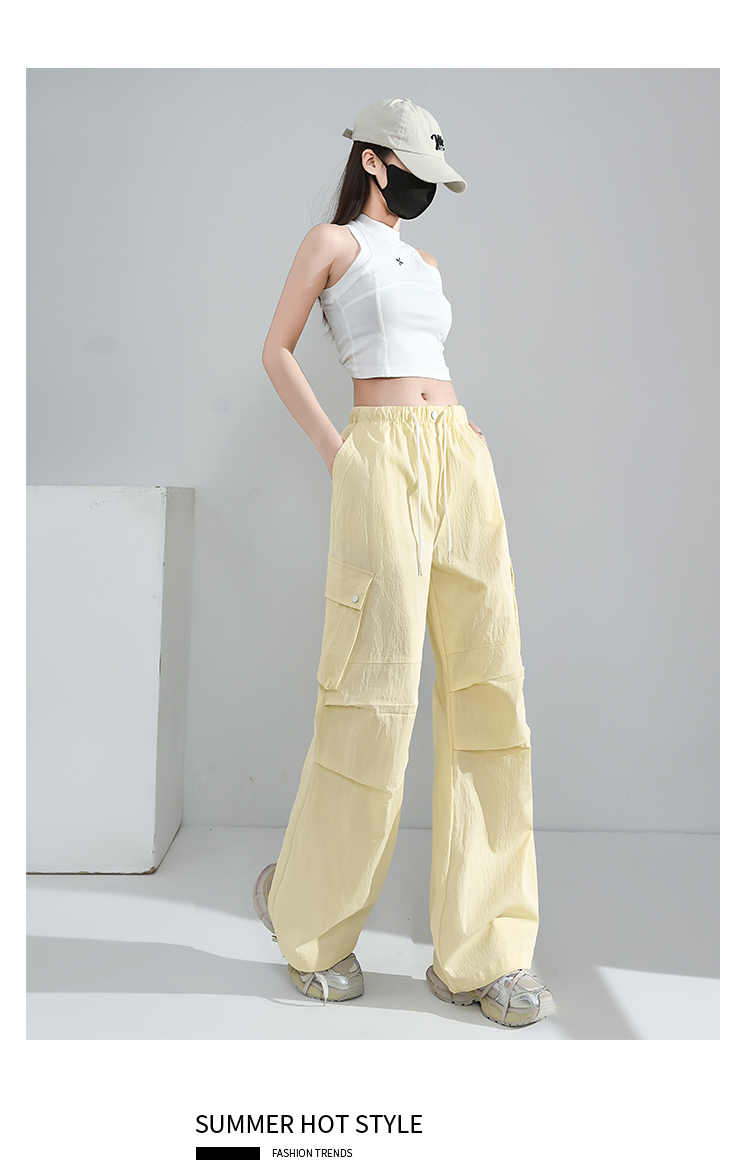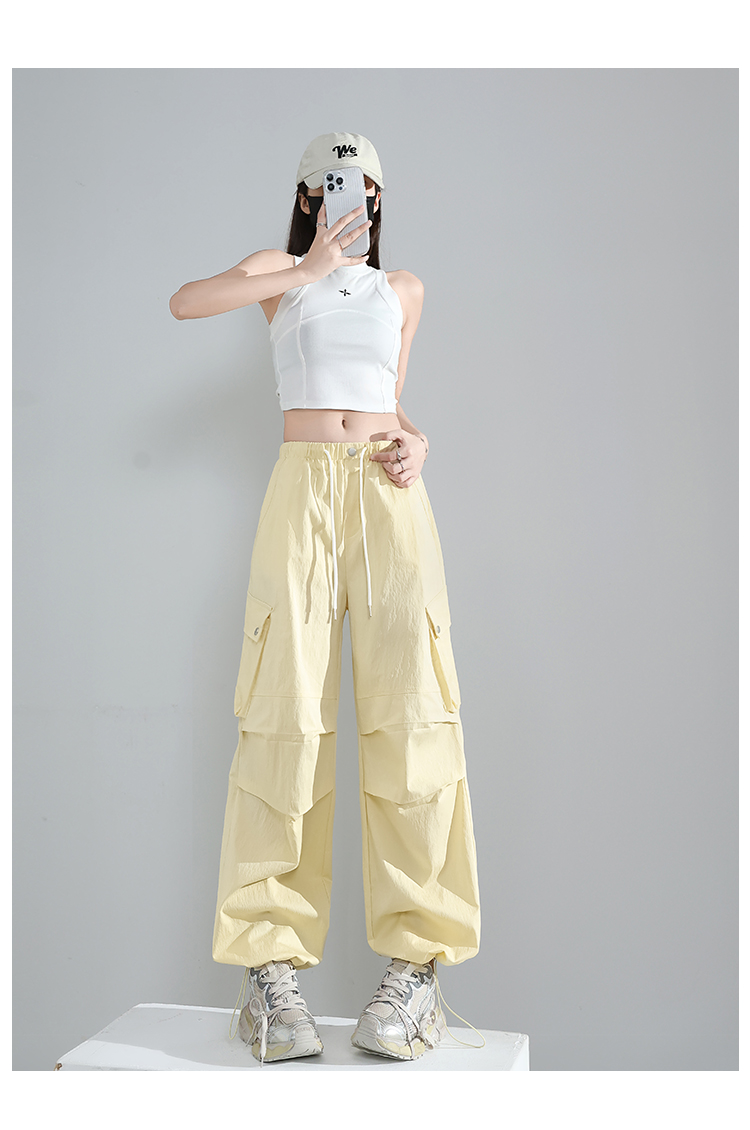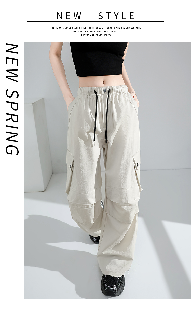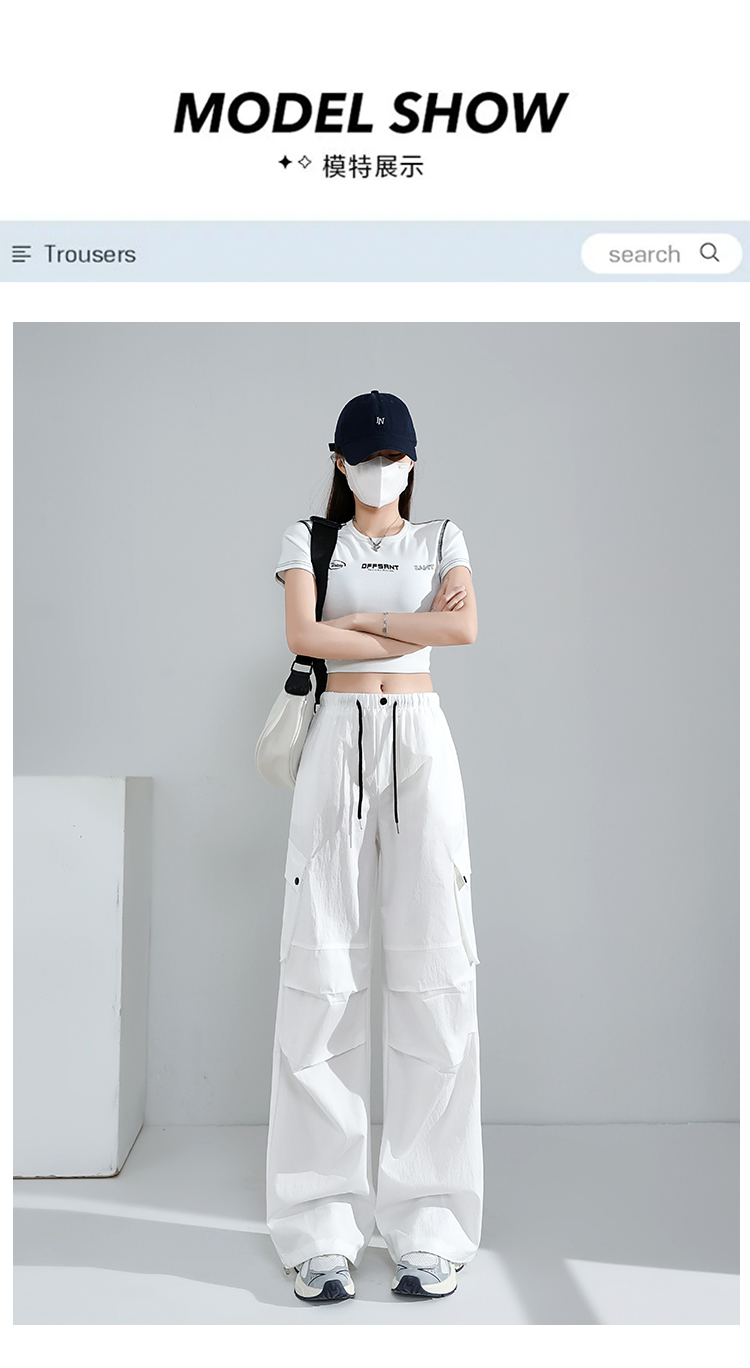Real shot of spot quick-drying pants overalls for women 2025 summer thin high waist wide leg two-wear harem sports pants