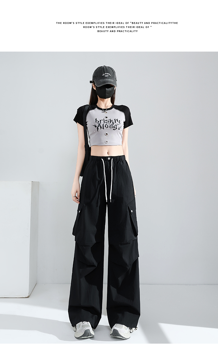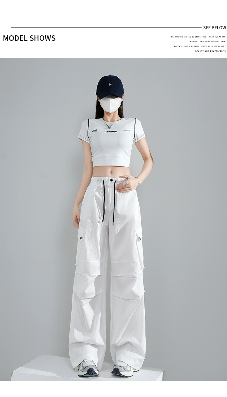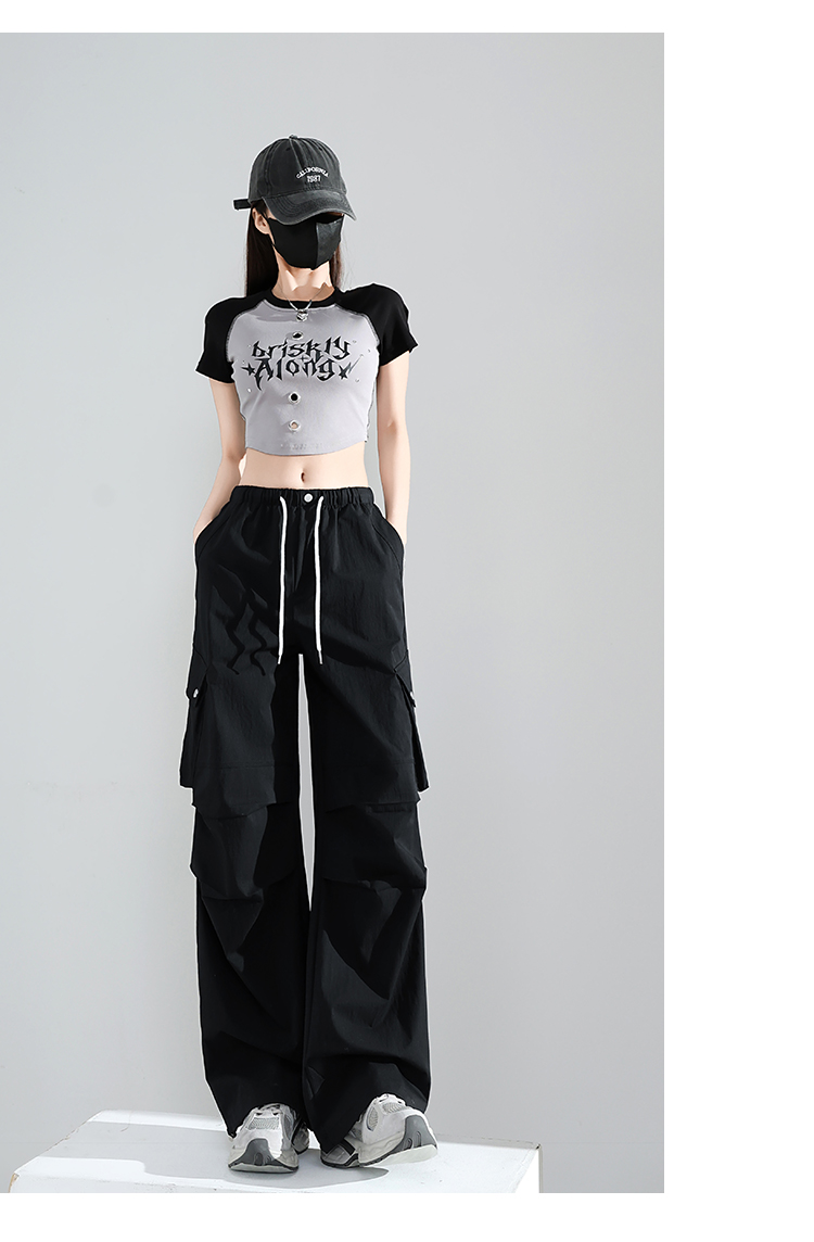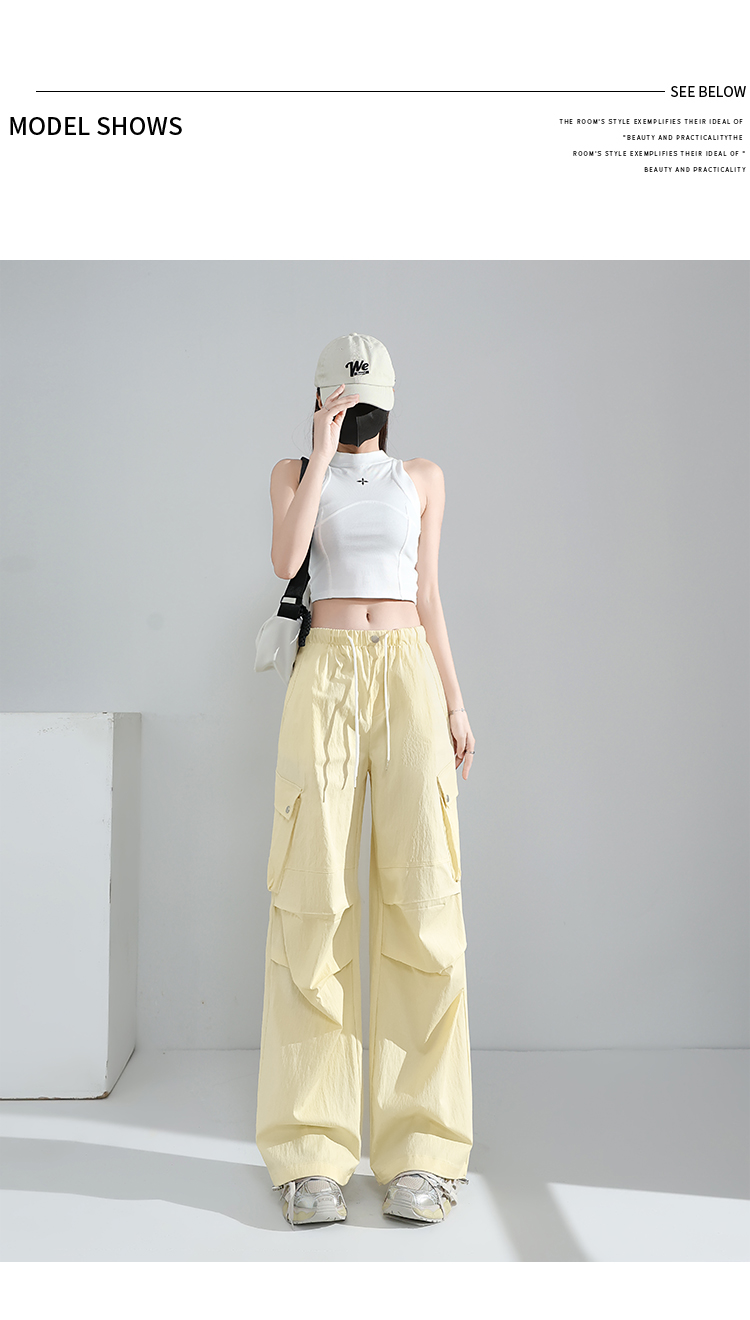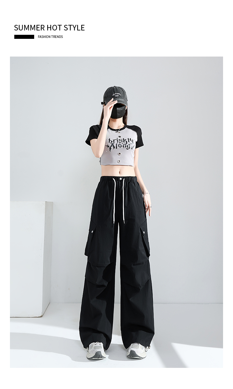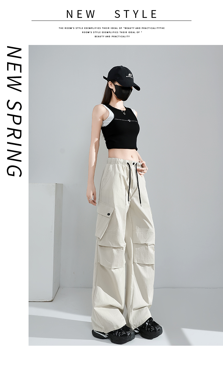 Real shot of spot quick-drying pants overalls for women 2025 summer thin high waist wide leg two-wear harem sports pants