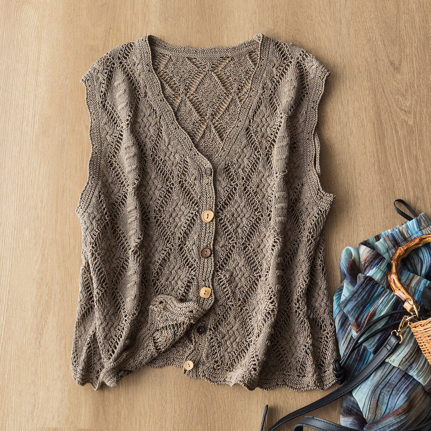 Spot linen and paper yarn summer thin hollow knitted cardigan sleeveless vest top female retro hook flower vest