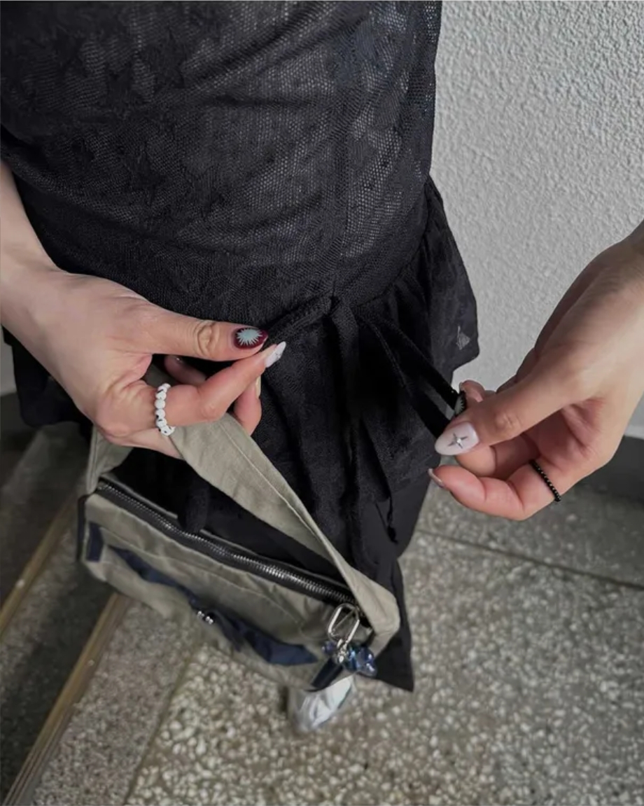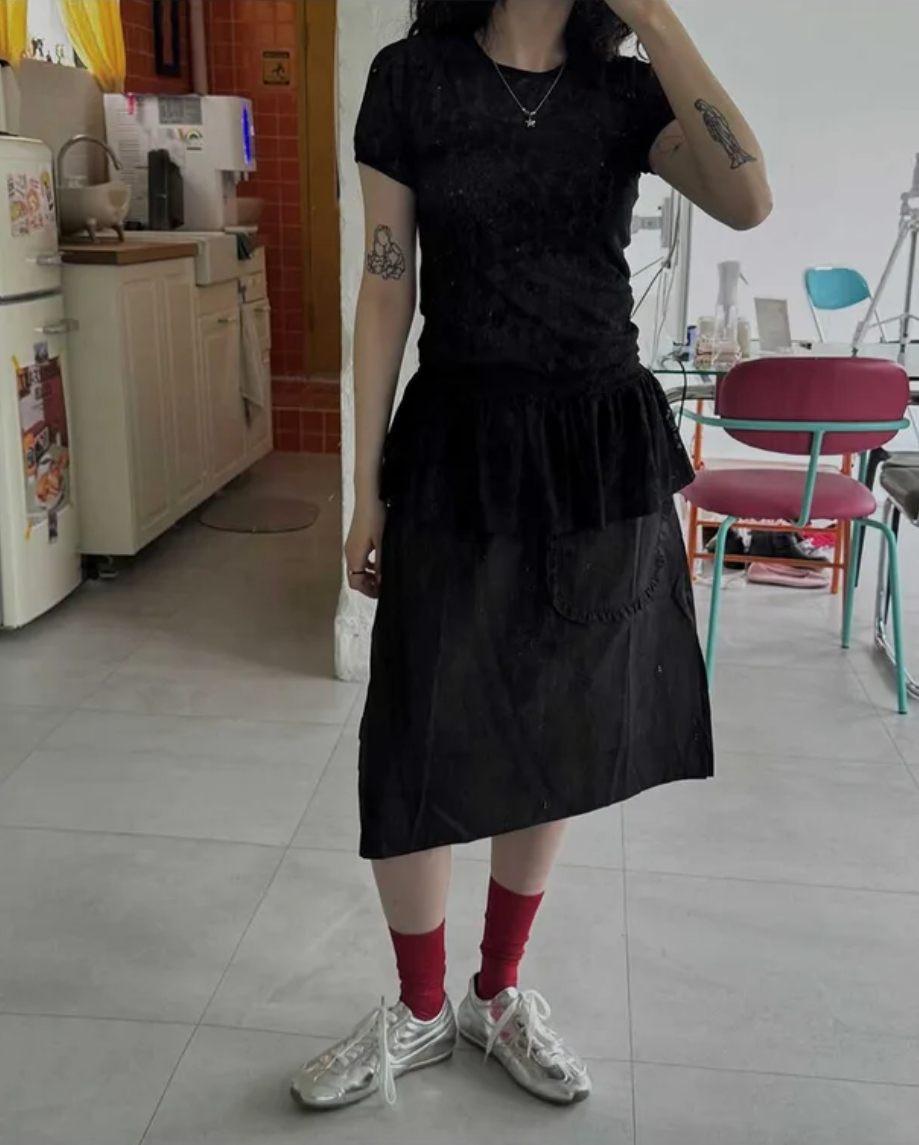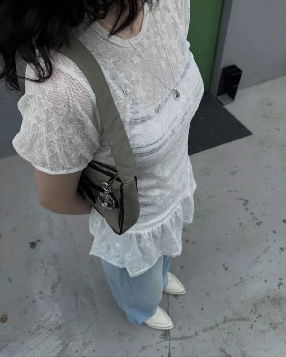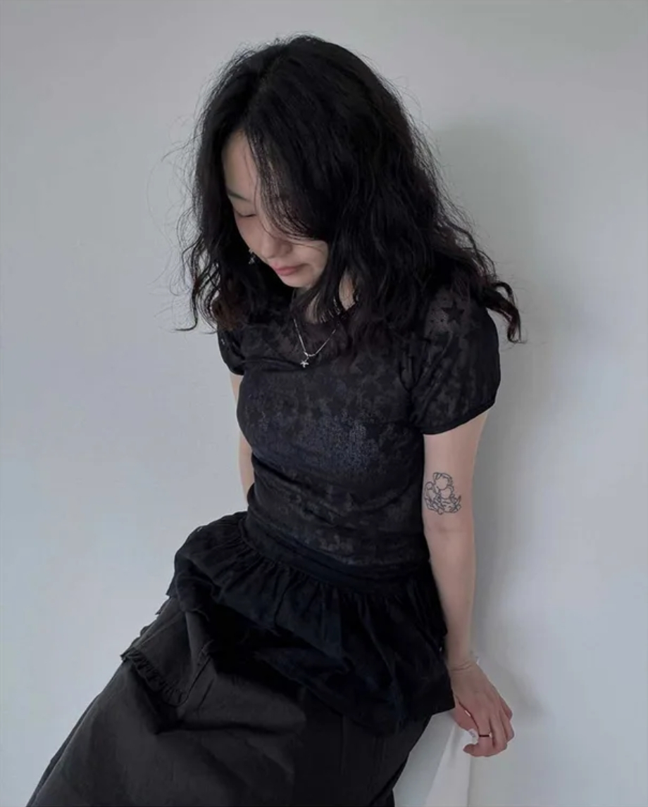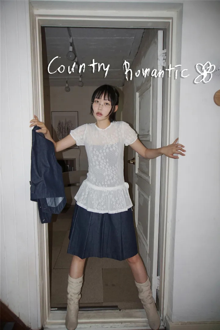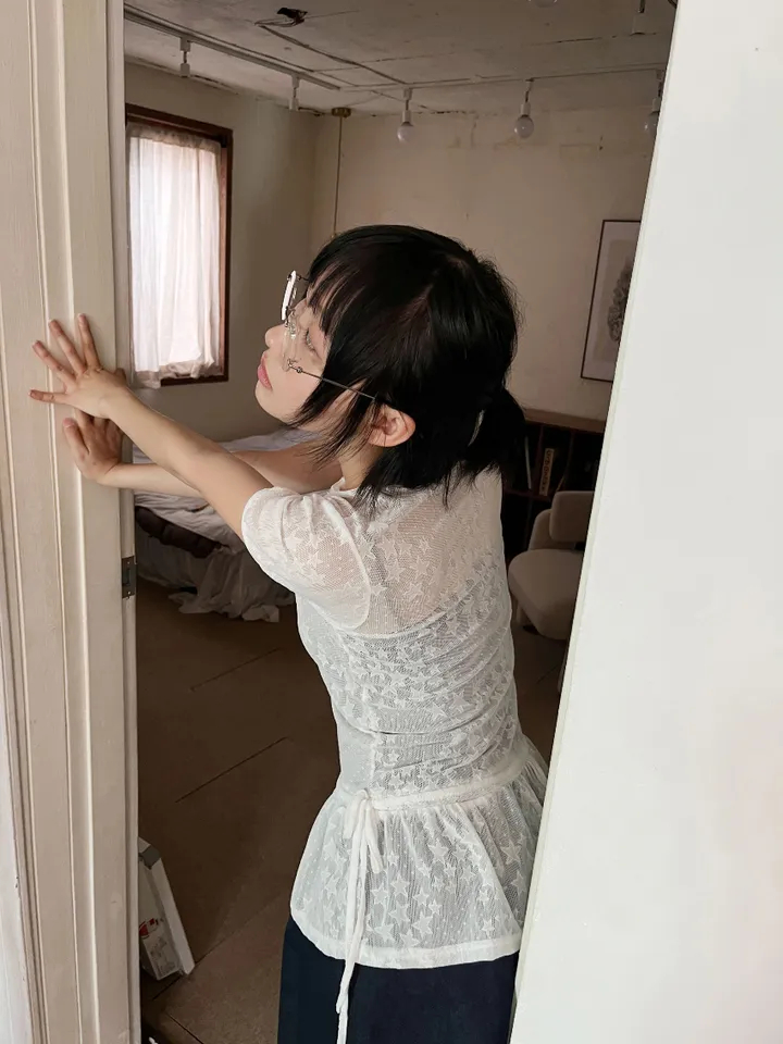 Summer Korean Japanese Y2K cute five-pointed star soft lace hollow short-sleeved drawstring skirt long top