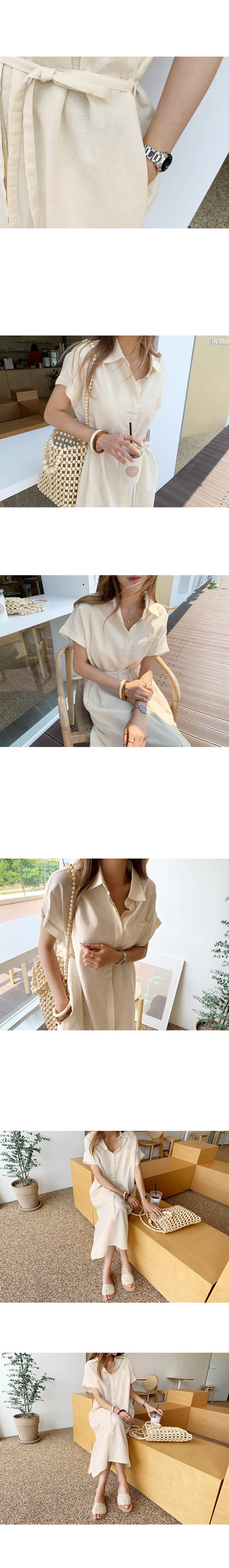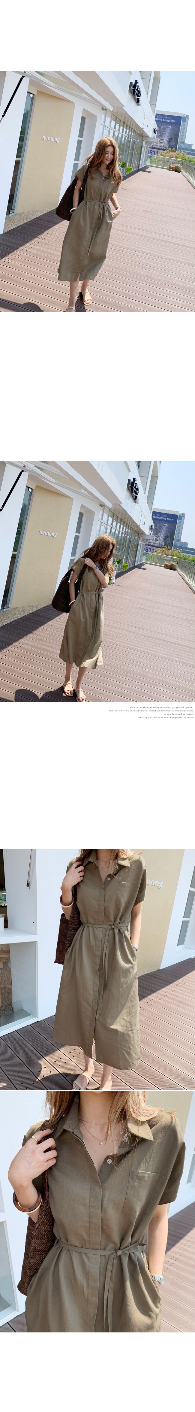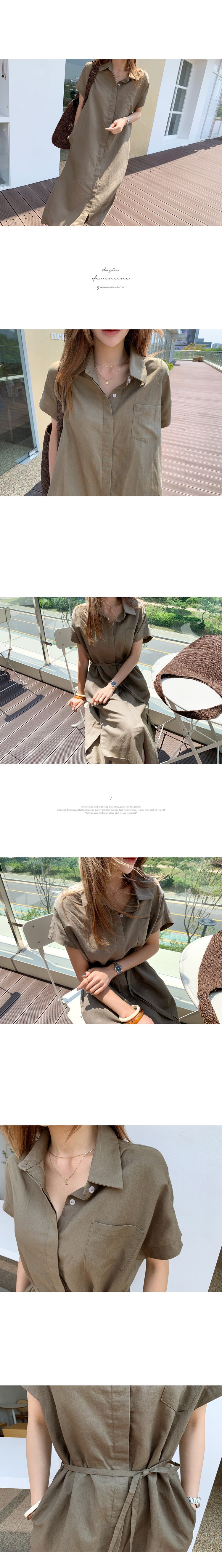 Solid Color Korean Style Loose Single Breasted Lace-Up Belt Linen Long Dress Shirt