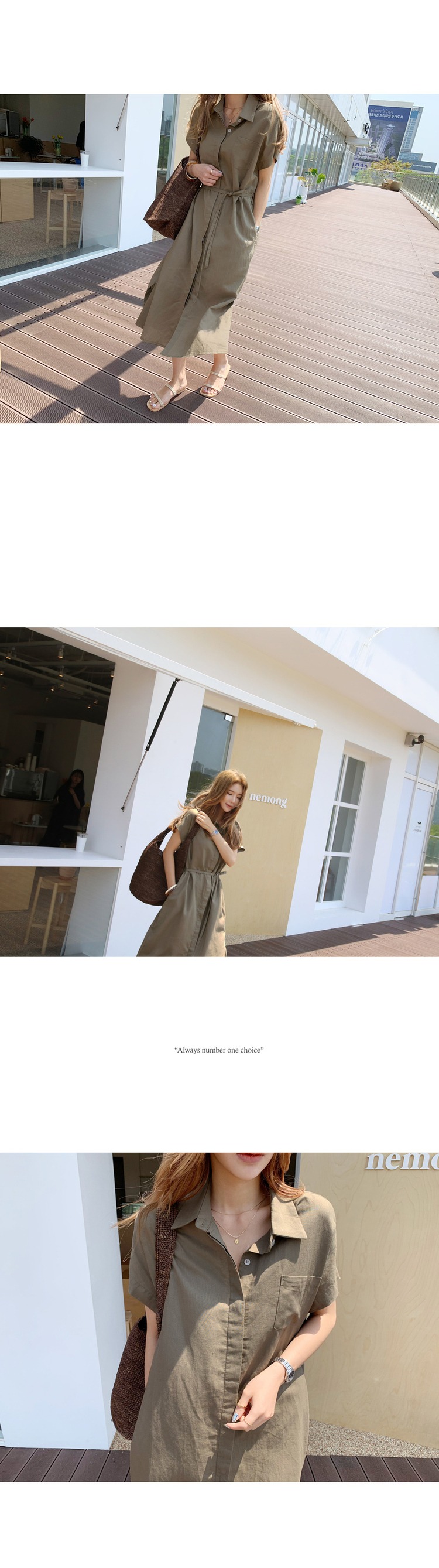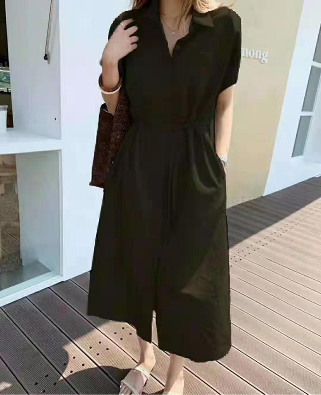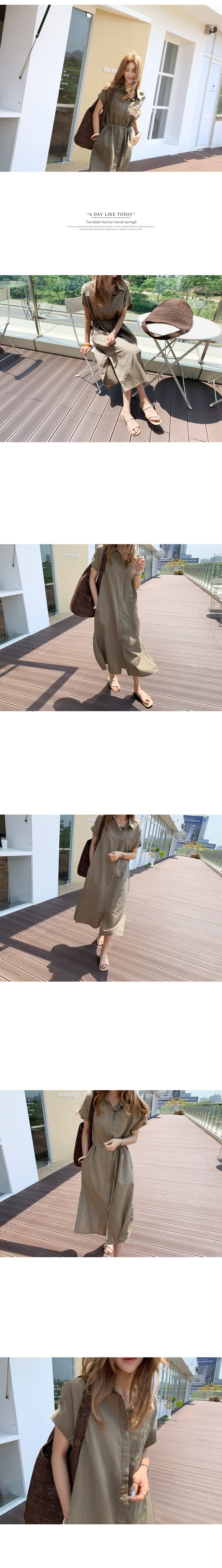 Solid Color Korean Style Loose Single Breasted Lace-Up Belt Linen Long Dress Shirt