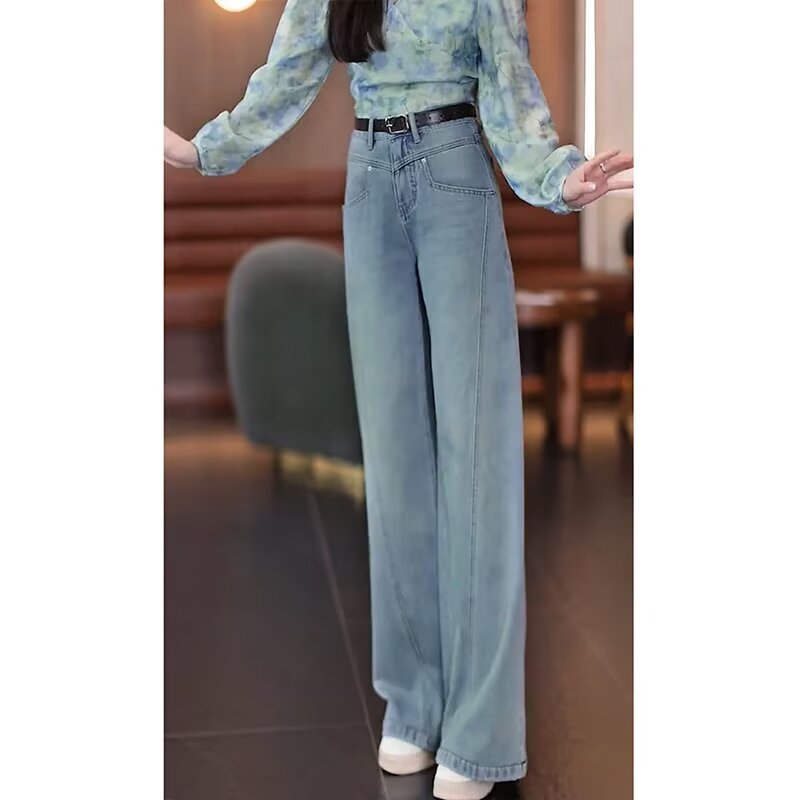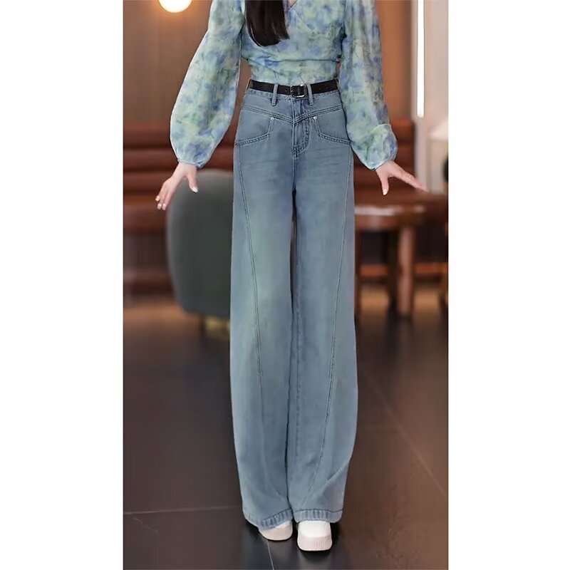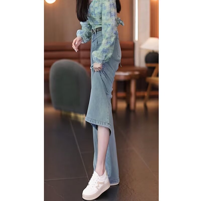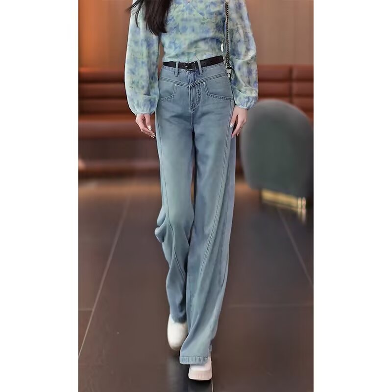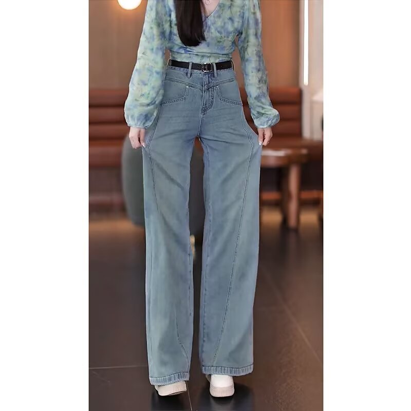 ◆春新款韩版简约高腰显瘦百搭宽松休闲时尚直筒拖地搭女