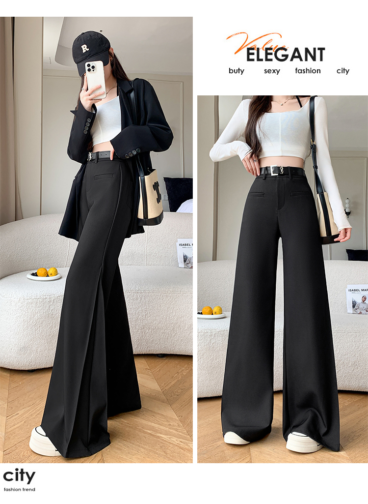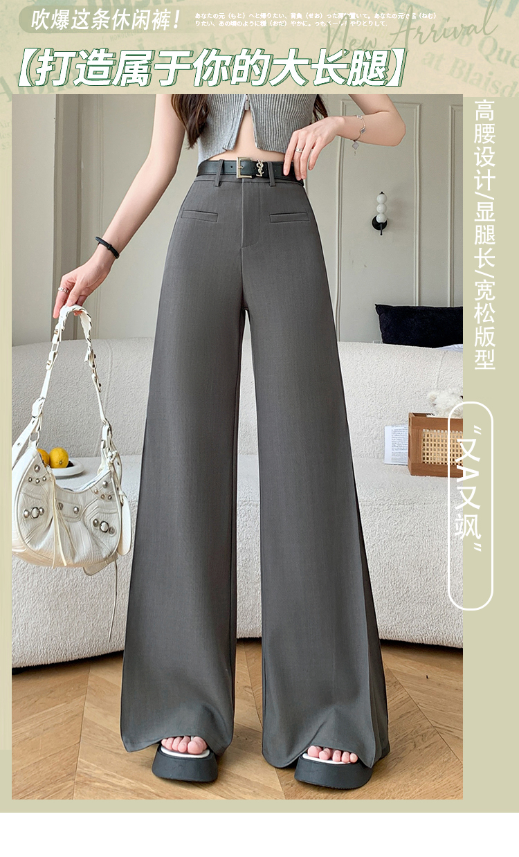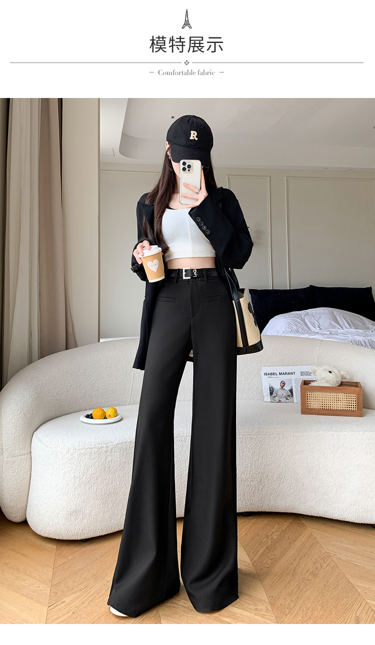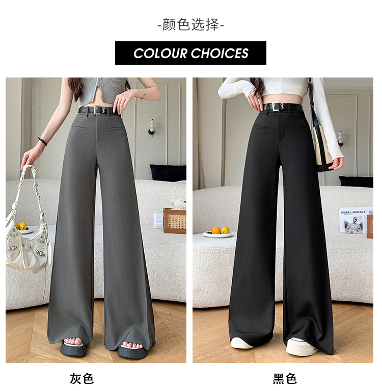 Gray temperament high waist flared suit pants for women 2025 summer new style high-grade elastic slim drape horseshoe pants