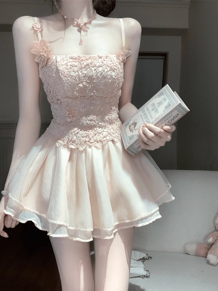 梦幻芭蕾夏季纯欲公主风小众吊带连衣裙法式甜美连衣裙女温柔气