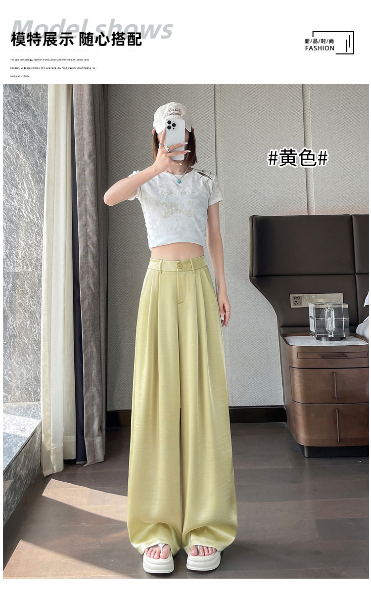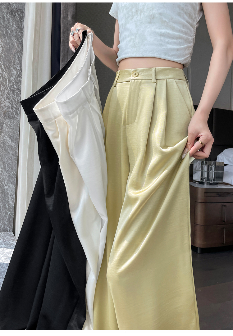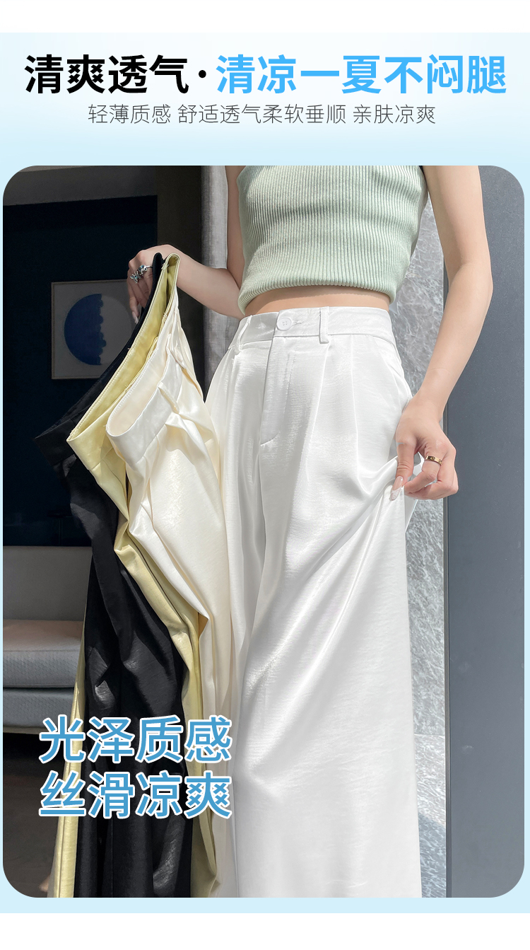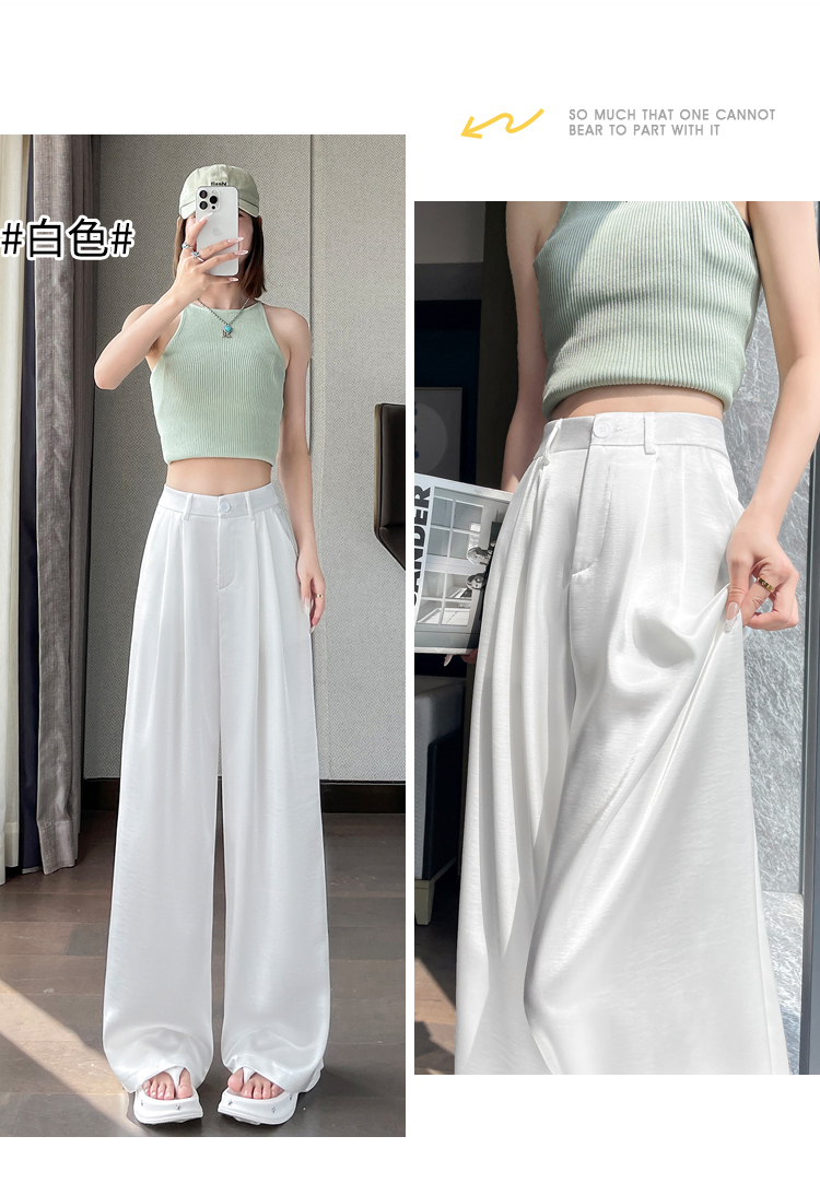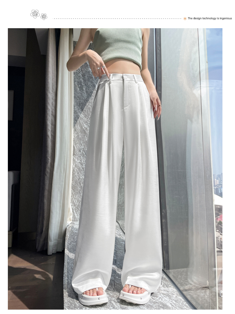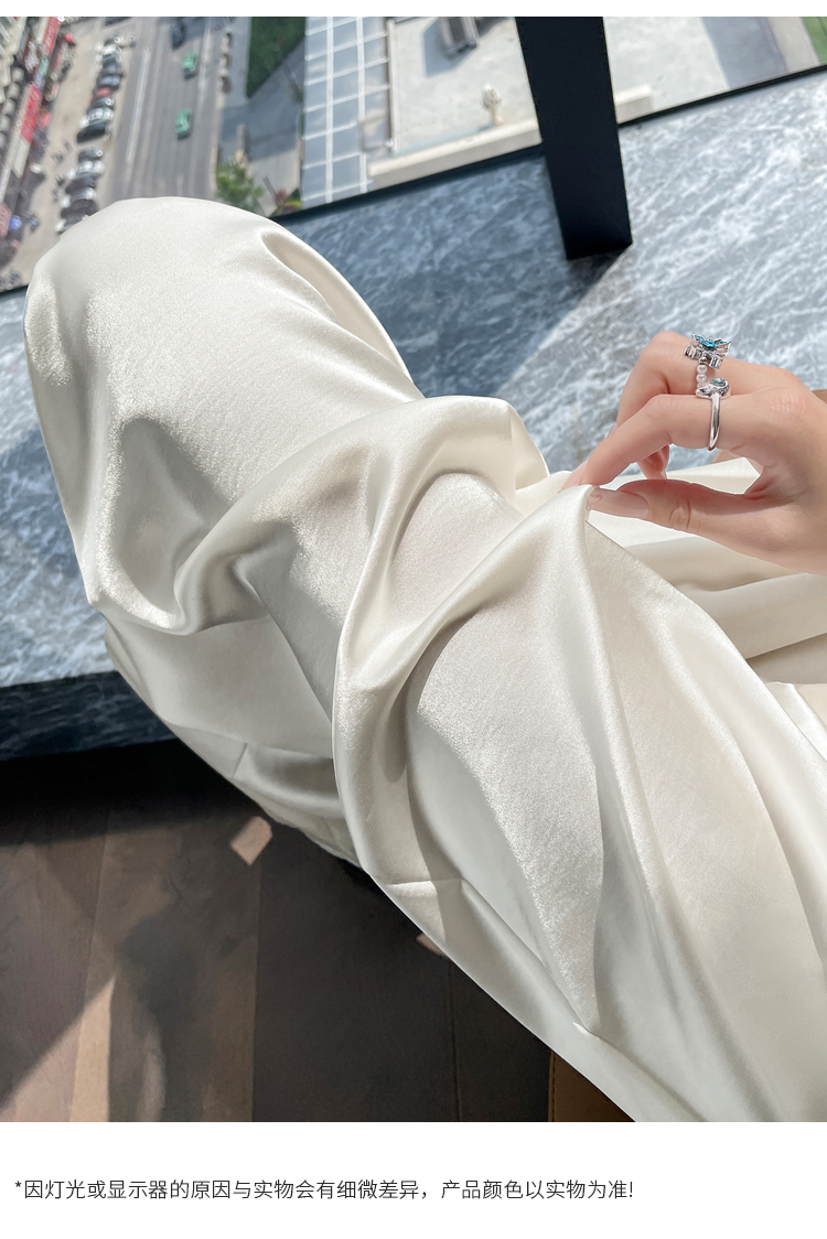 Real shot Ice silk acetate satin suit wide-leg pants women 2025 summer high waist slim casual straight mopping pants