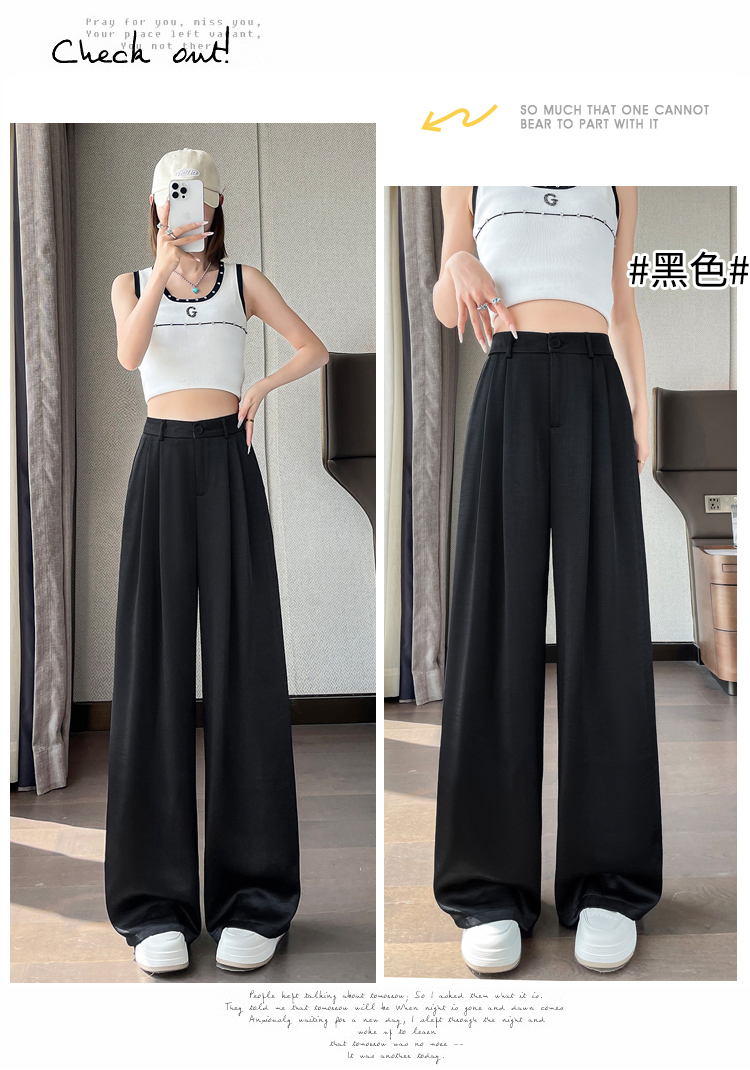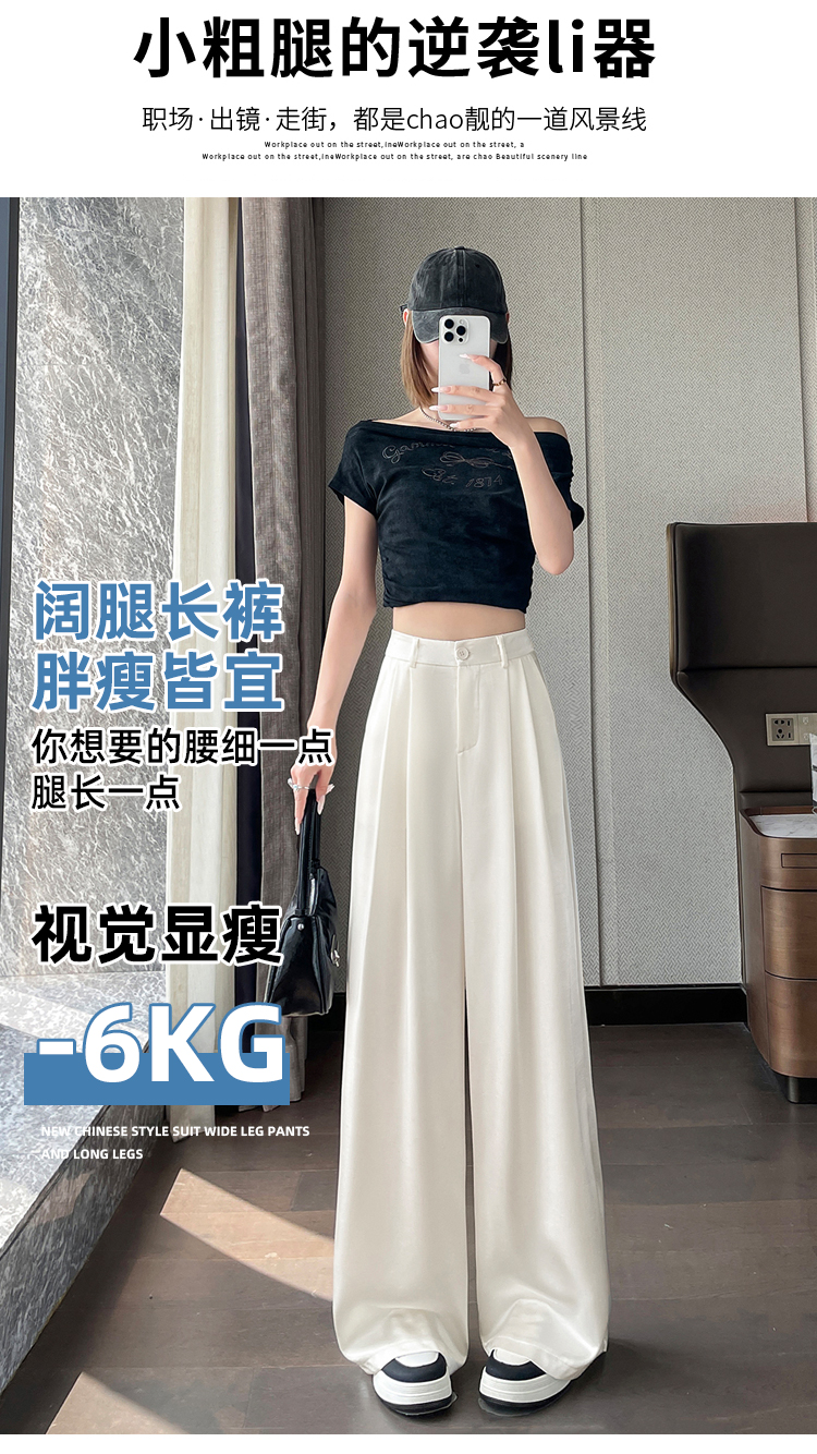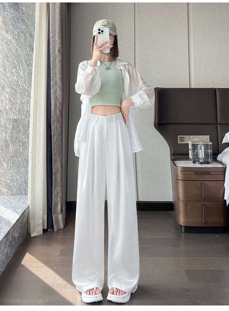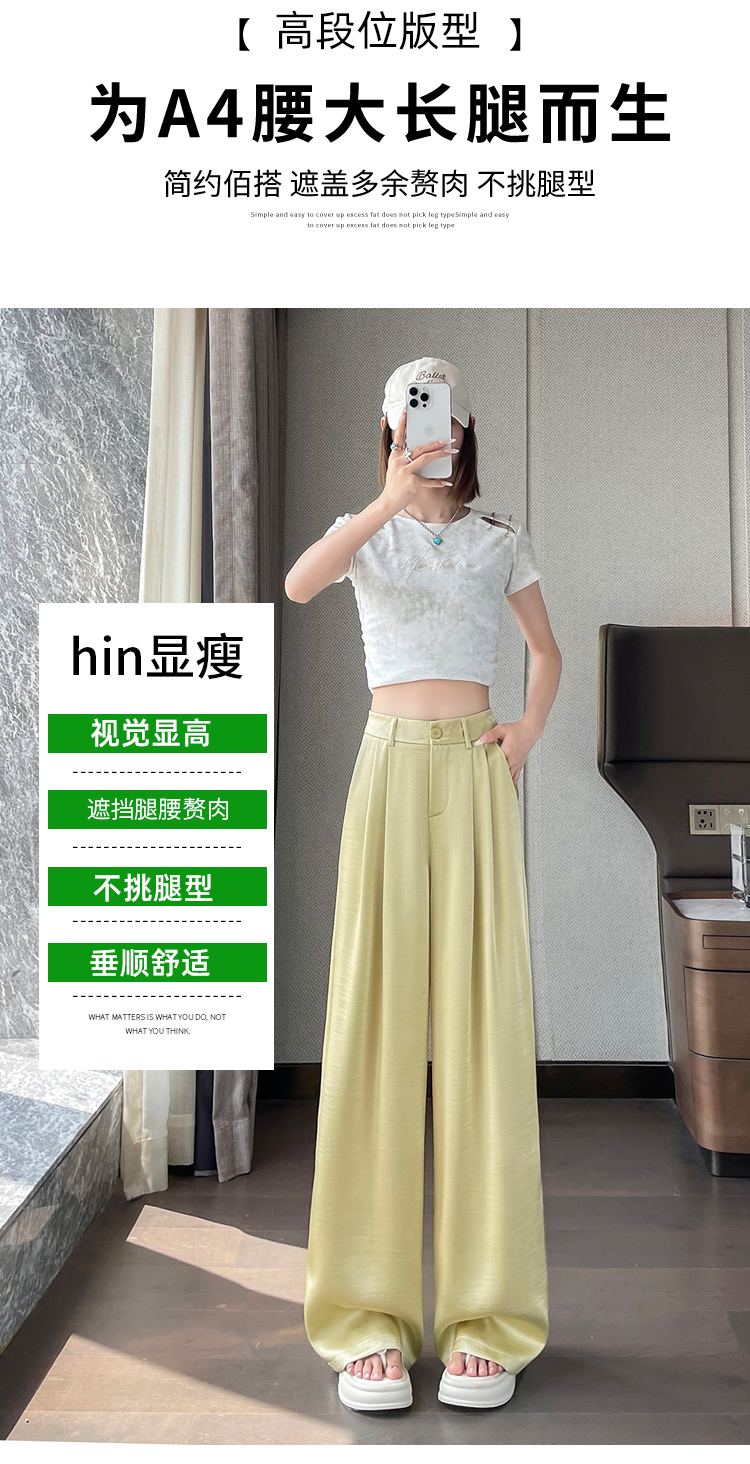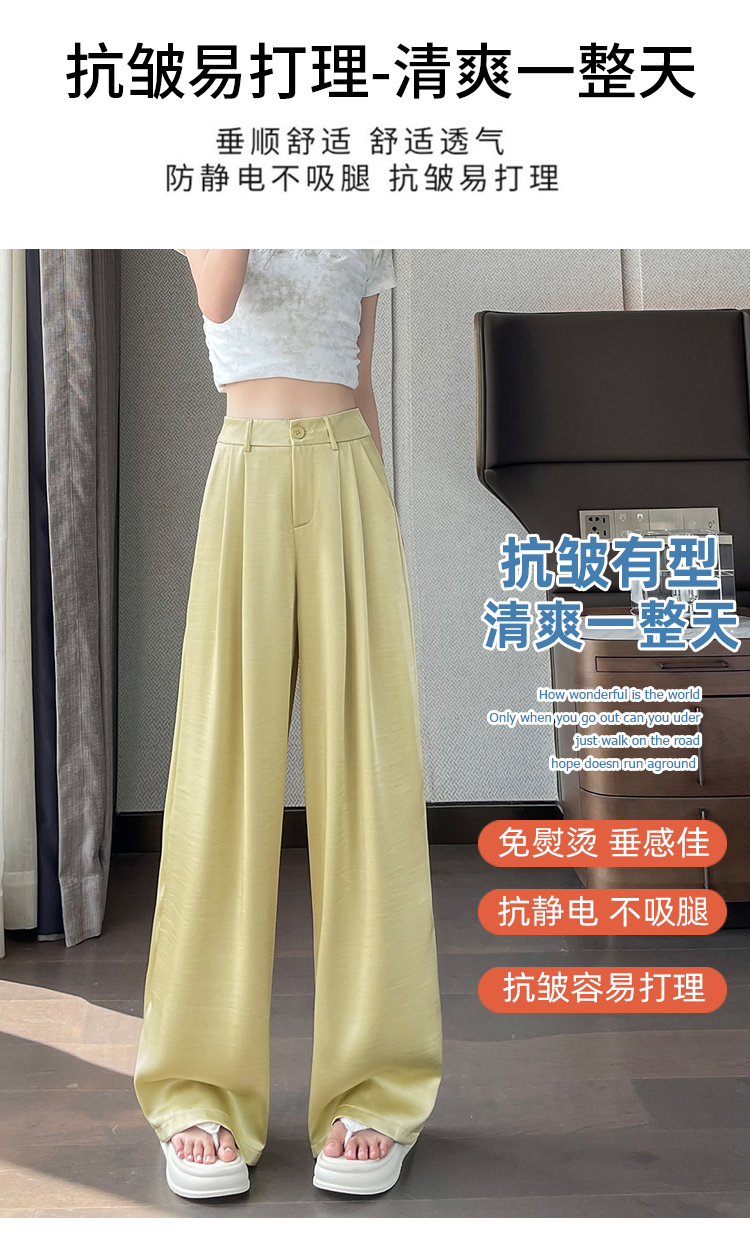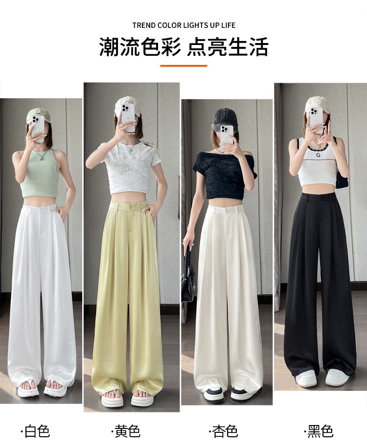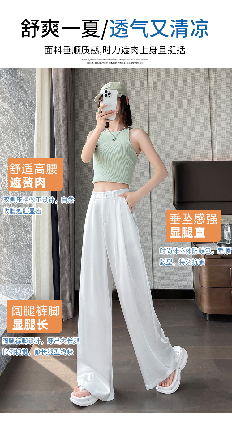 Real shot Ice silk acetate satin suit wide-leg pants women 2025 summer high waist slim casual straight mopping pants