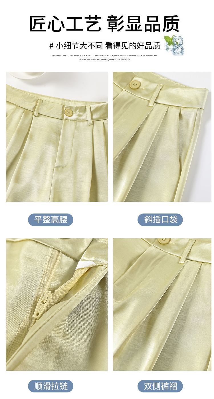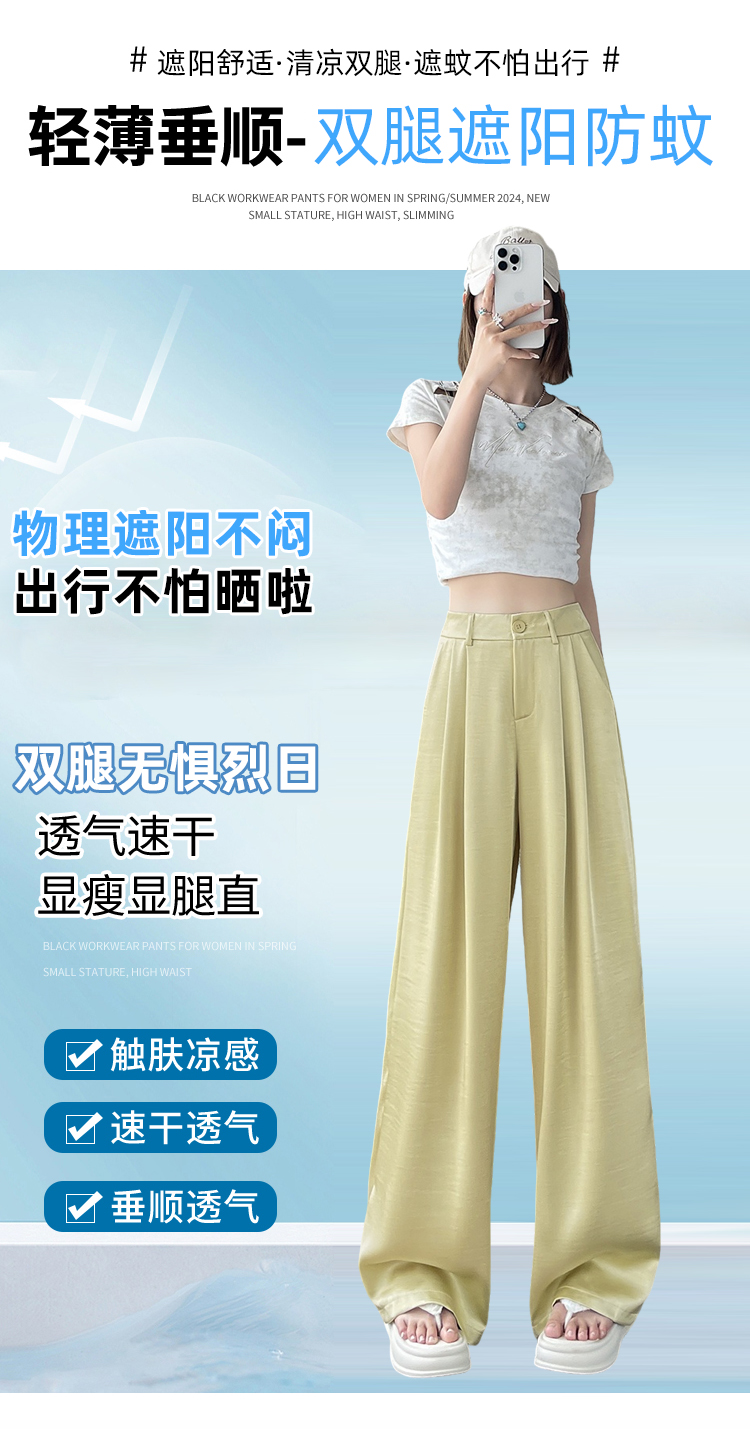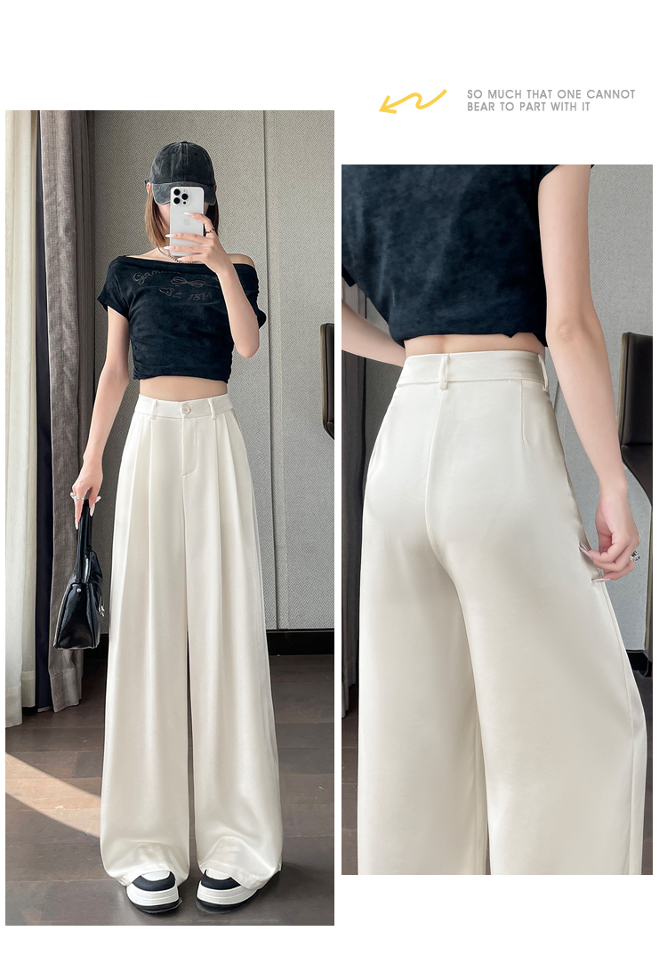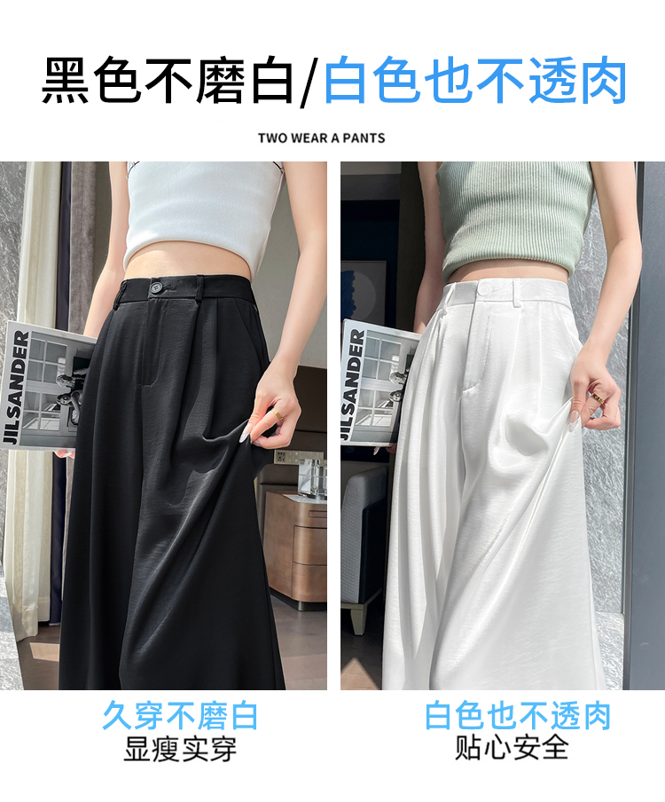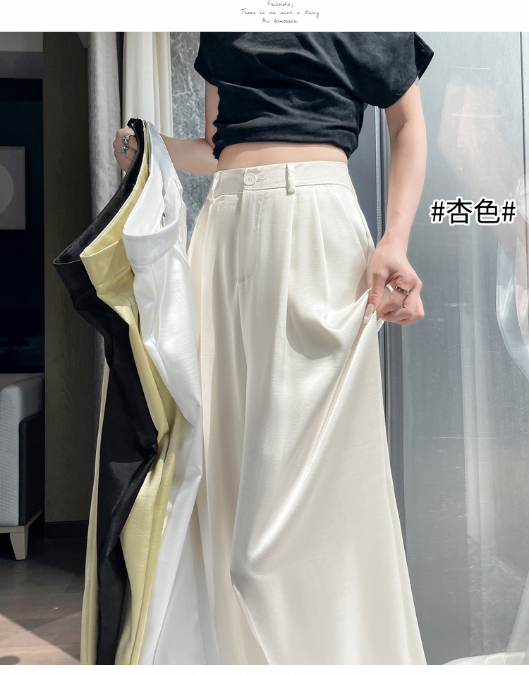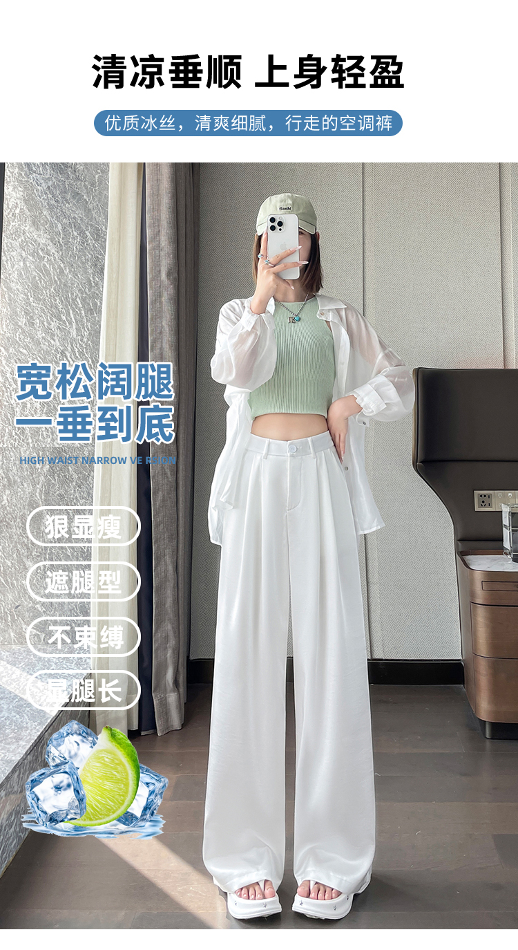 Real shot Ice silk acetate satin suit wide-leg pants women 2025 summer high waist slim casual straight mopping pants
