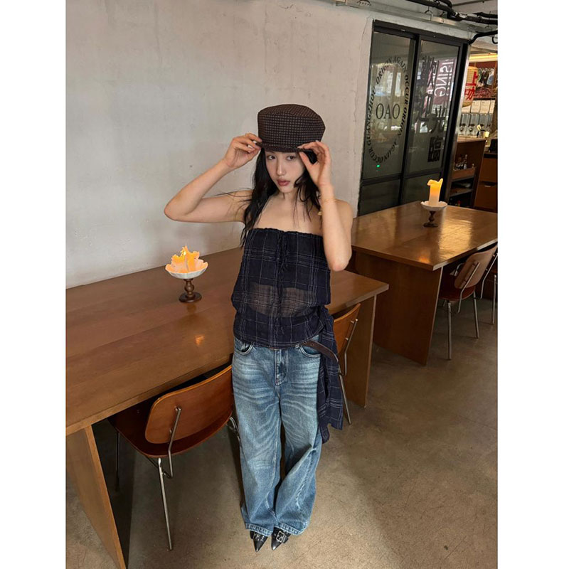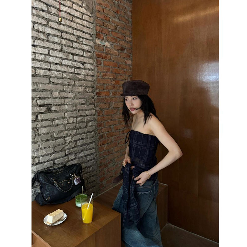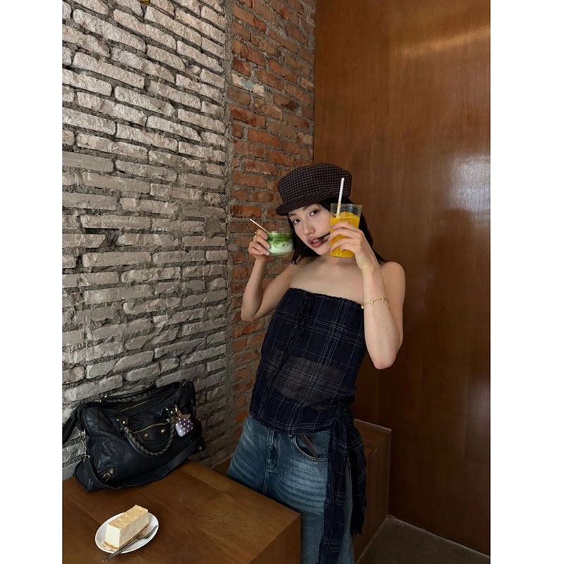 原版品质甜辣系带格纹抹胸夏季新款性感复古修身百搭背心