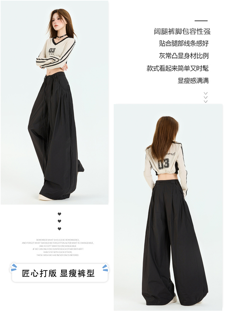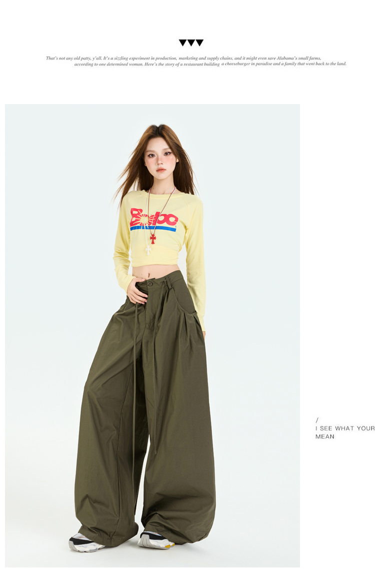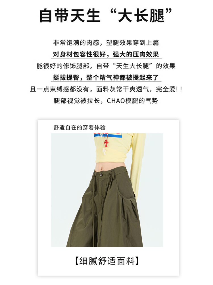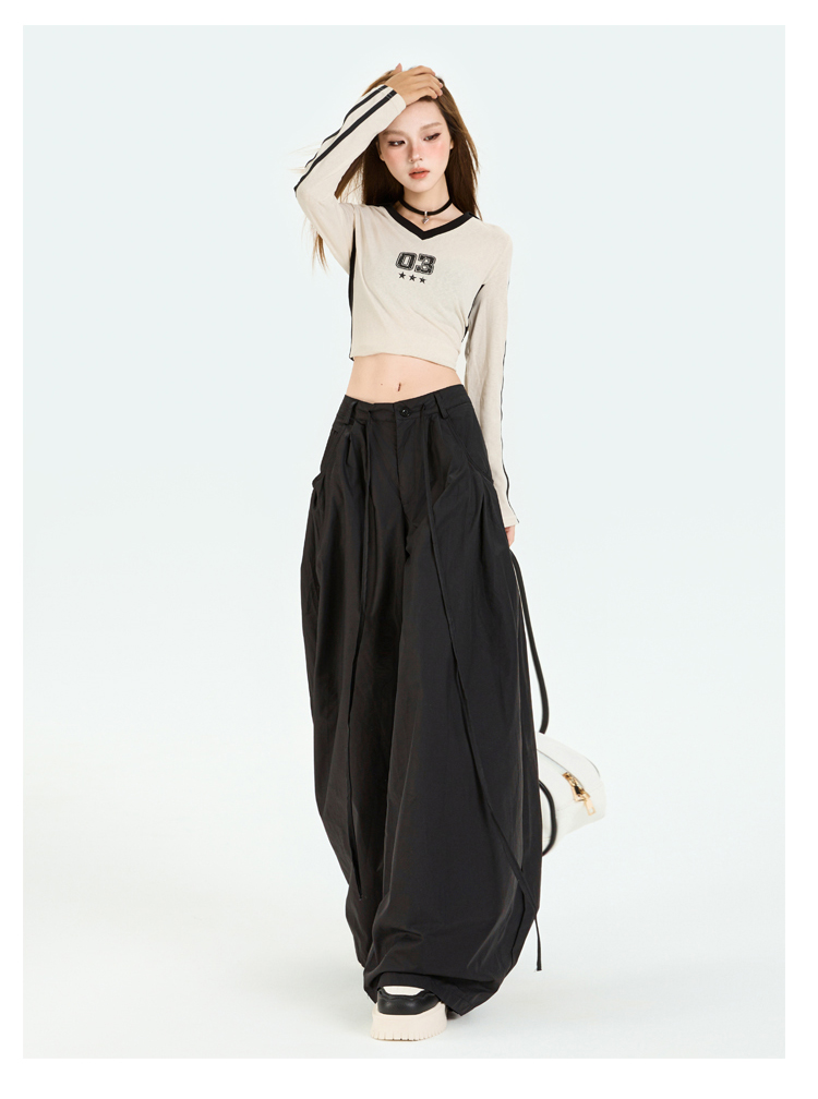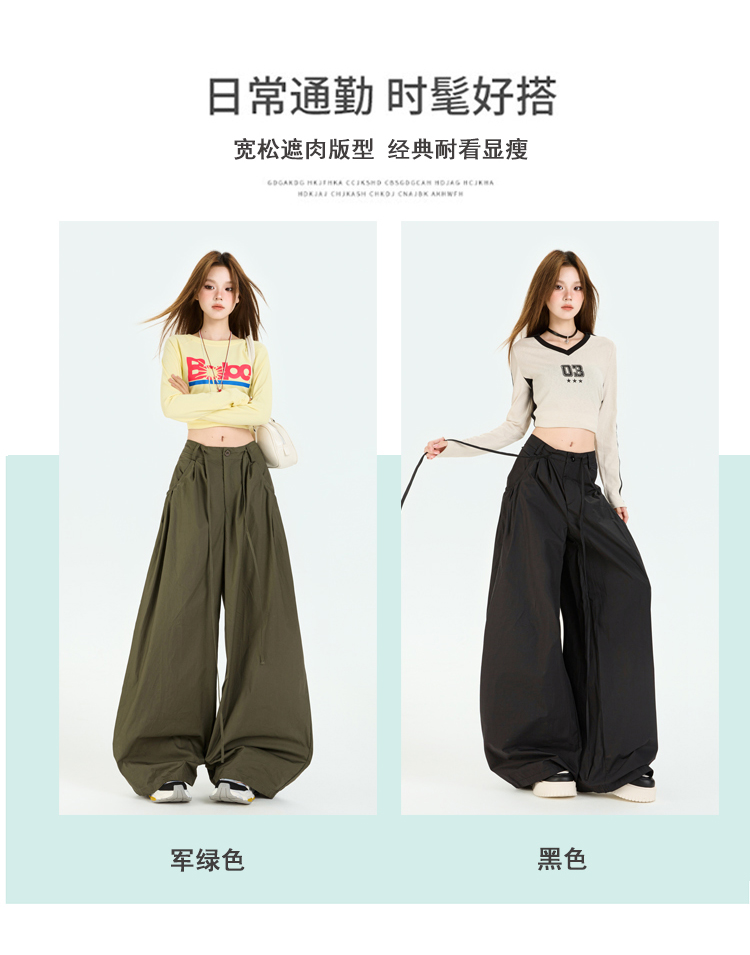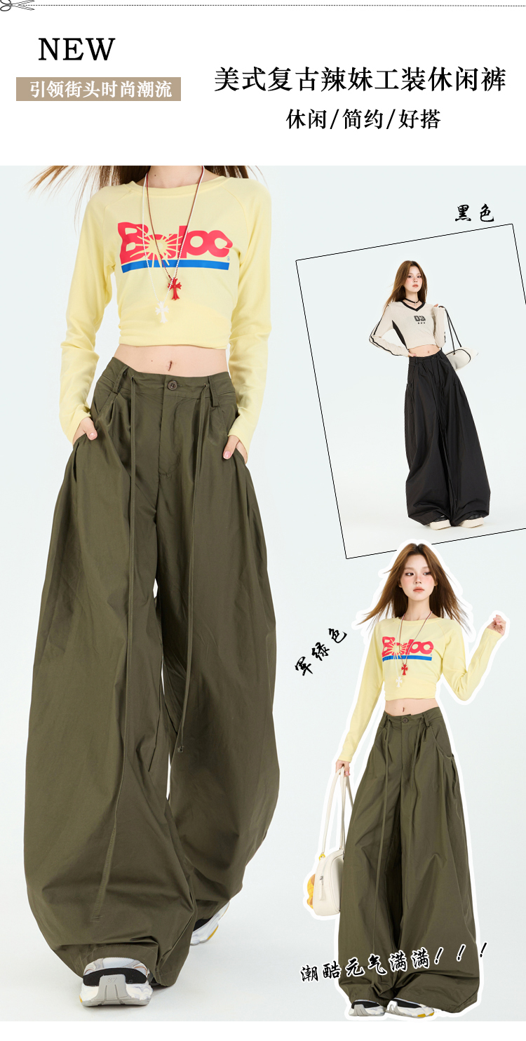 实拍黑色美式高腰抽绳工装裤女秋季新款宽松速干阔腿休闲裤