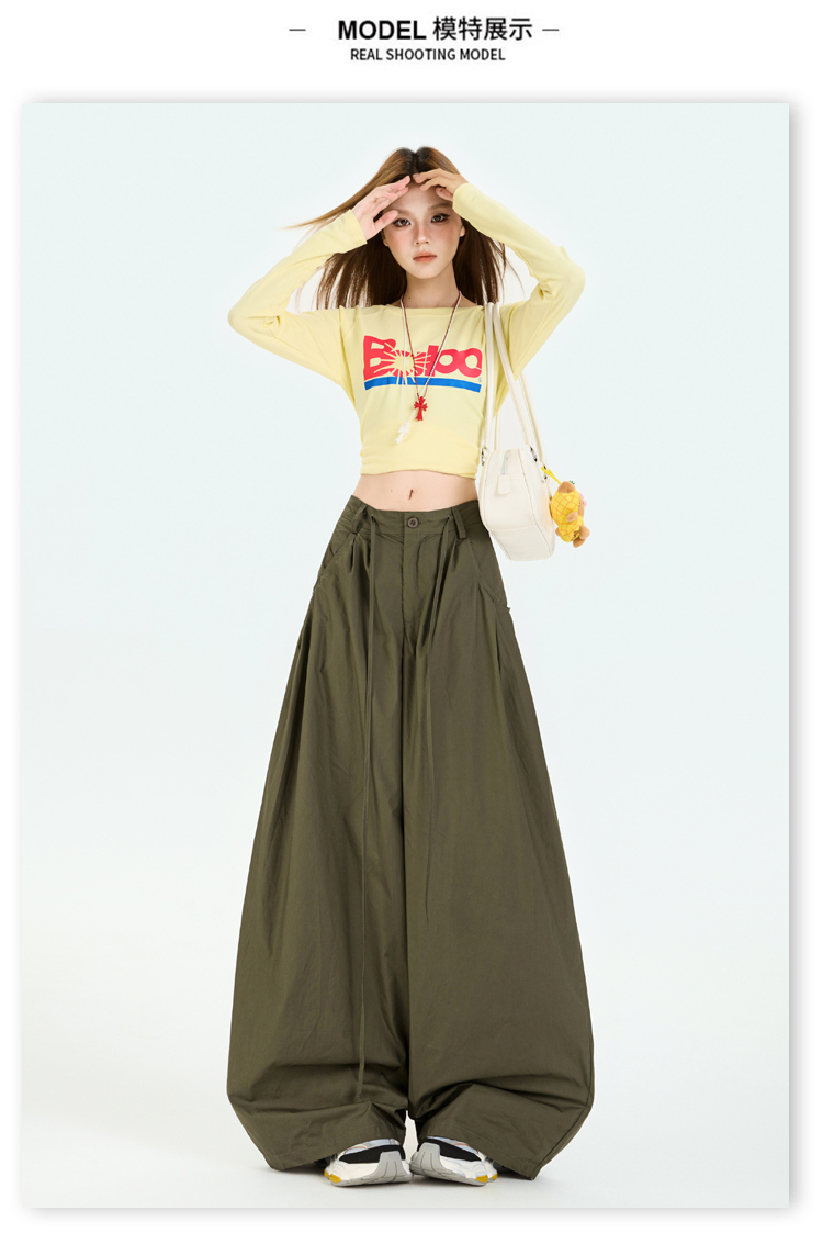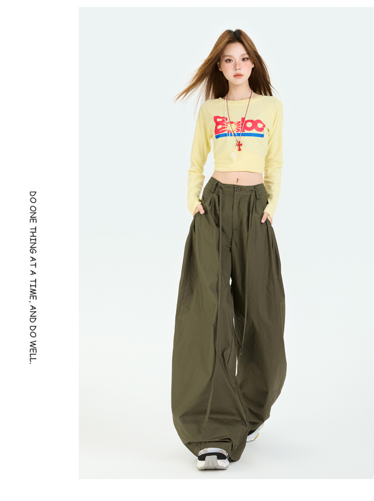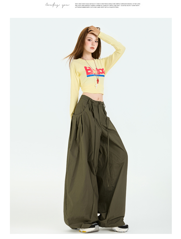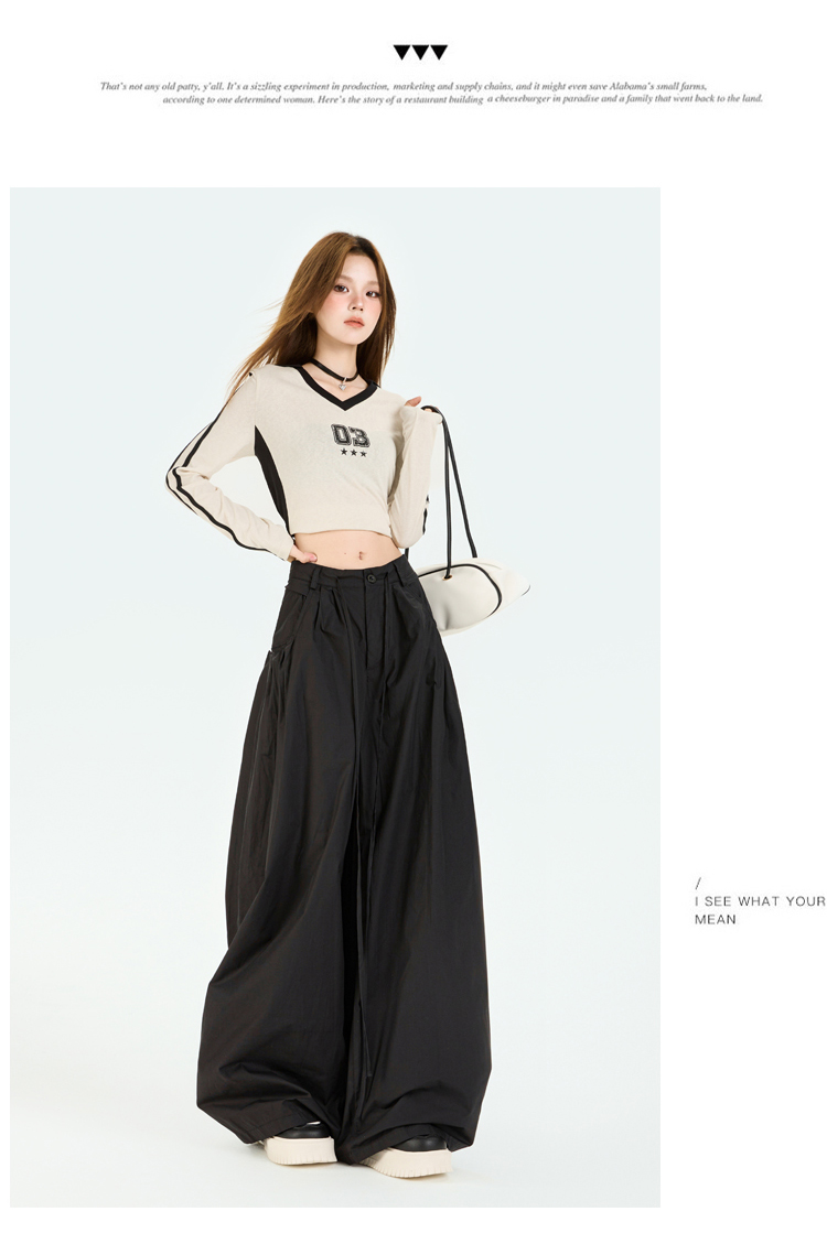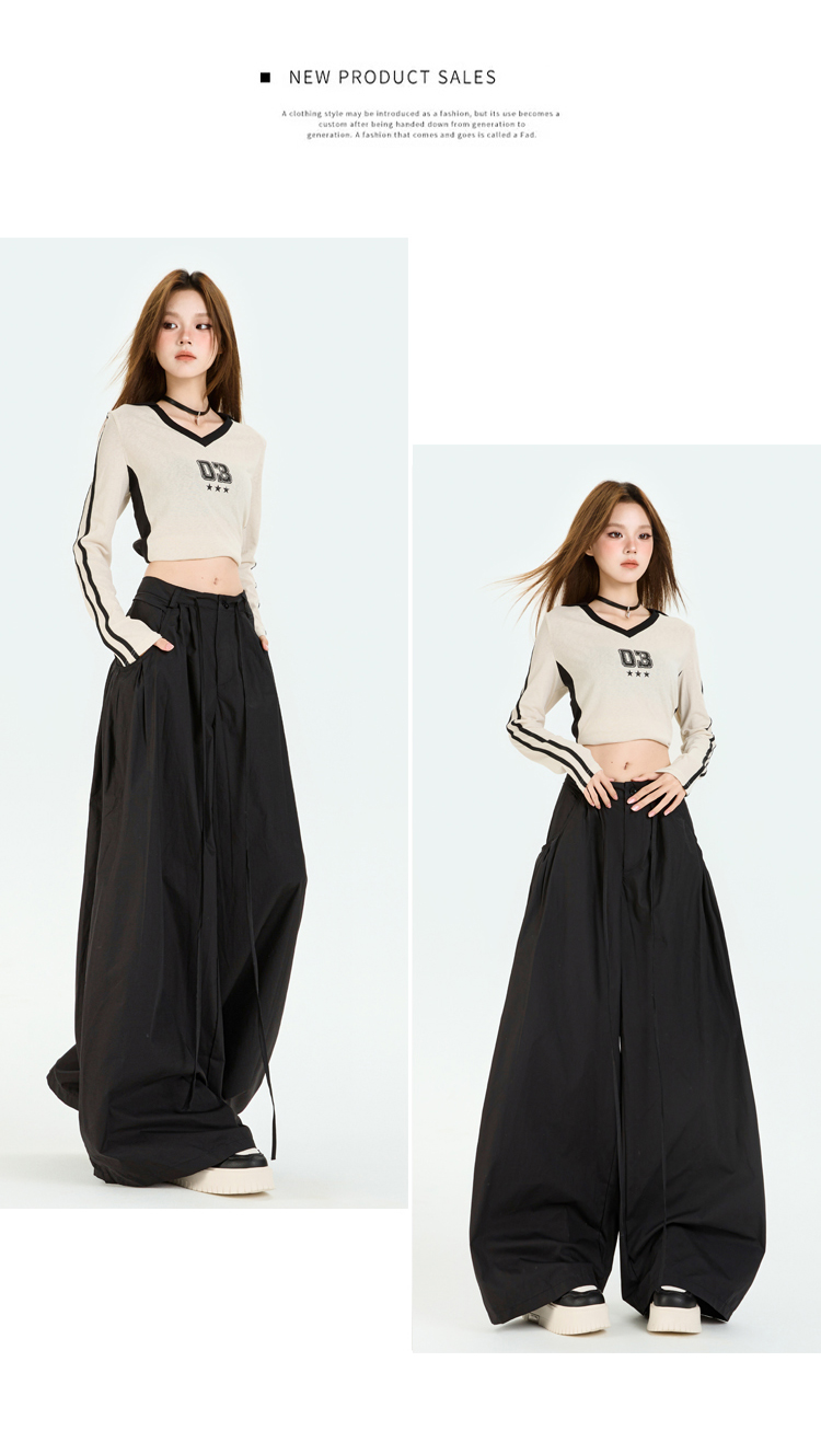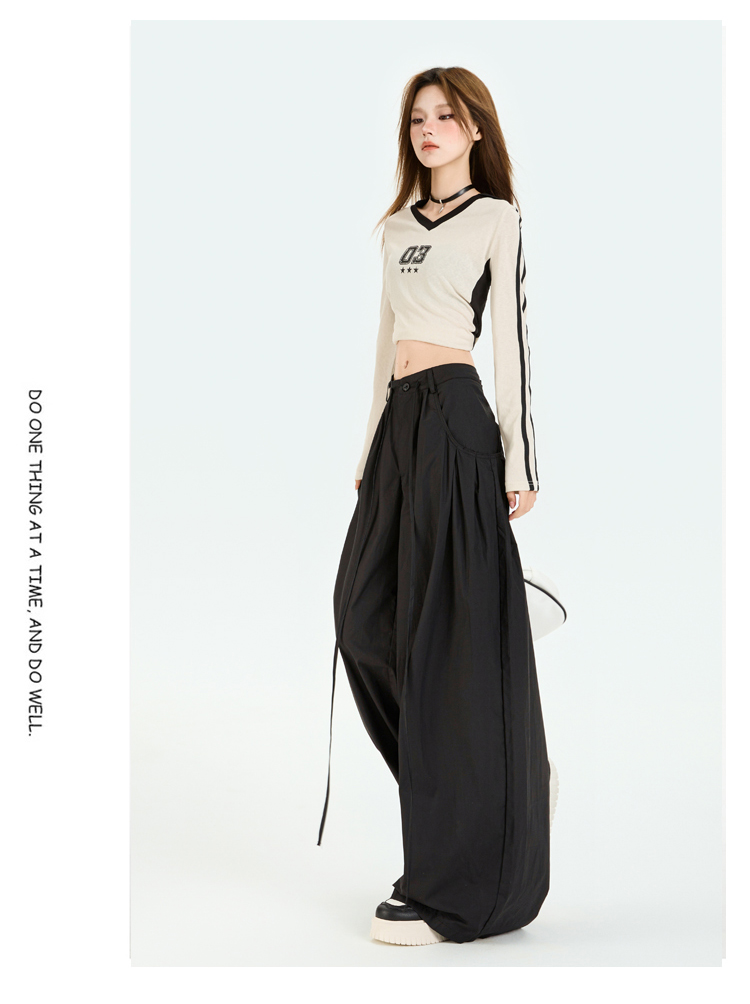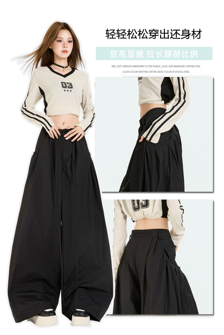 实拍黑色美式高腰抽绳工装裤女秋季新款宽松速干阔腿休闲裤