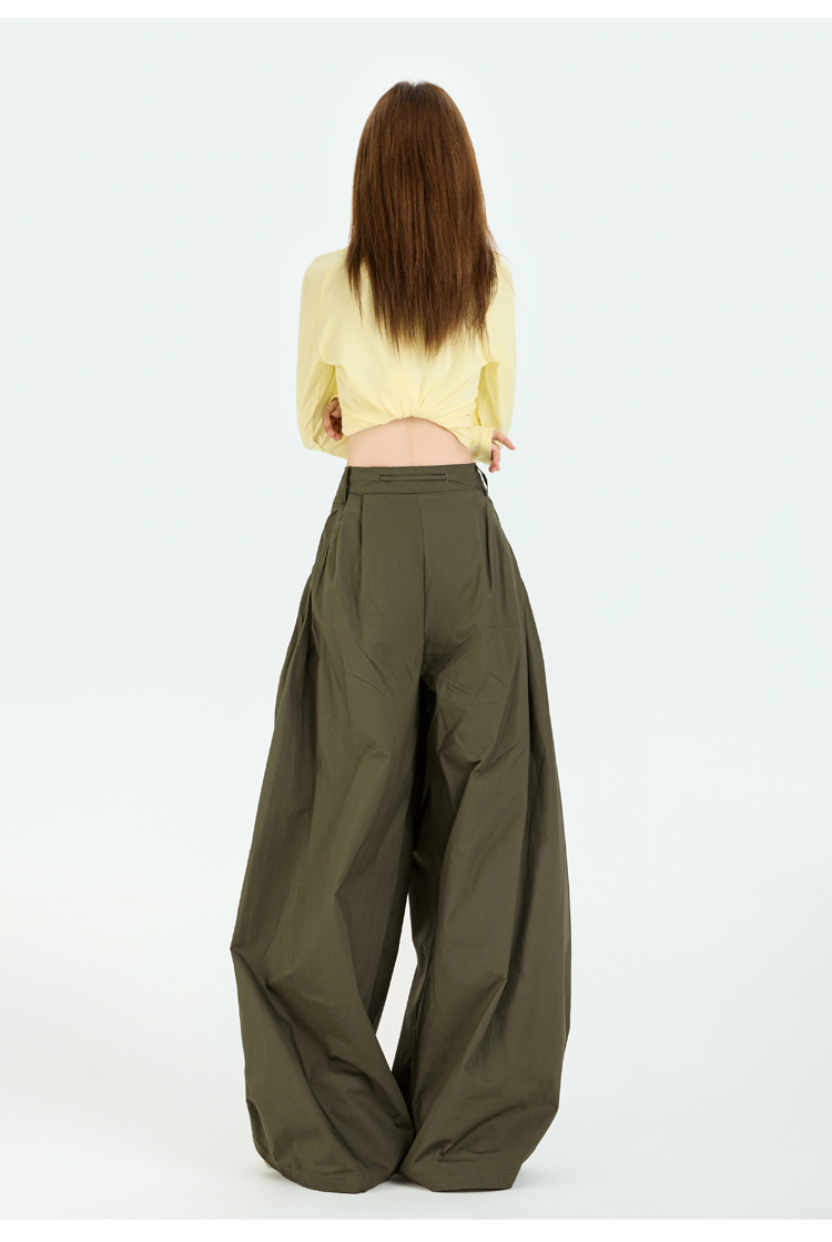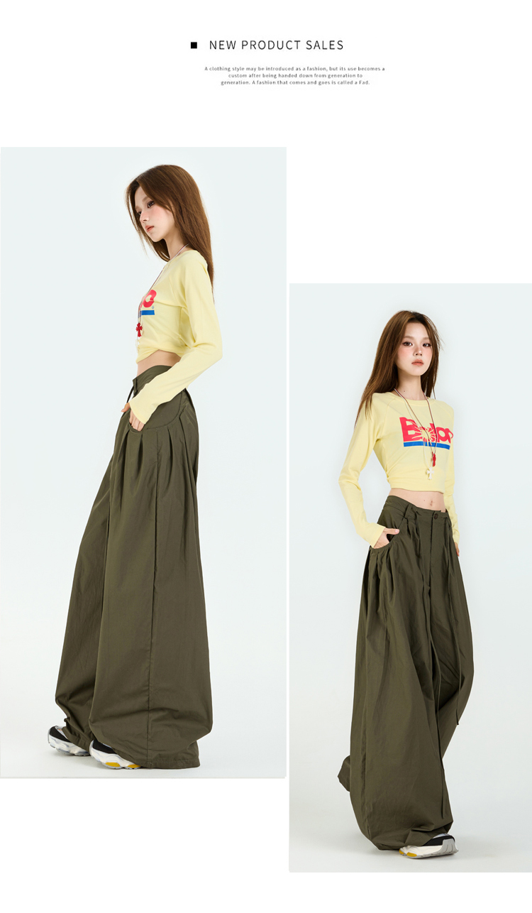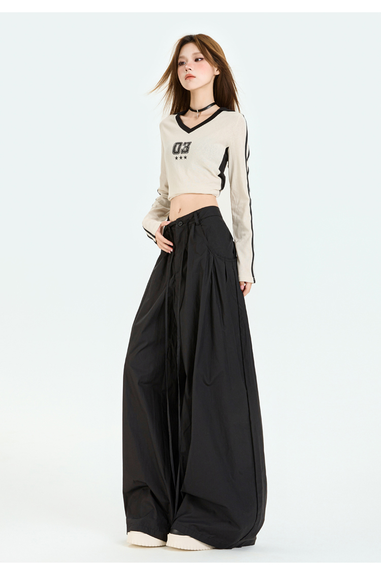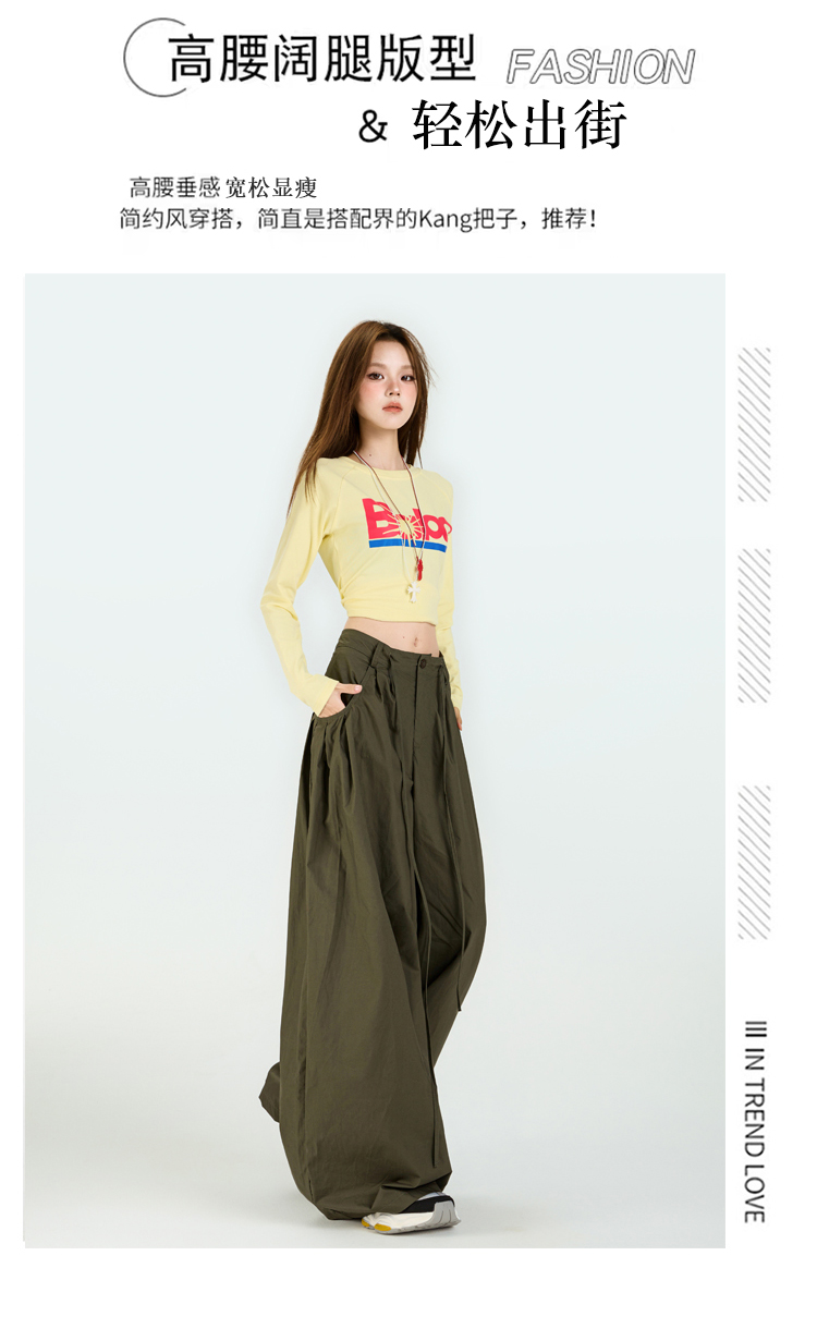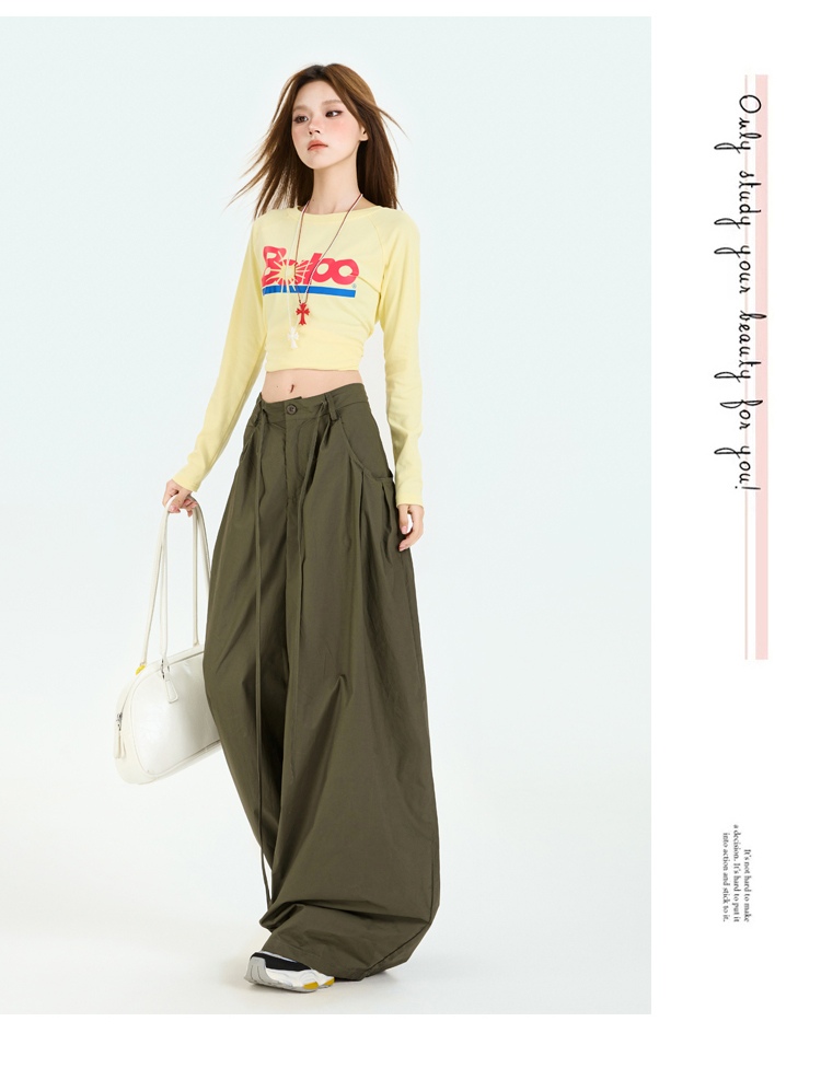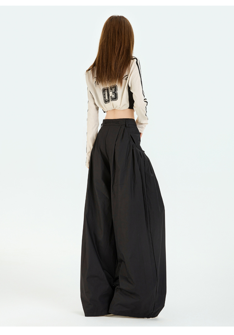 实拍黑色美式高腰抽绳工装裤女秋季新款宽松速干阔腿休闲裤