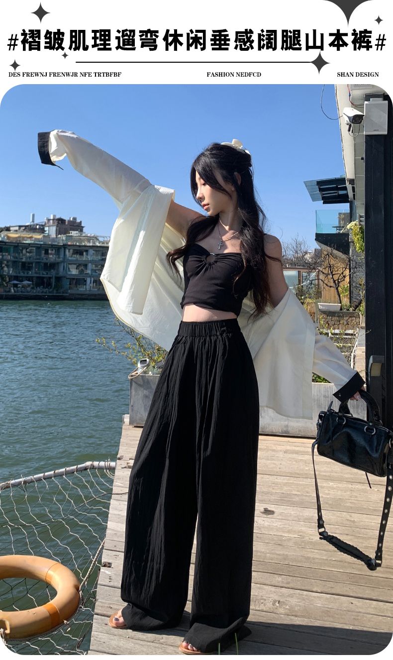 实拍&慵懒风|褶皱肌理|遛弯垂感休闲山本裤女