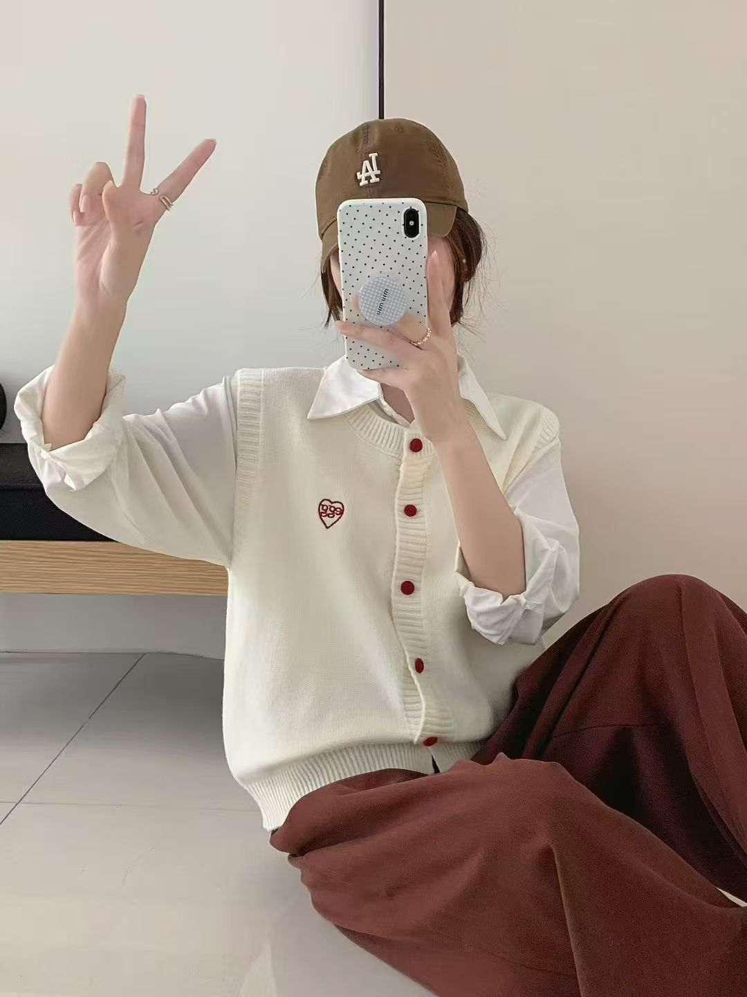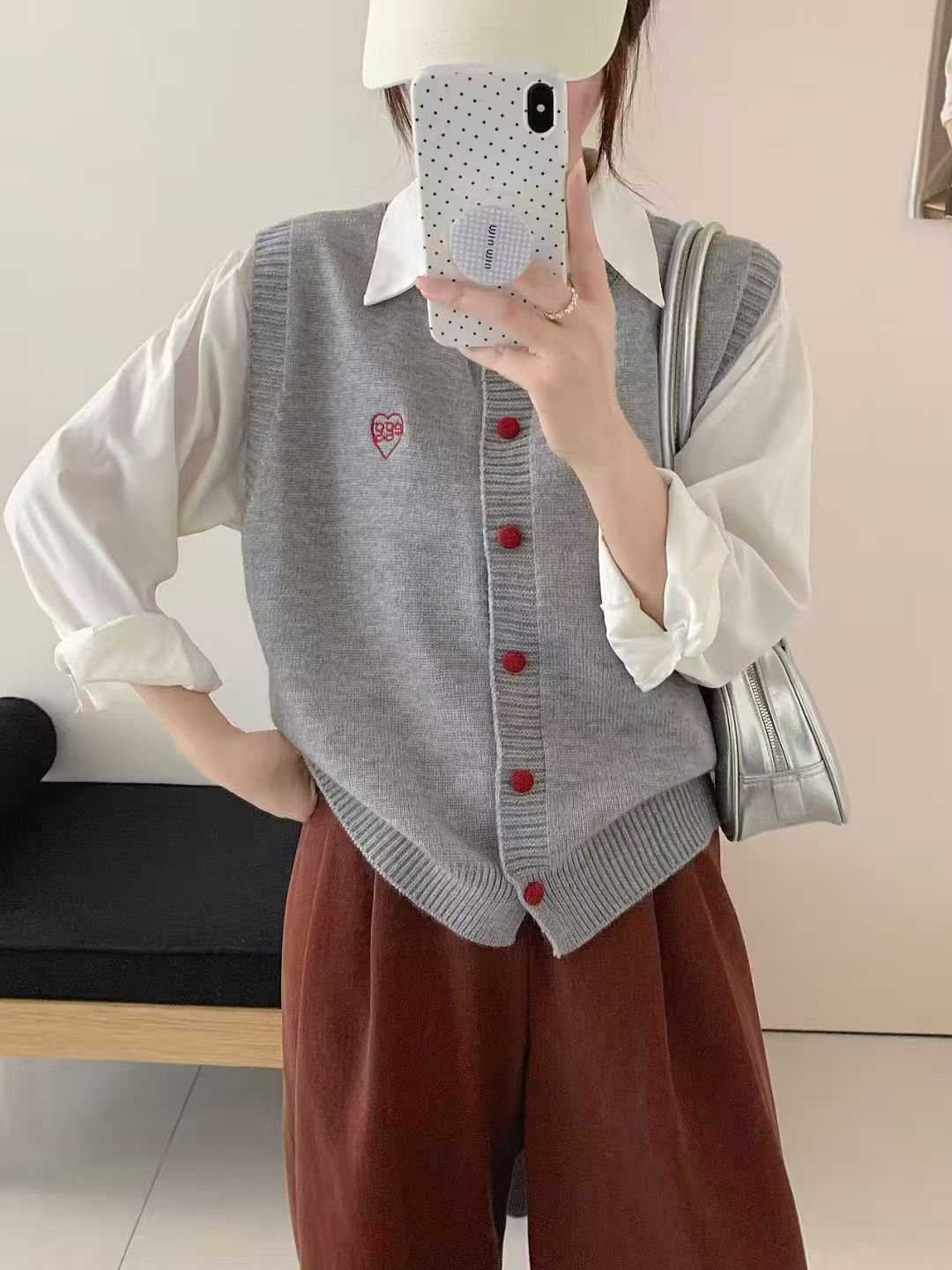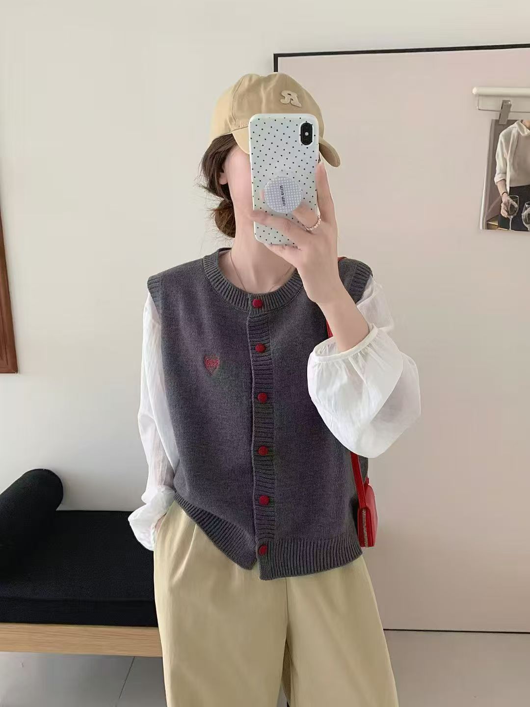 叠穿圆领针织开衫马甲女春秋新款宽松百搭学院风彩扣针织背心上衣