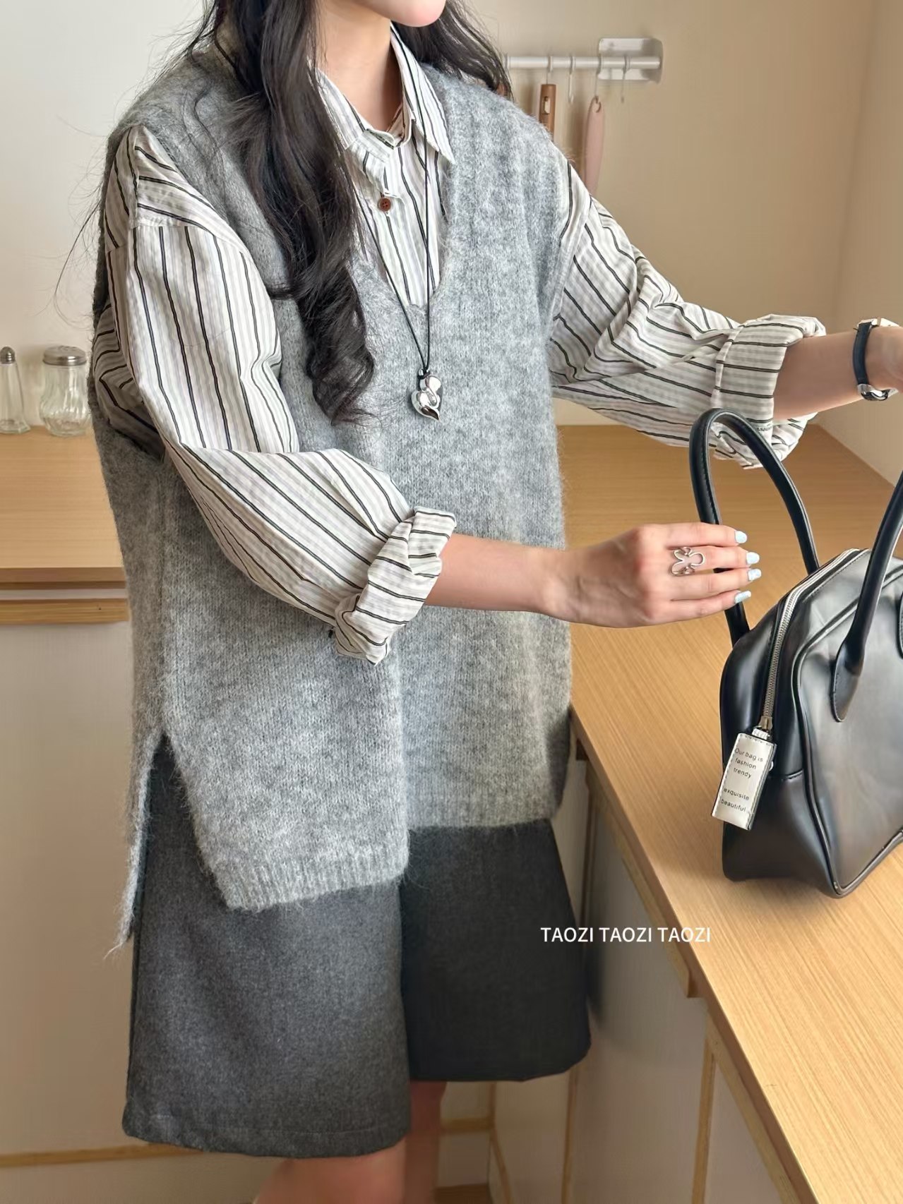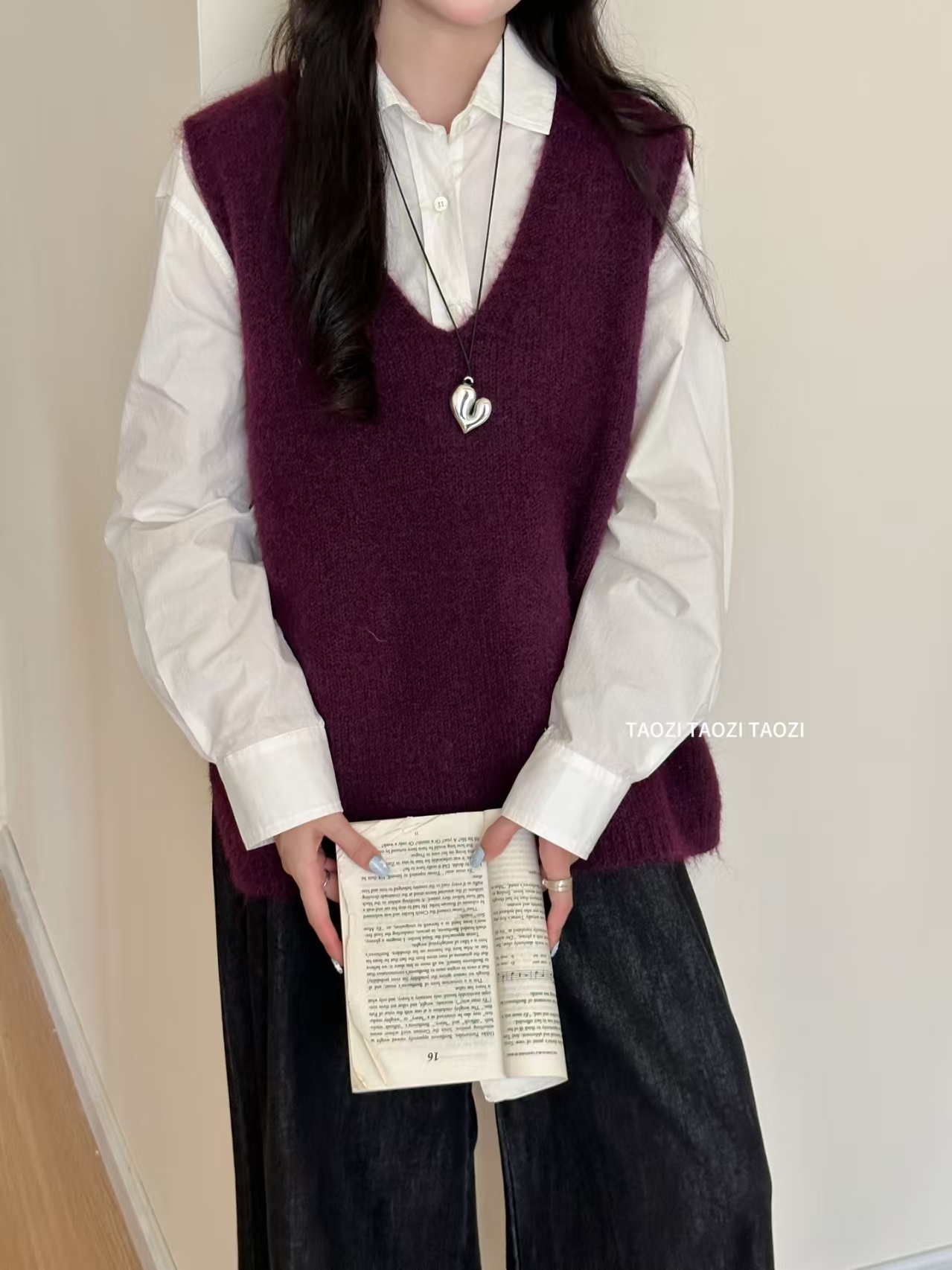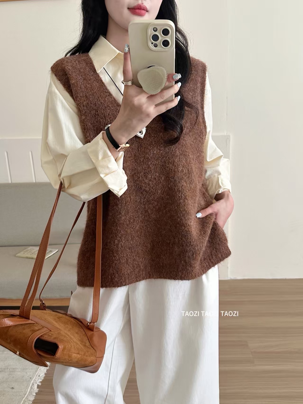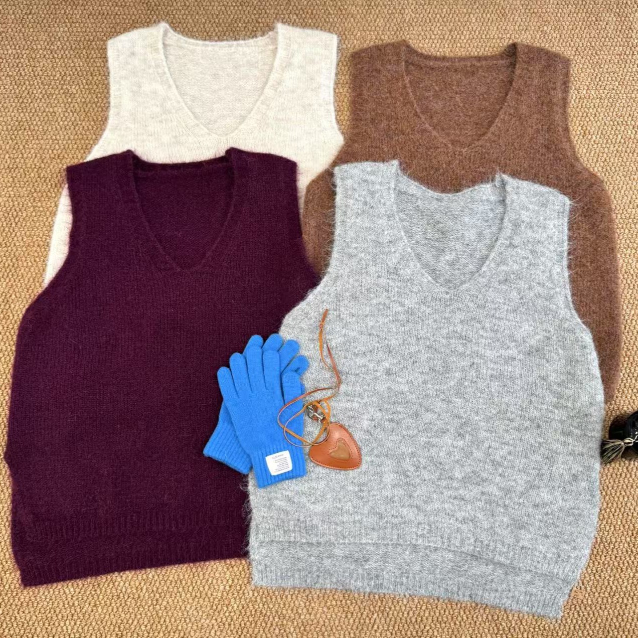 宽松无袖羊驼毛针织马甲女新款V领软糯毛衣套头背心春秋短款上衣