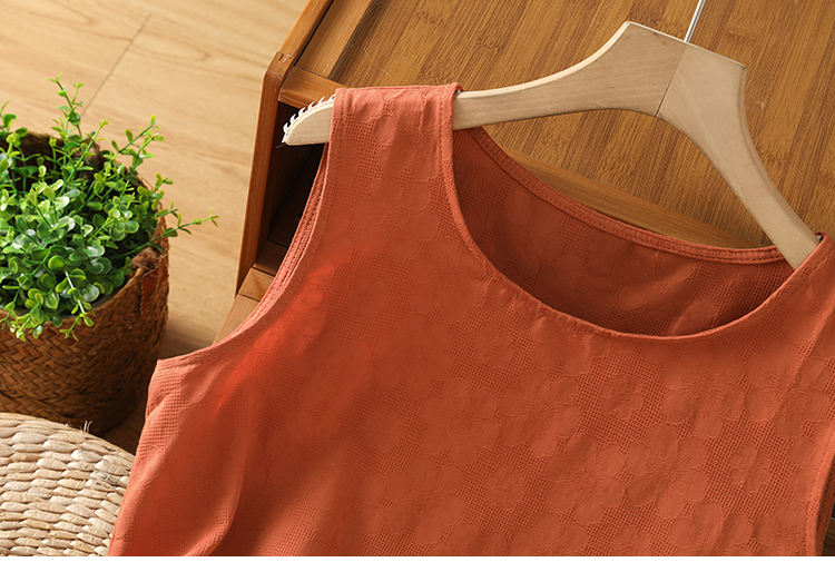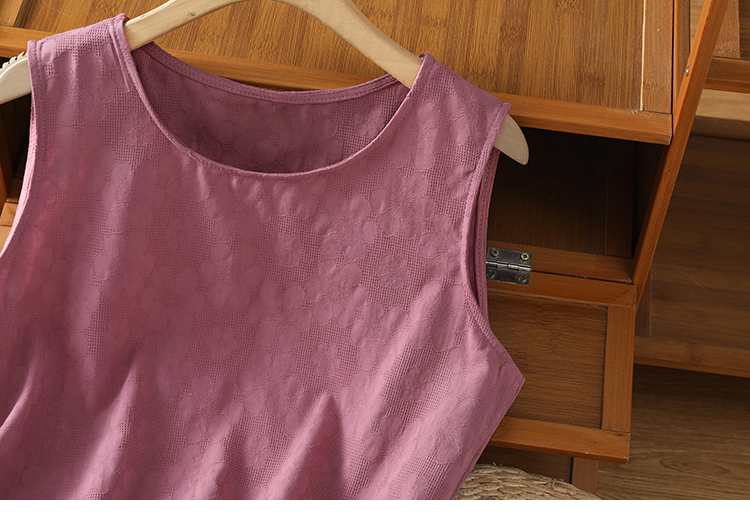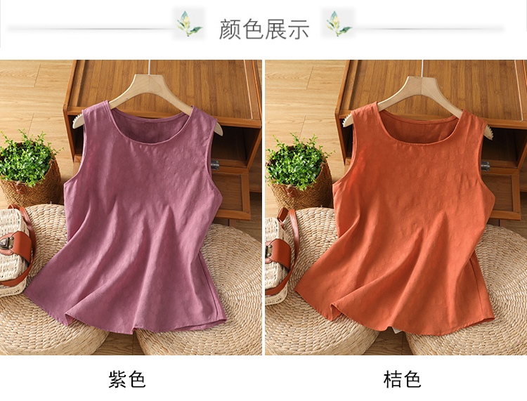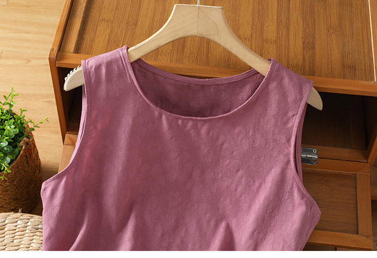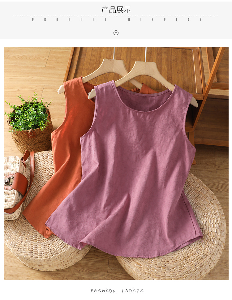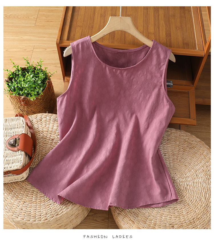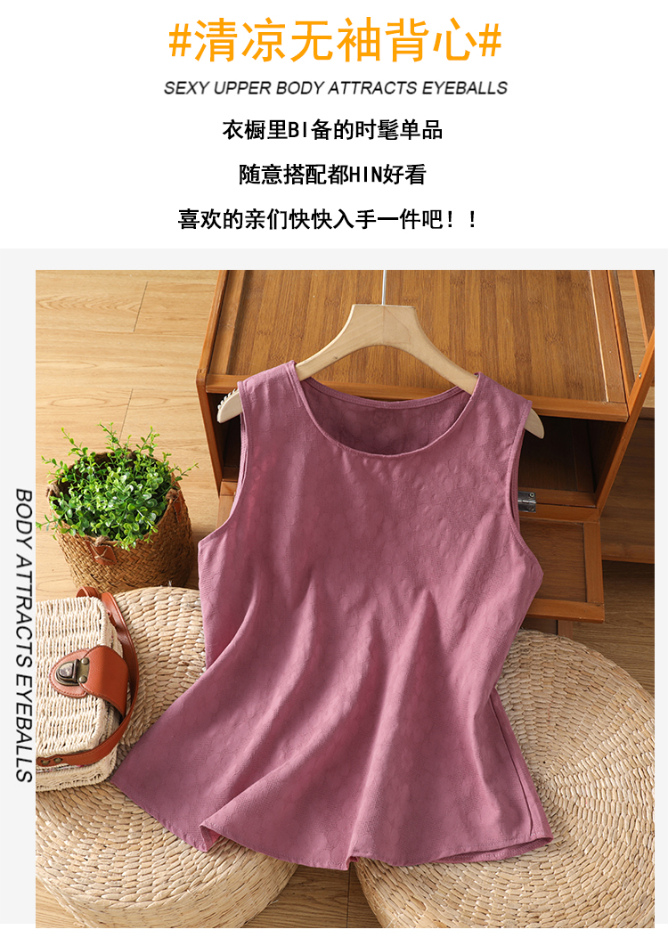 实拍夏季简约百搭纯棉提花舒适简约小背心百搭小衫无袖上衣女