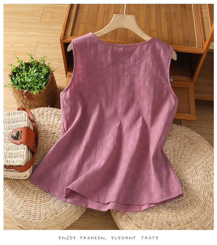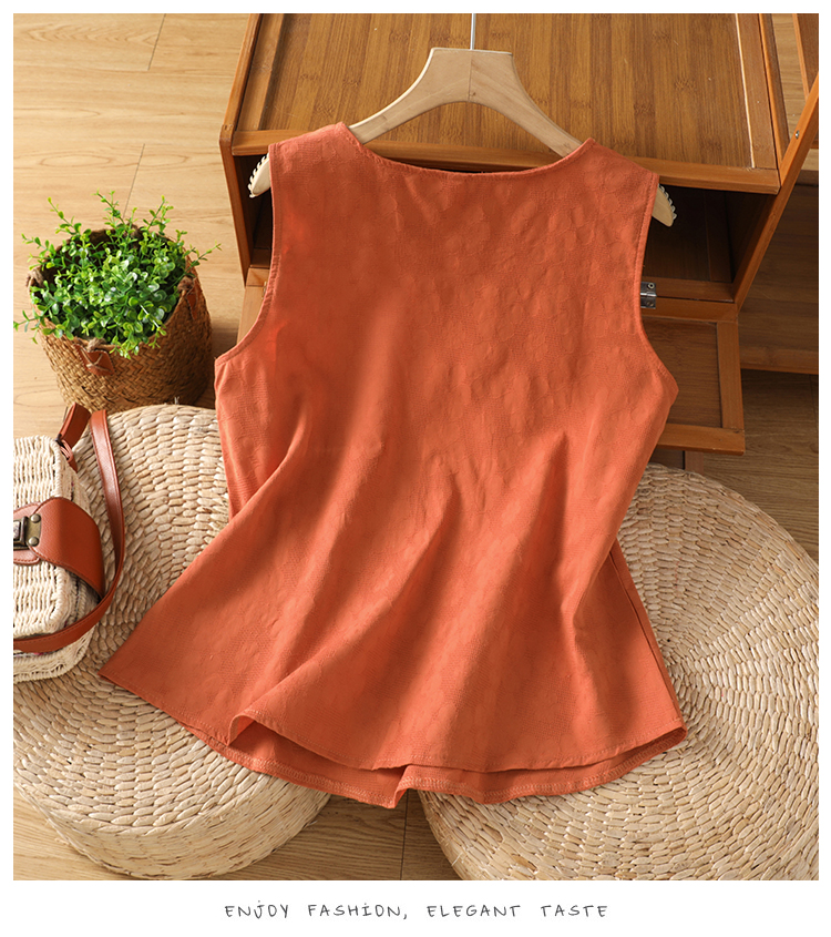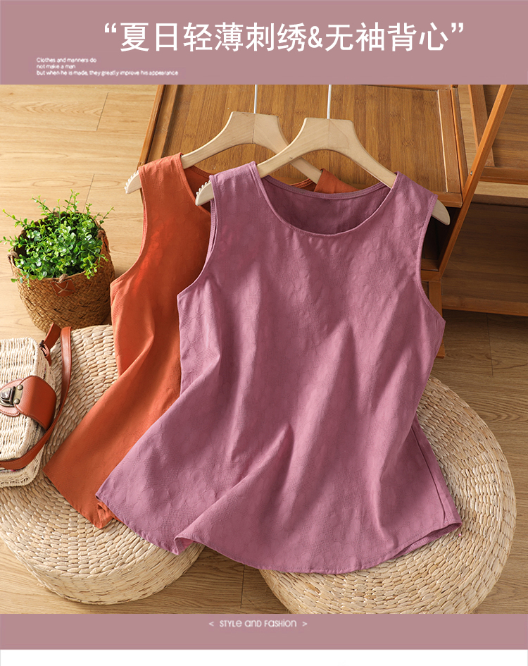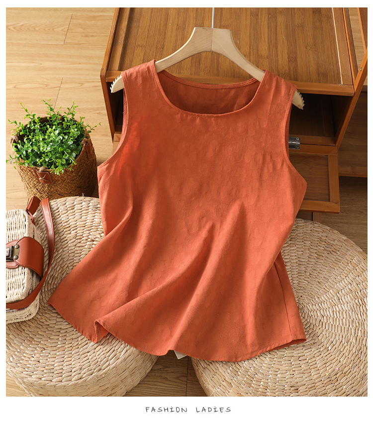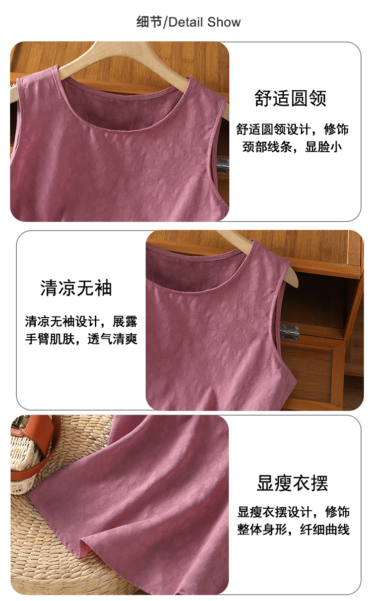 实拍夏季简约百搭纯棉提花舒适简约小背心百搭小衫无袖上衣女