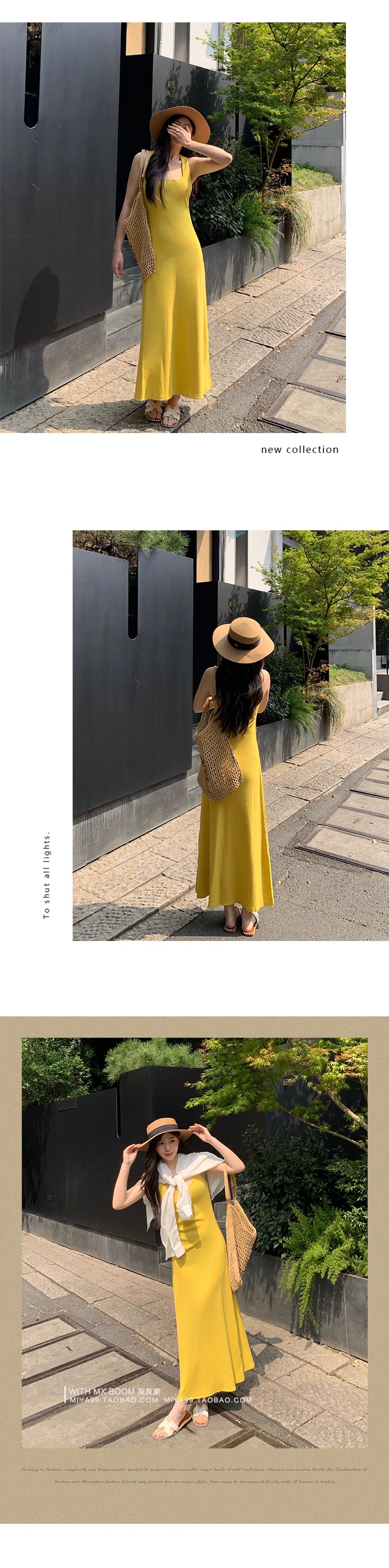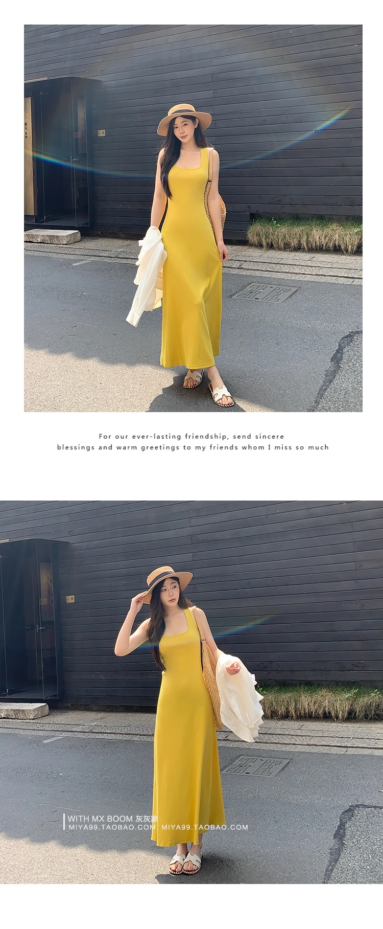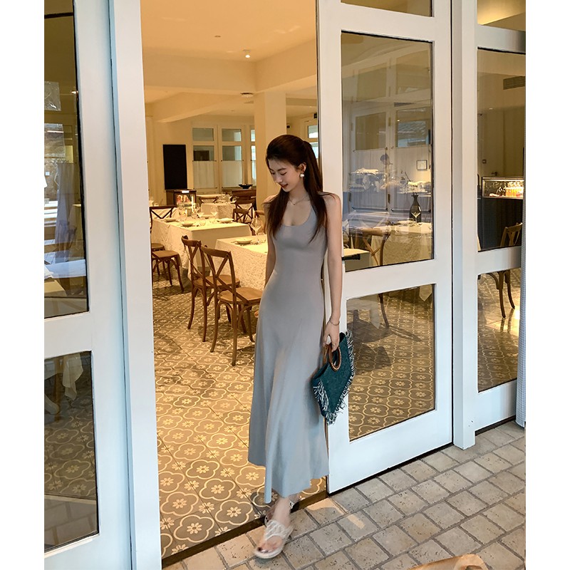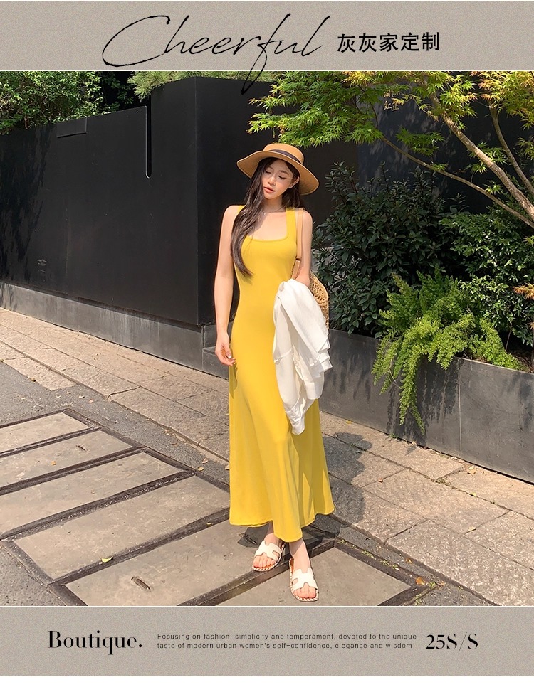 WITHMXBOOM灰灰家方领午休度假风长裙修身显瘦包臀背心长款连衣裙