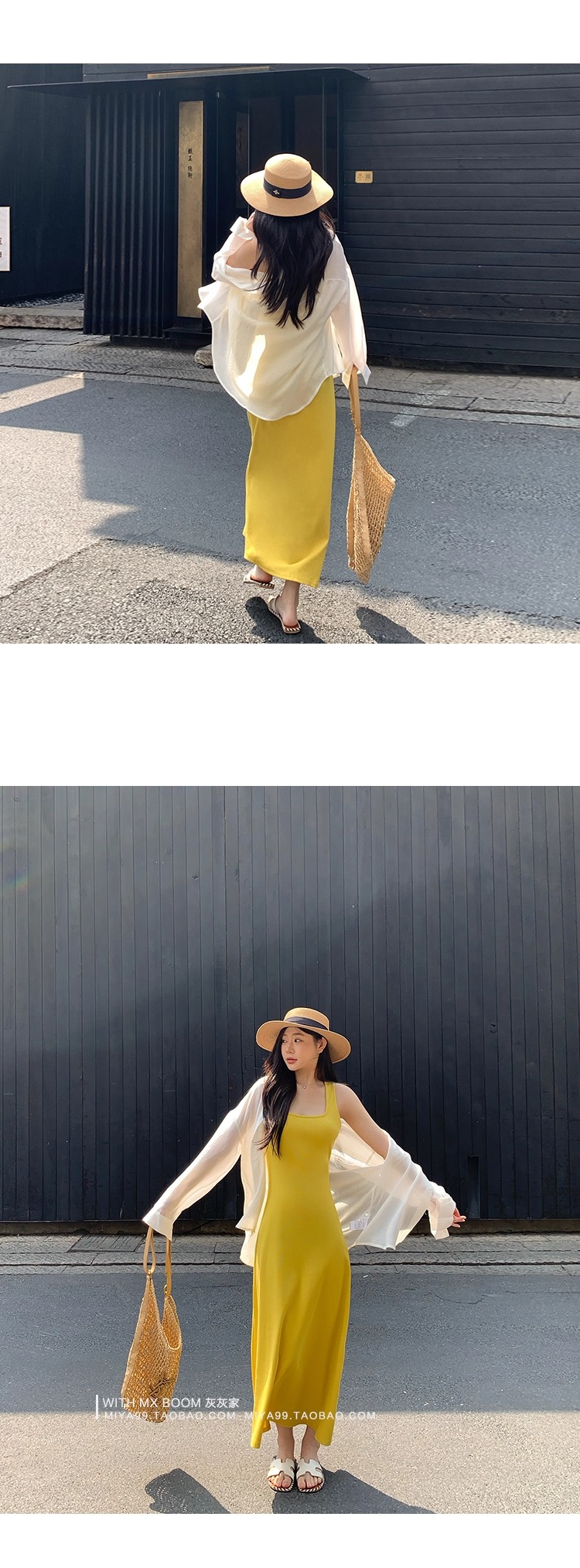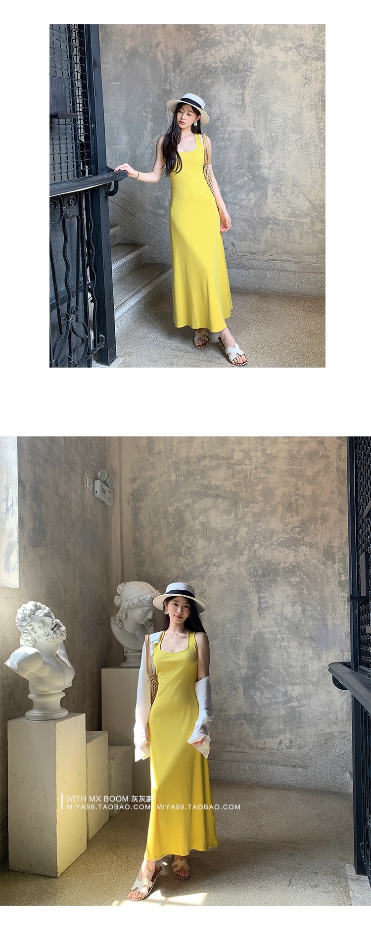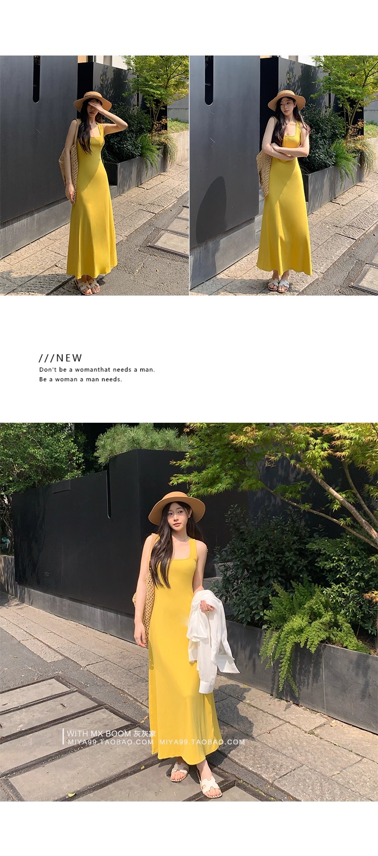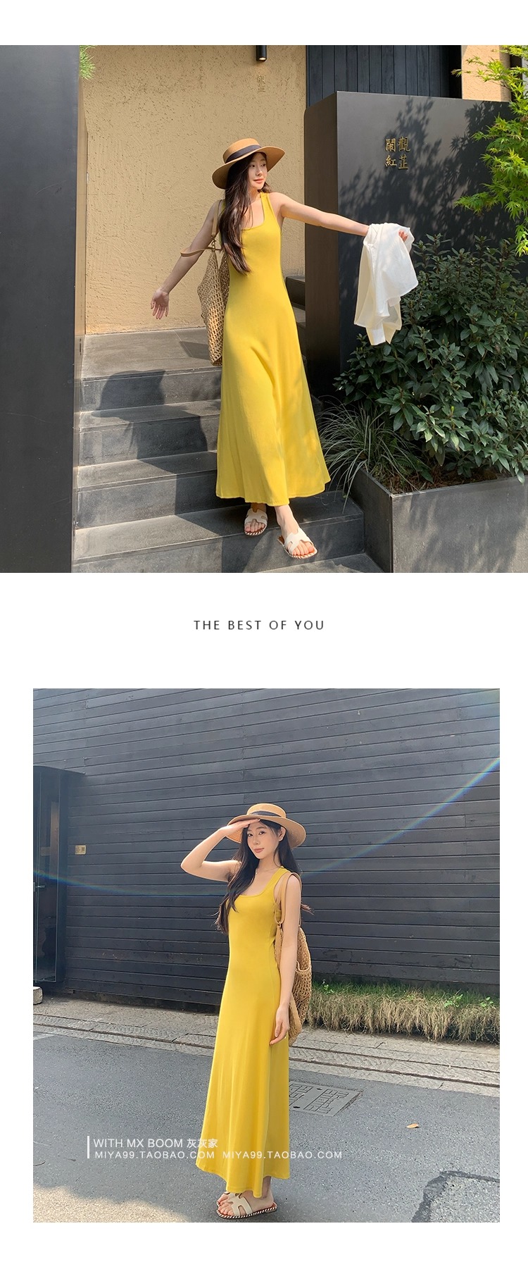 WITHMXBOOM灰灰家方领午休度假风长裙修身显瘦包臀背心长款连衣裙