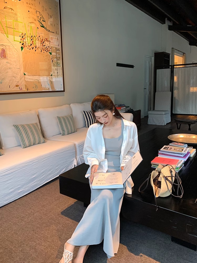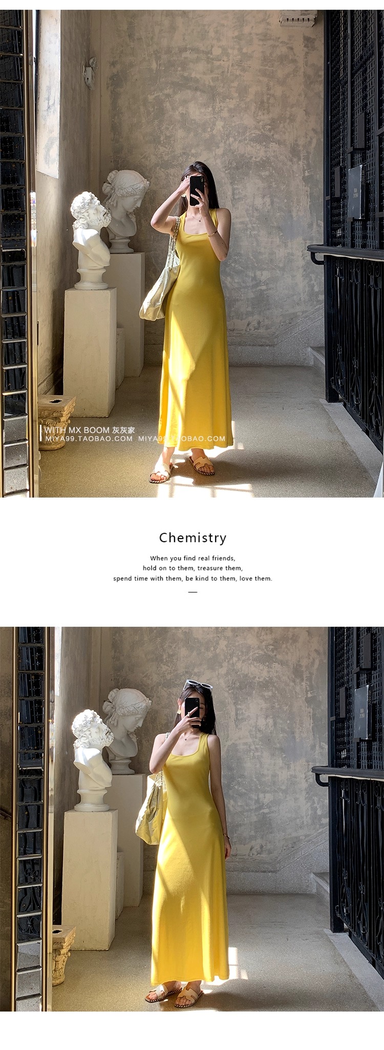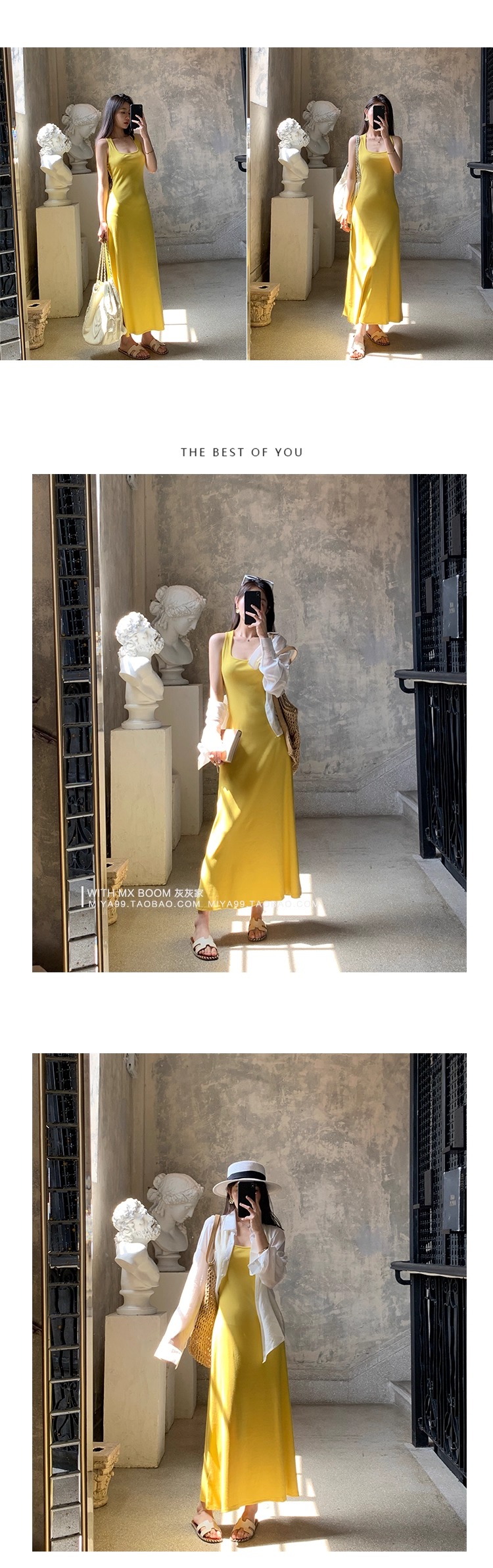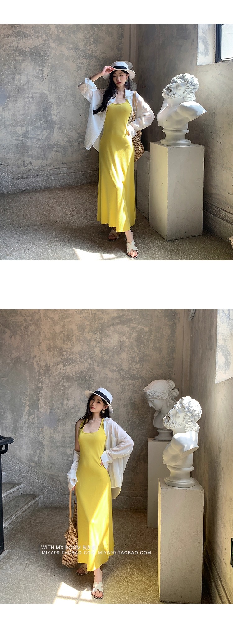 WITHMXBOOM灰灰家方领午休度假风长裙修身显瘦包臀背心长款连衣裙