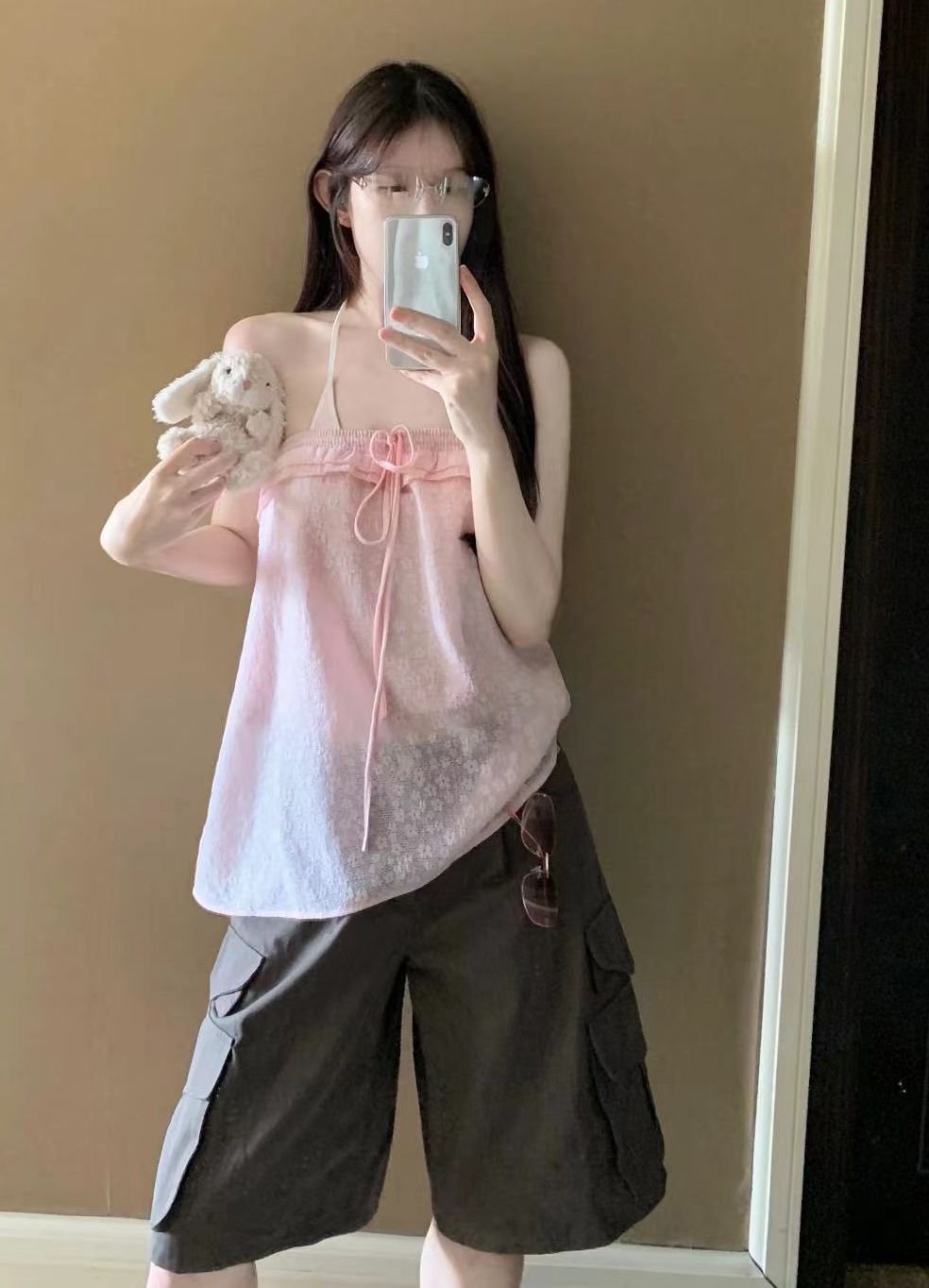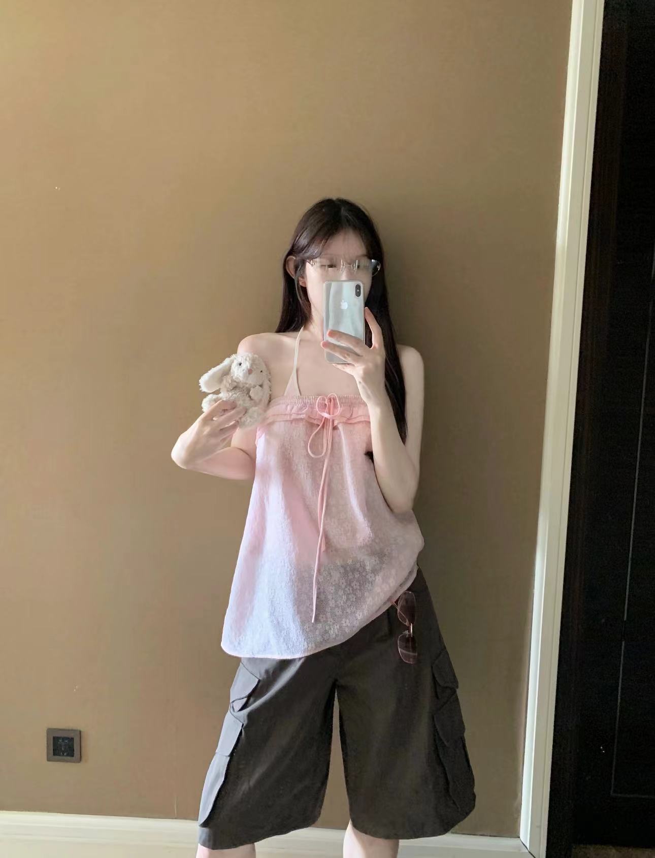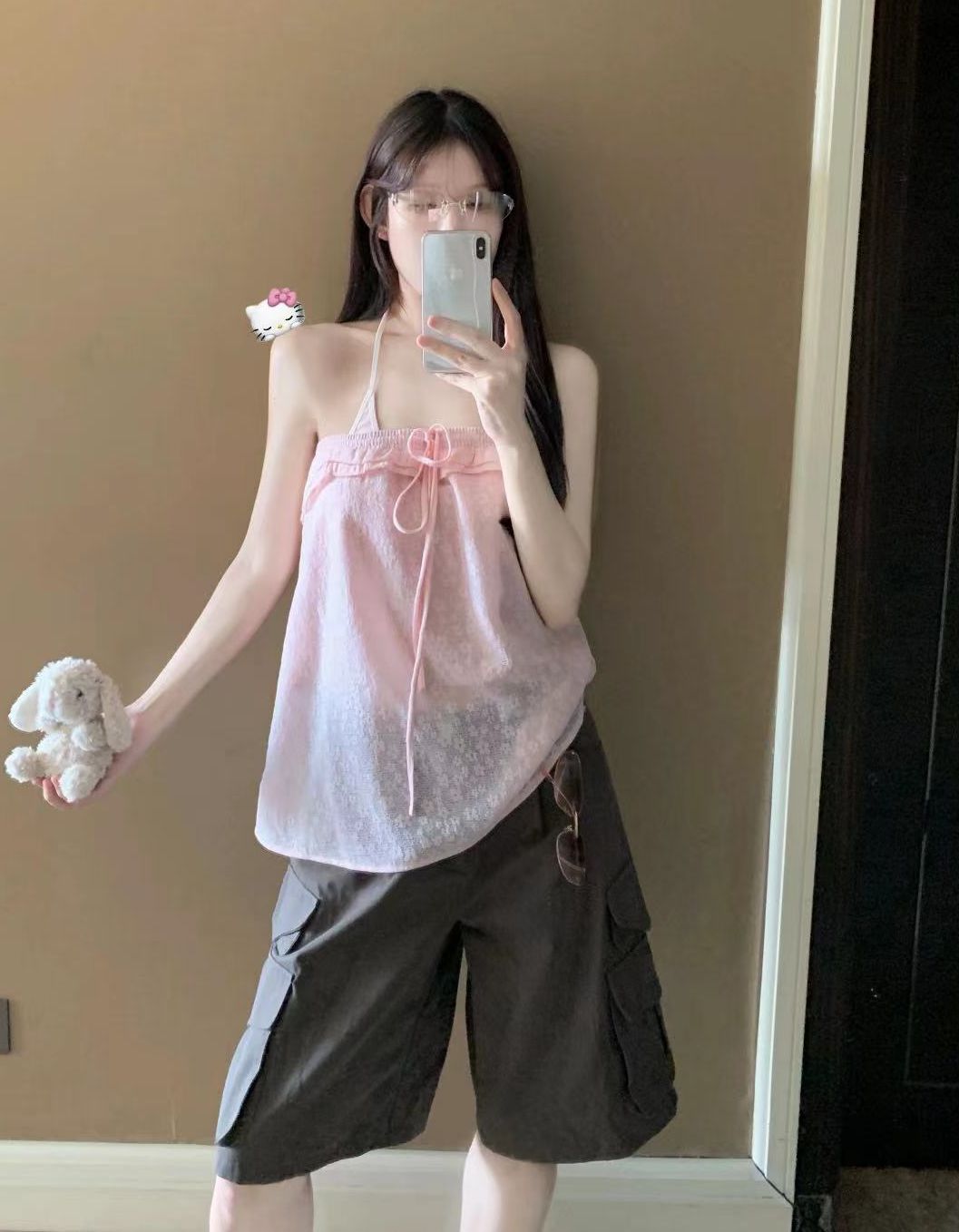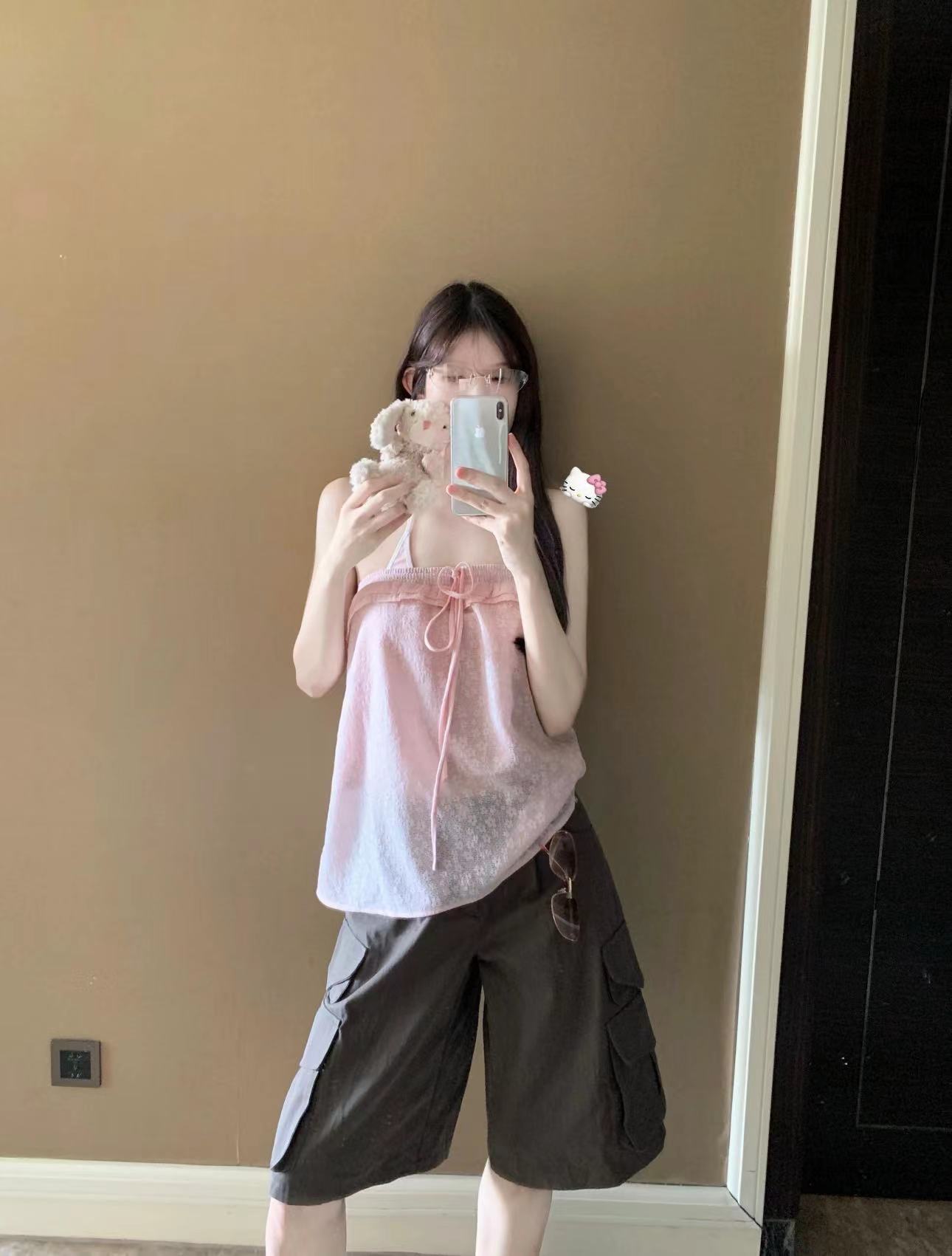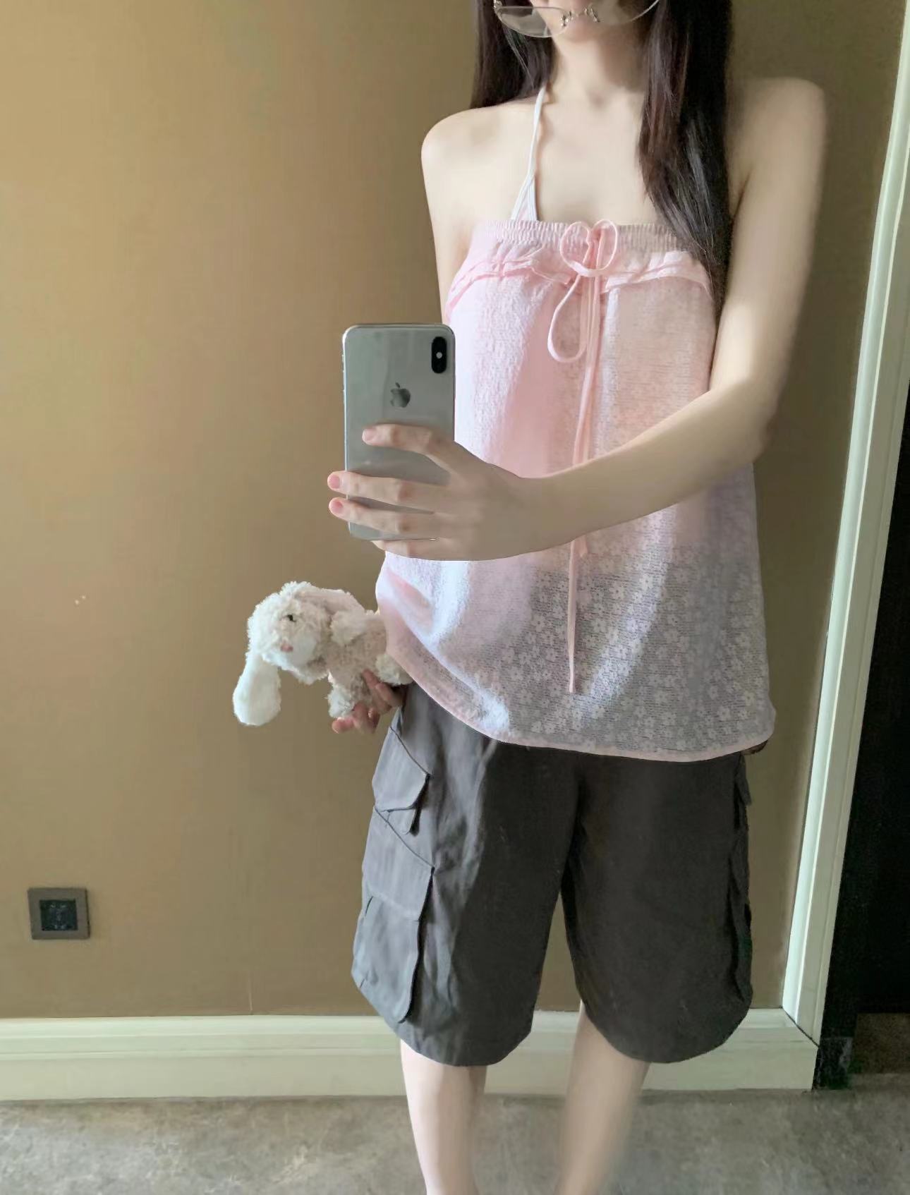 实拍实价 镂空抹胸系带荷叶边露肩吊带透气修身上衣+外穿修身内衣
