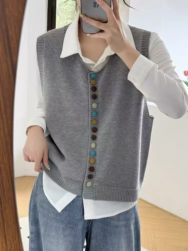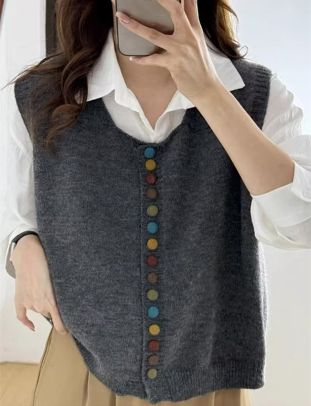 开衫针织马甲背心女春秋外穿2025新款文艺风宽松短款叠穿无袖上衣