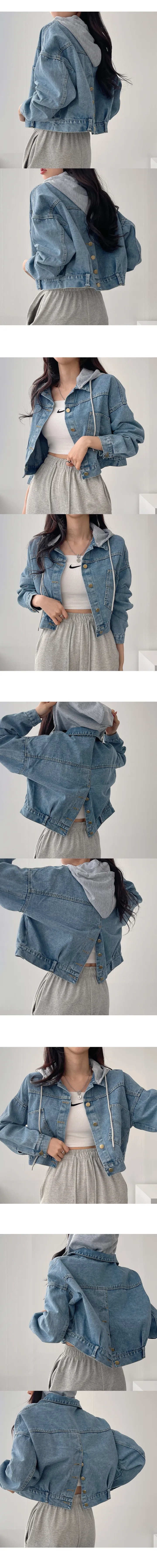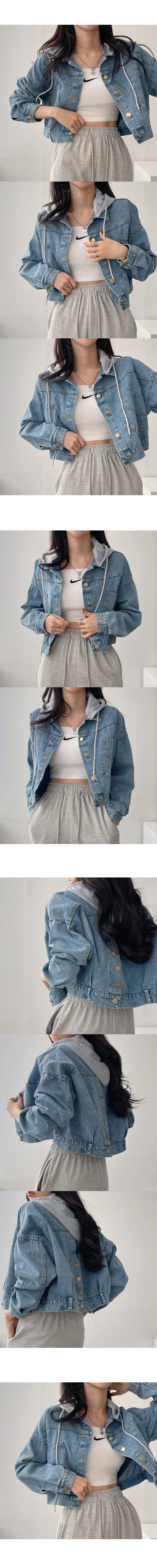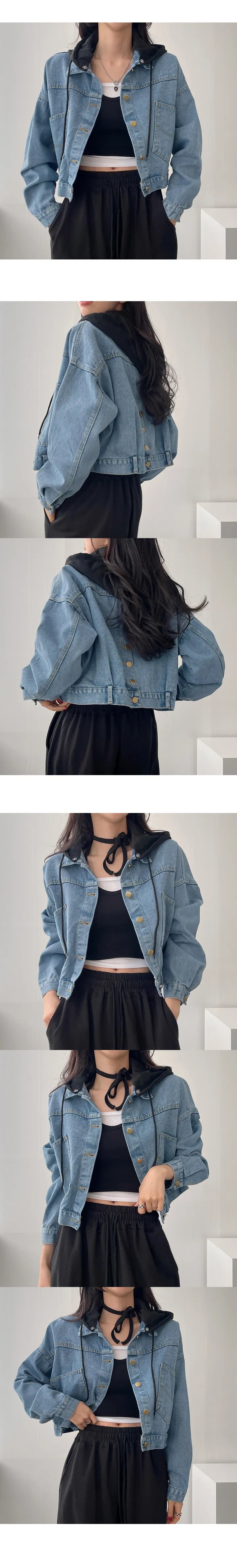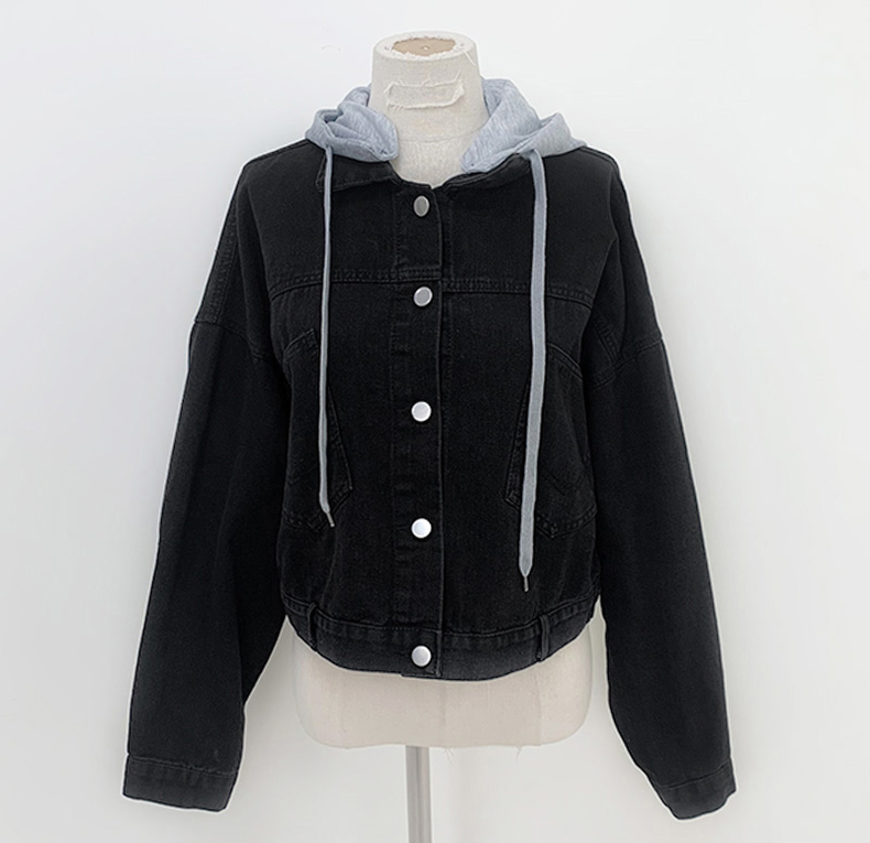 2025秋冬 chic 韩版女装后排扣可拆卸帽子短款牛仔夹克外套