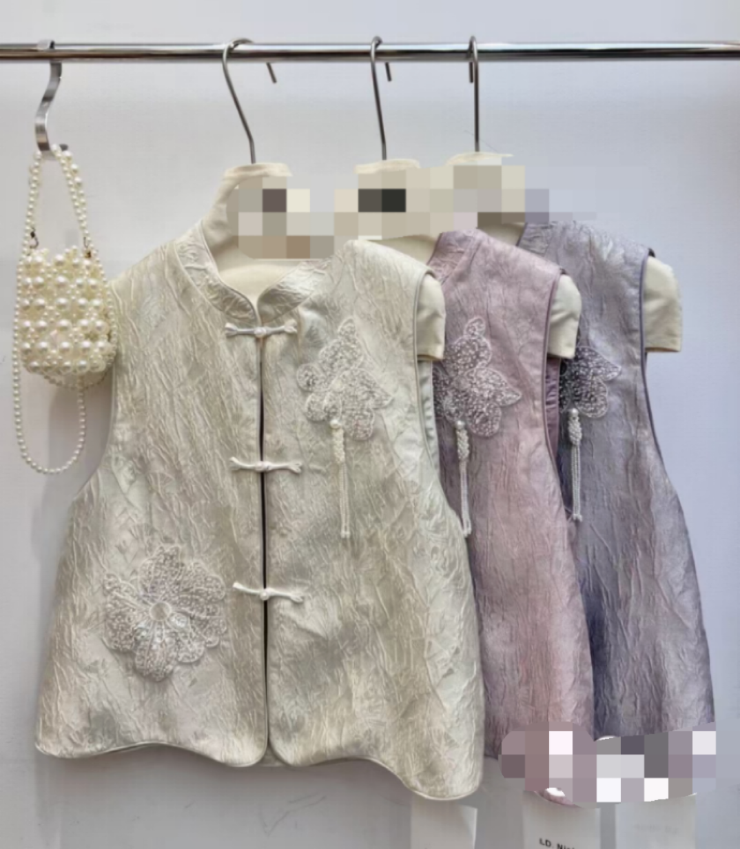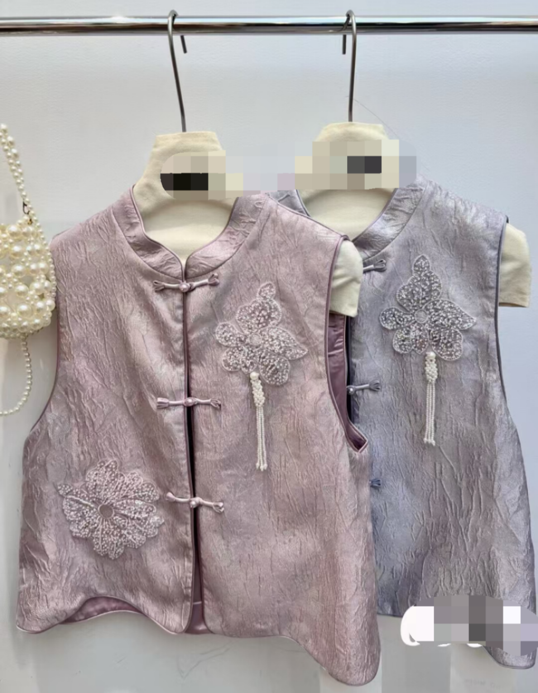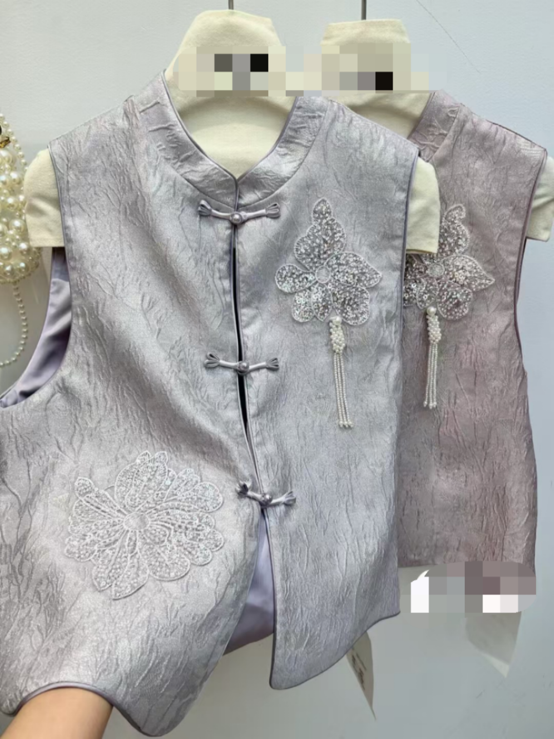 新中式盘扣刺绣高端缎面无袖马甲女夏季时髦洋气坎肩宽松外穿马夹