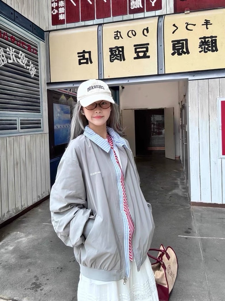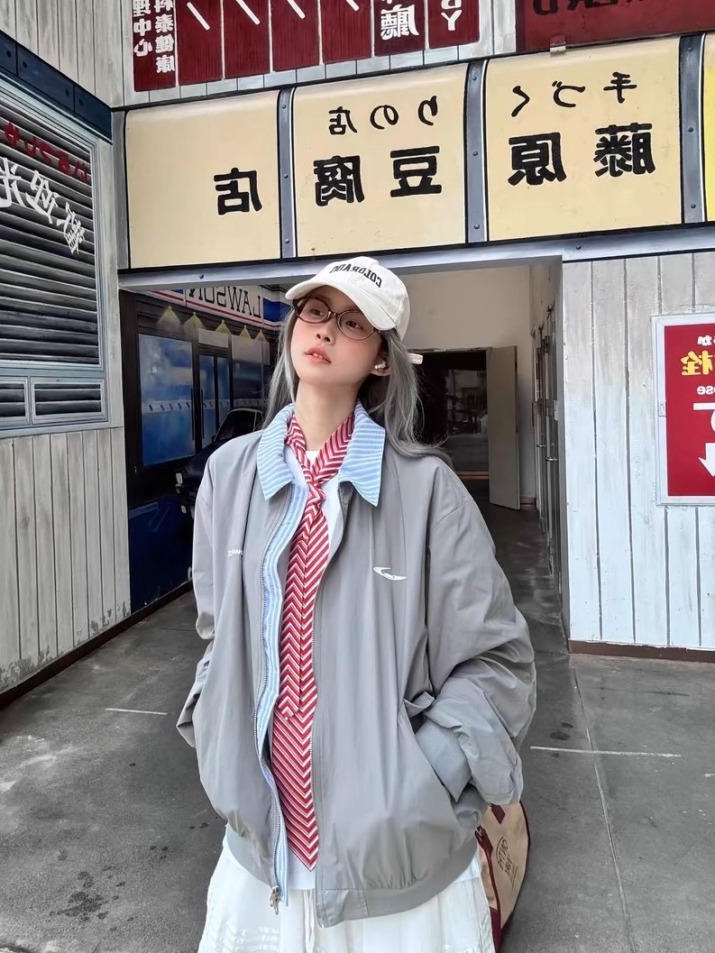 原版刺绣假两件工装外套棒球服春秋宽松设计感飞行夹克女潮ins