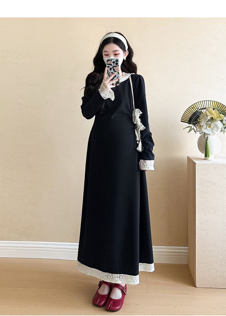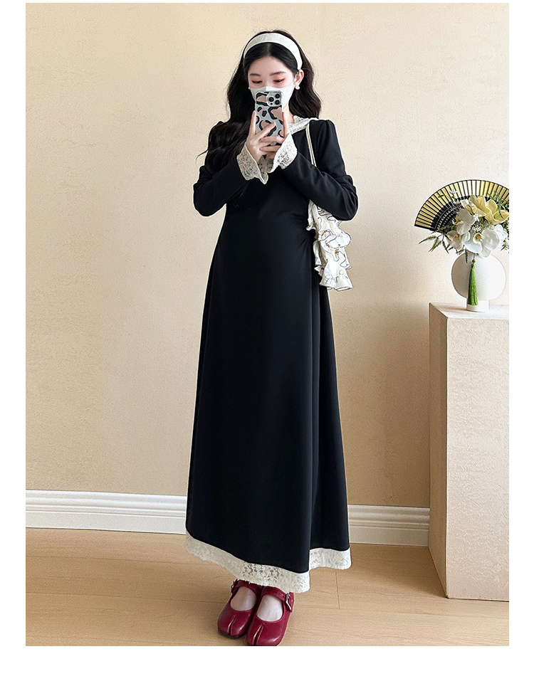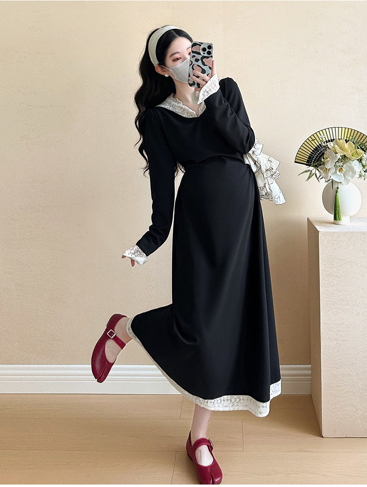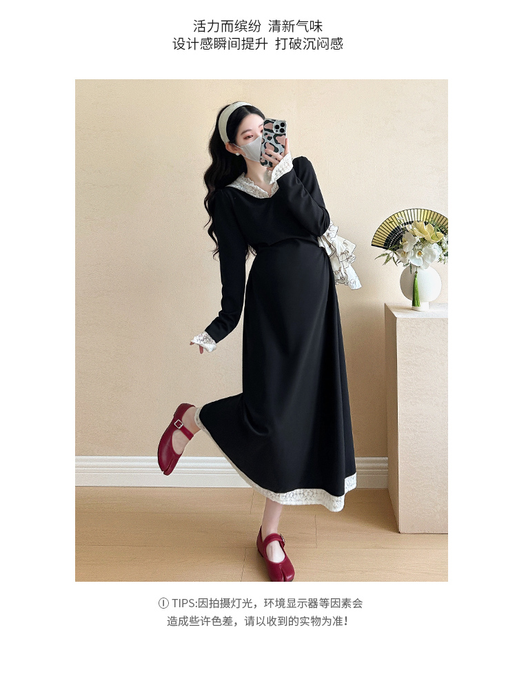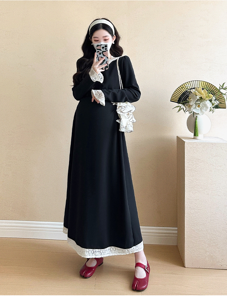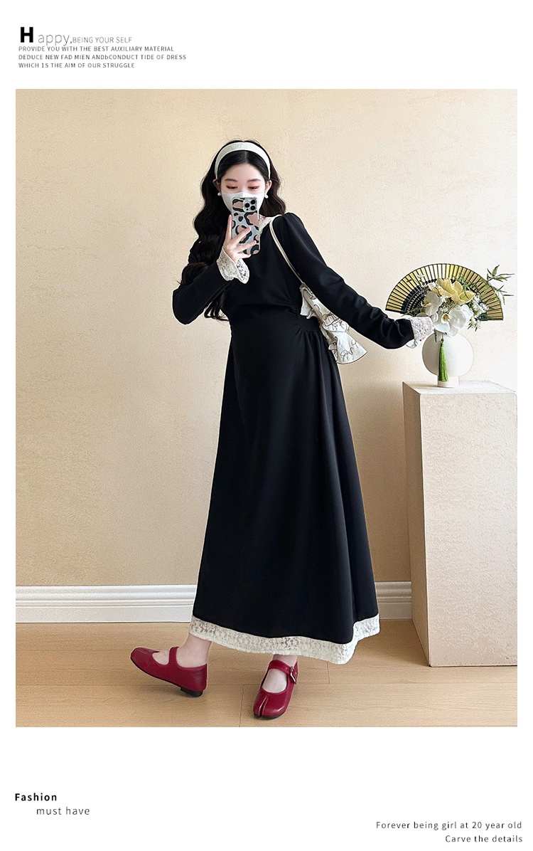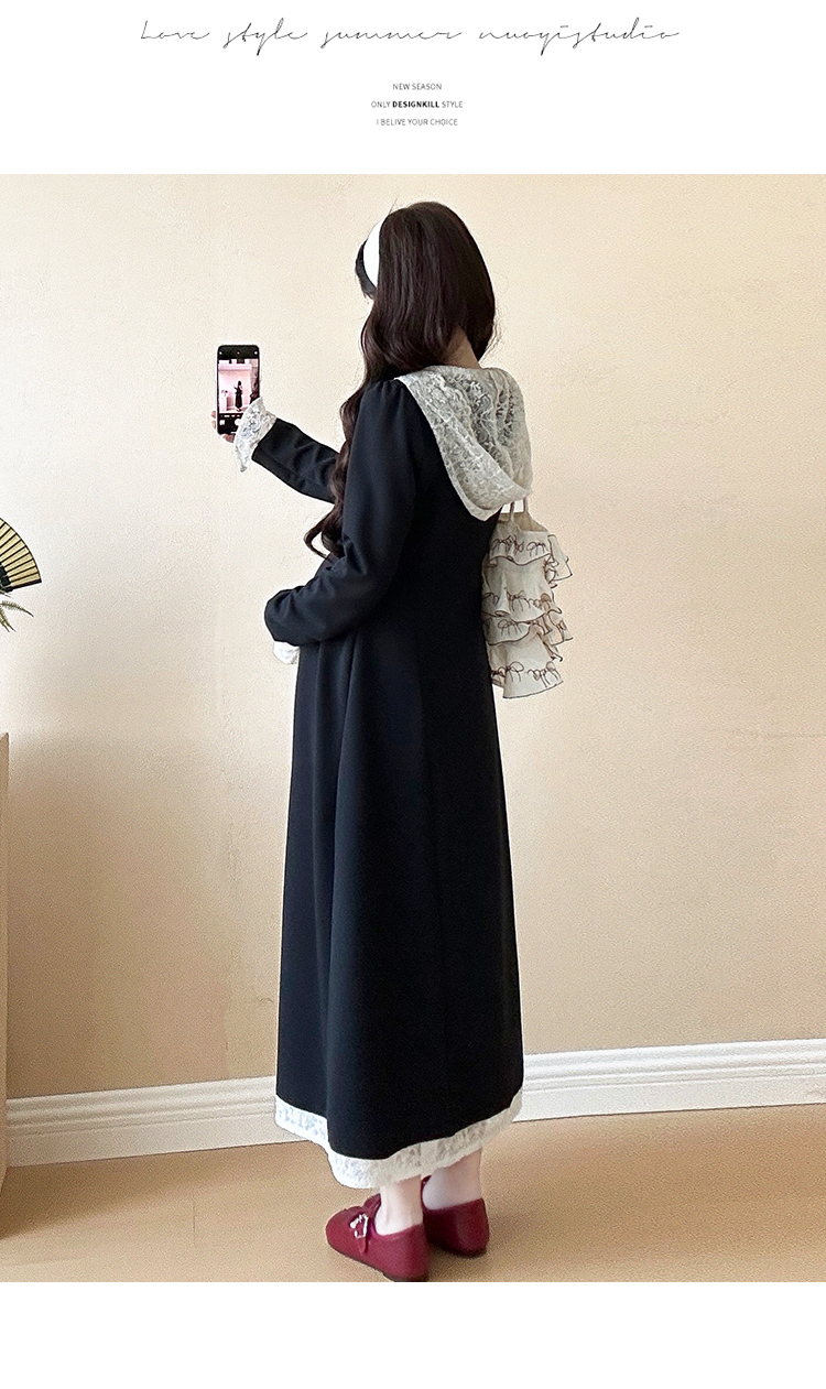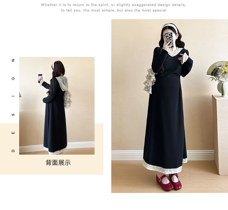 实拍2025秋季蕾丝拼接连帽辣妈修身长袖连衣裙