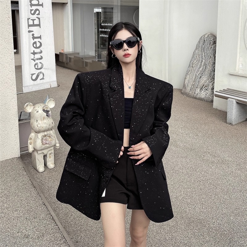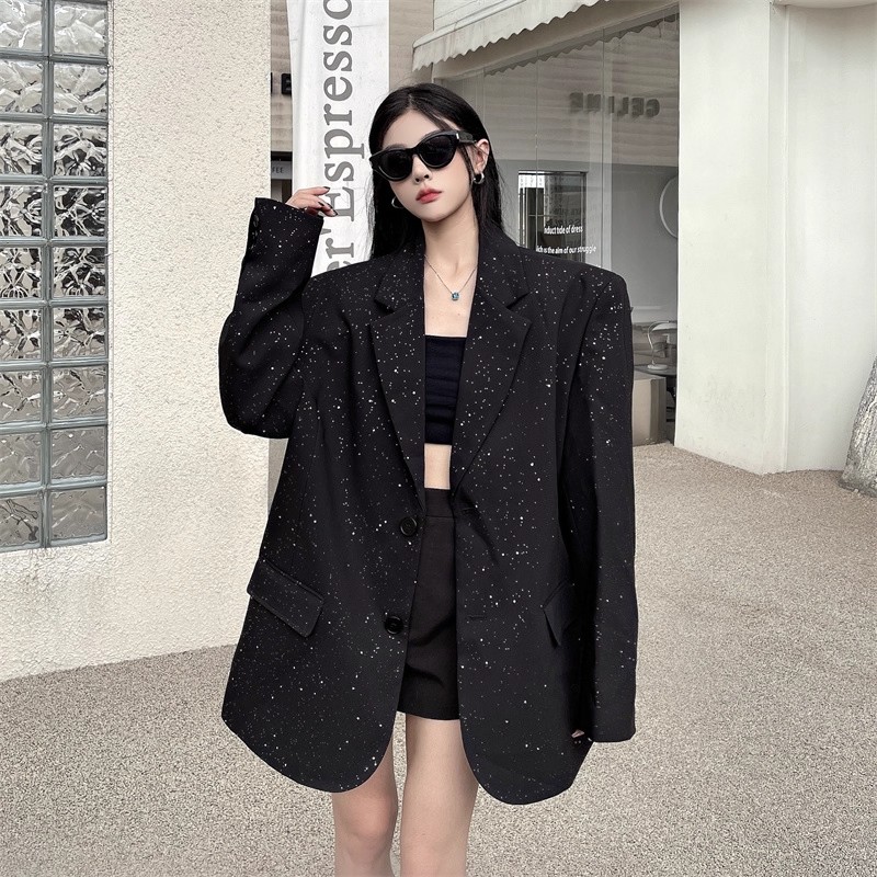 西装 满天星高质量亮片时尚轻奢廓形垫肩西装女秋宽松显瘦外套