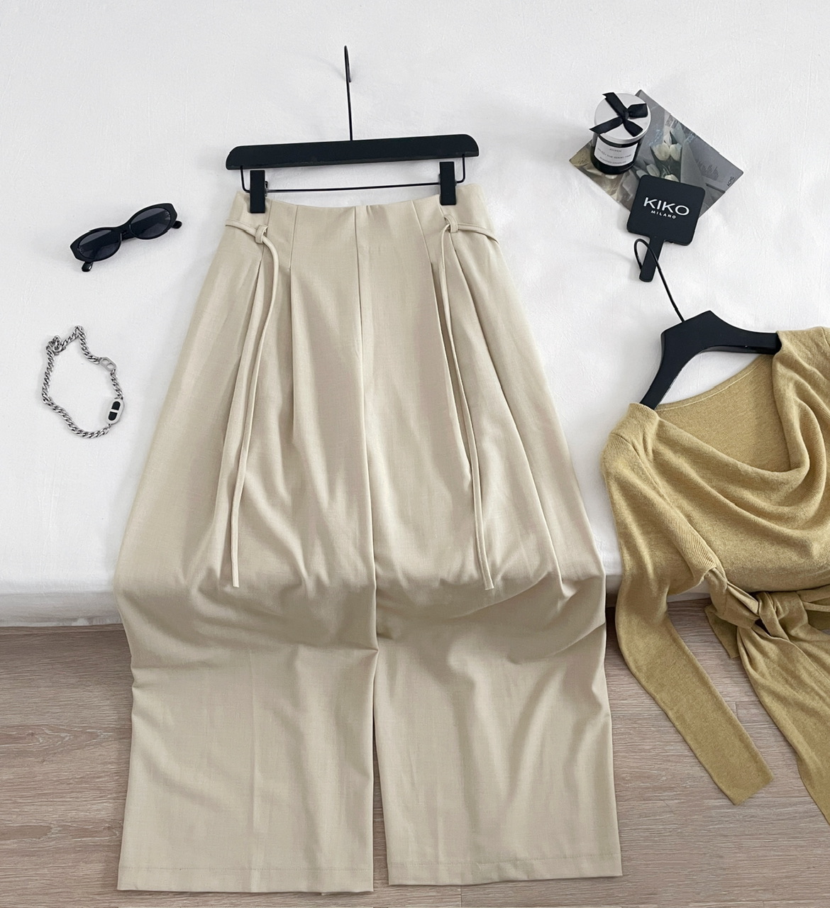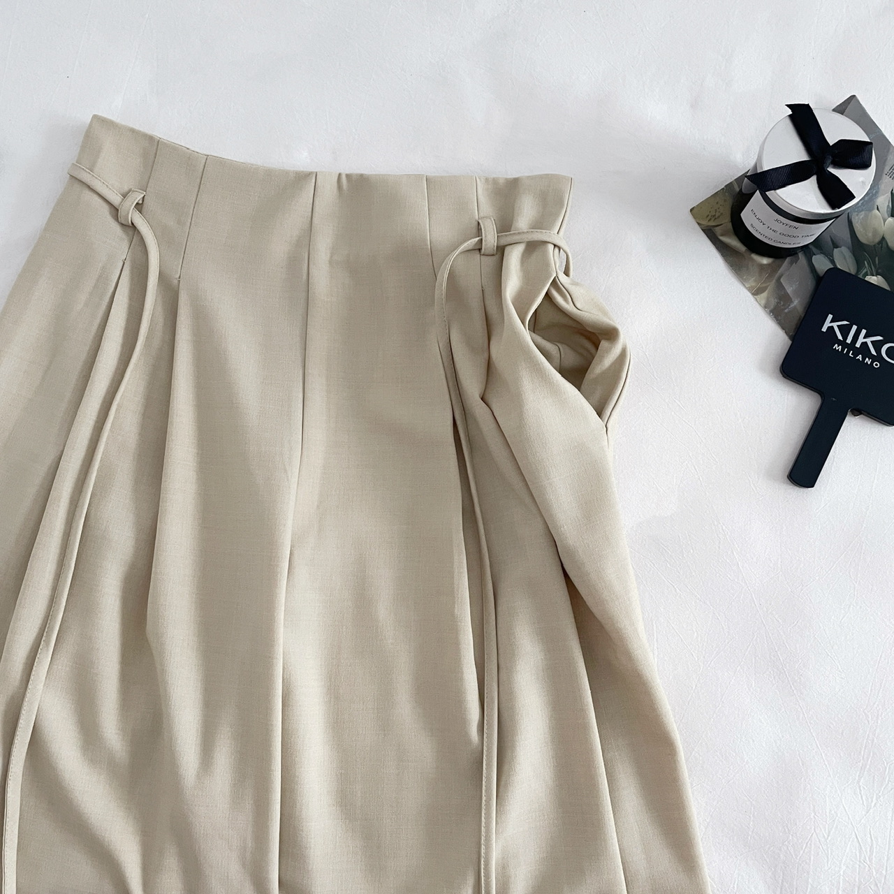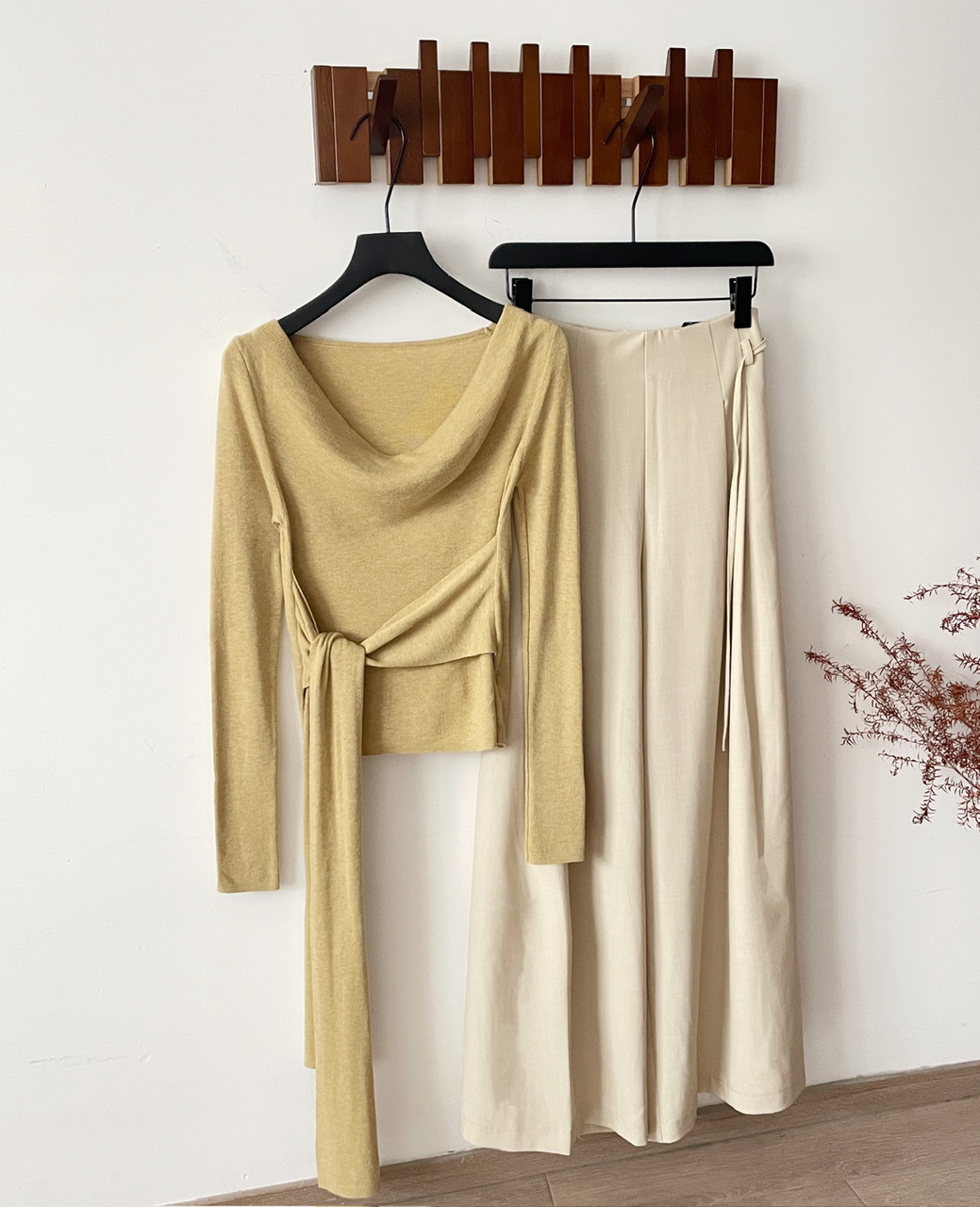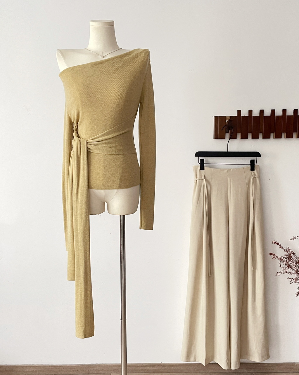 SHIYUEQI春季法式气质不规则斜肩荡领长袖针织绑带收腰上衣女