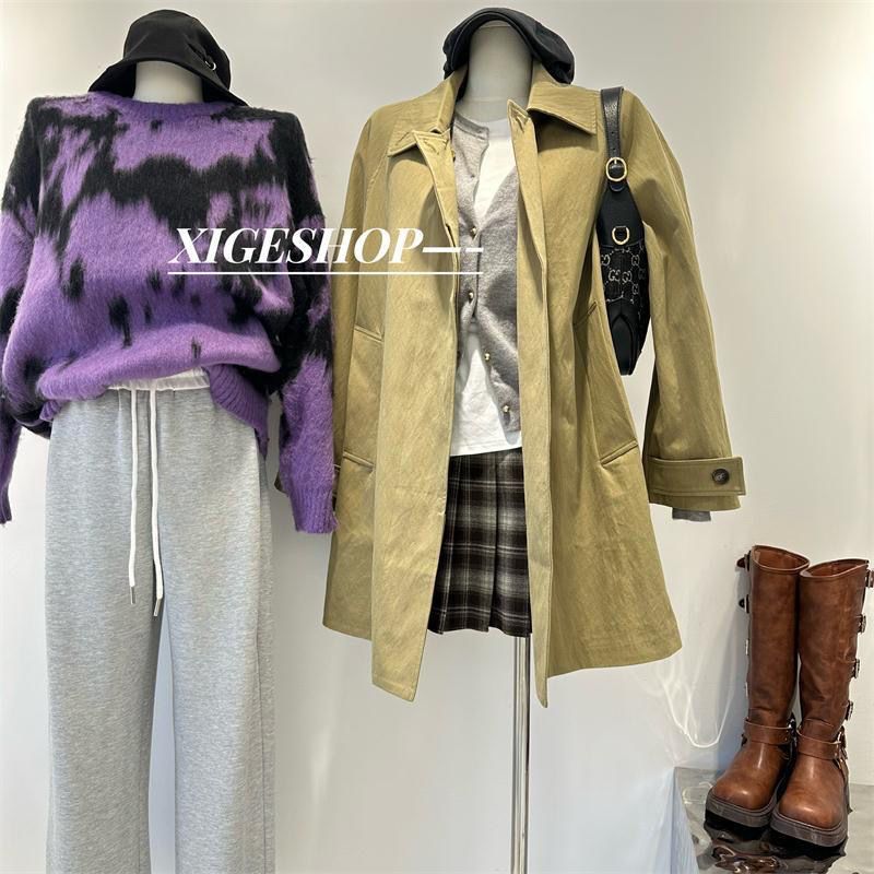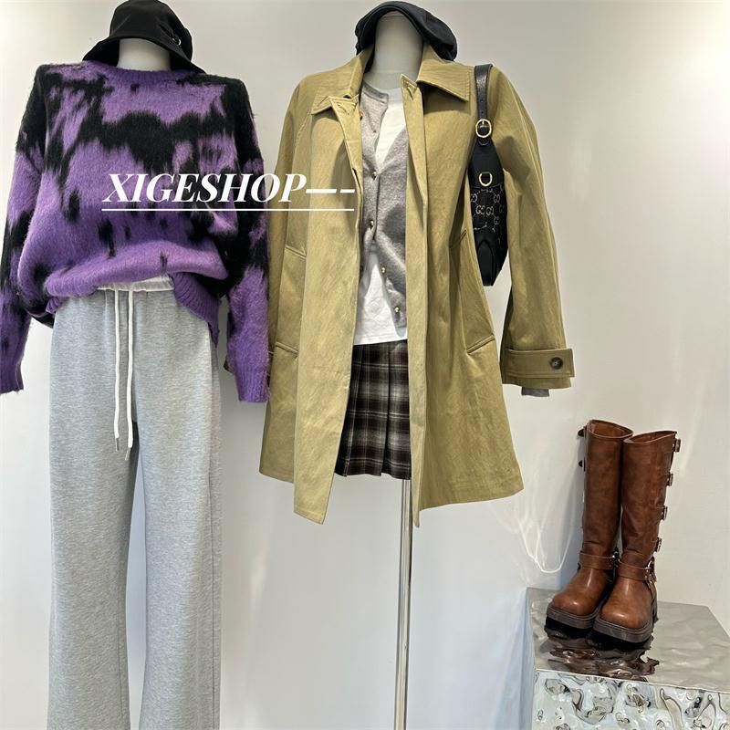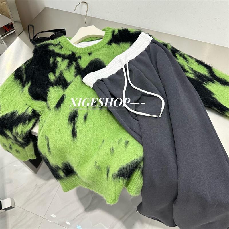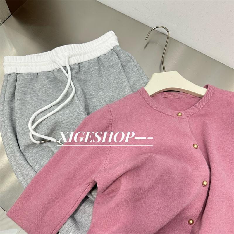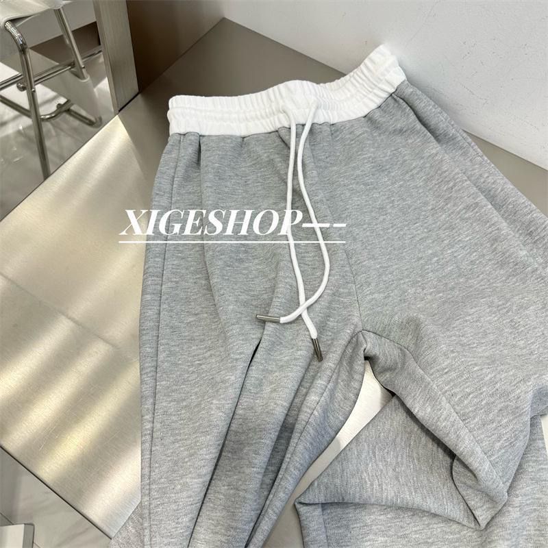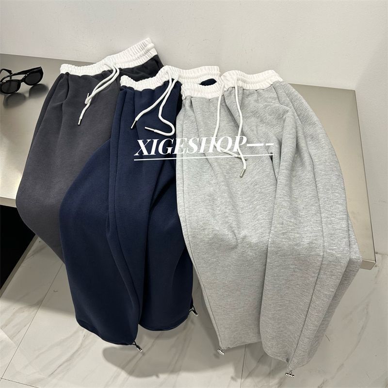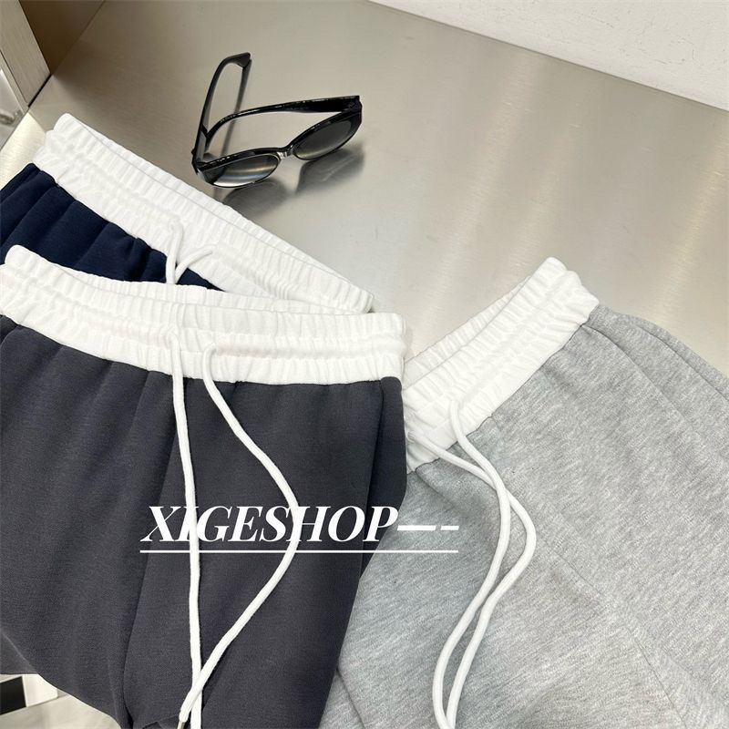 撞色拼接腰头阔腿运动裤女秋季宽松百搭直筒休闲裤束脚卫裤长裤子